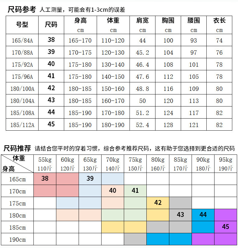 China (cm) 160-165/84-86 165-170 / 88-90 167-172 / 92-96 168-173 / 98-102 170-176 / 106-110