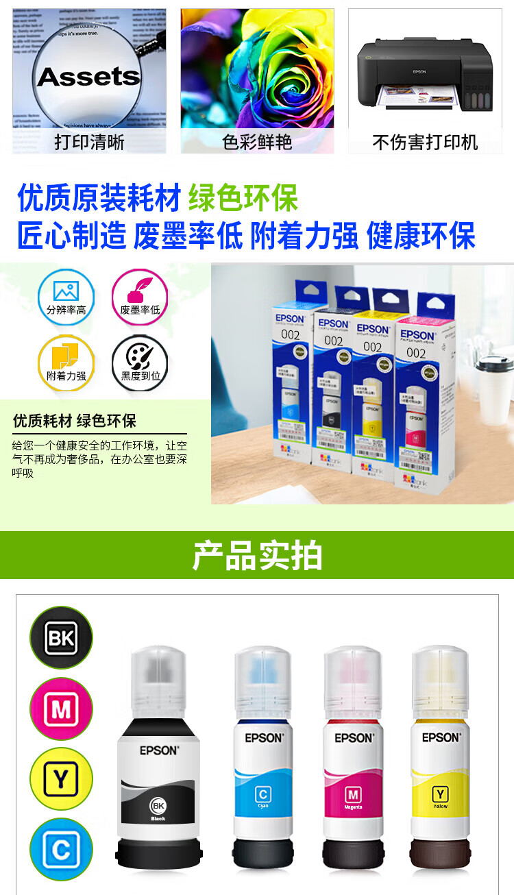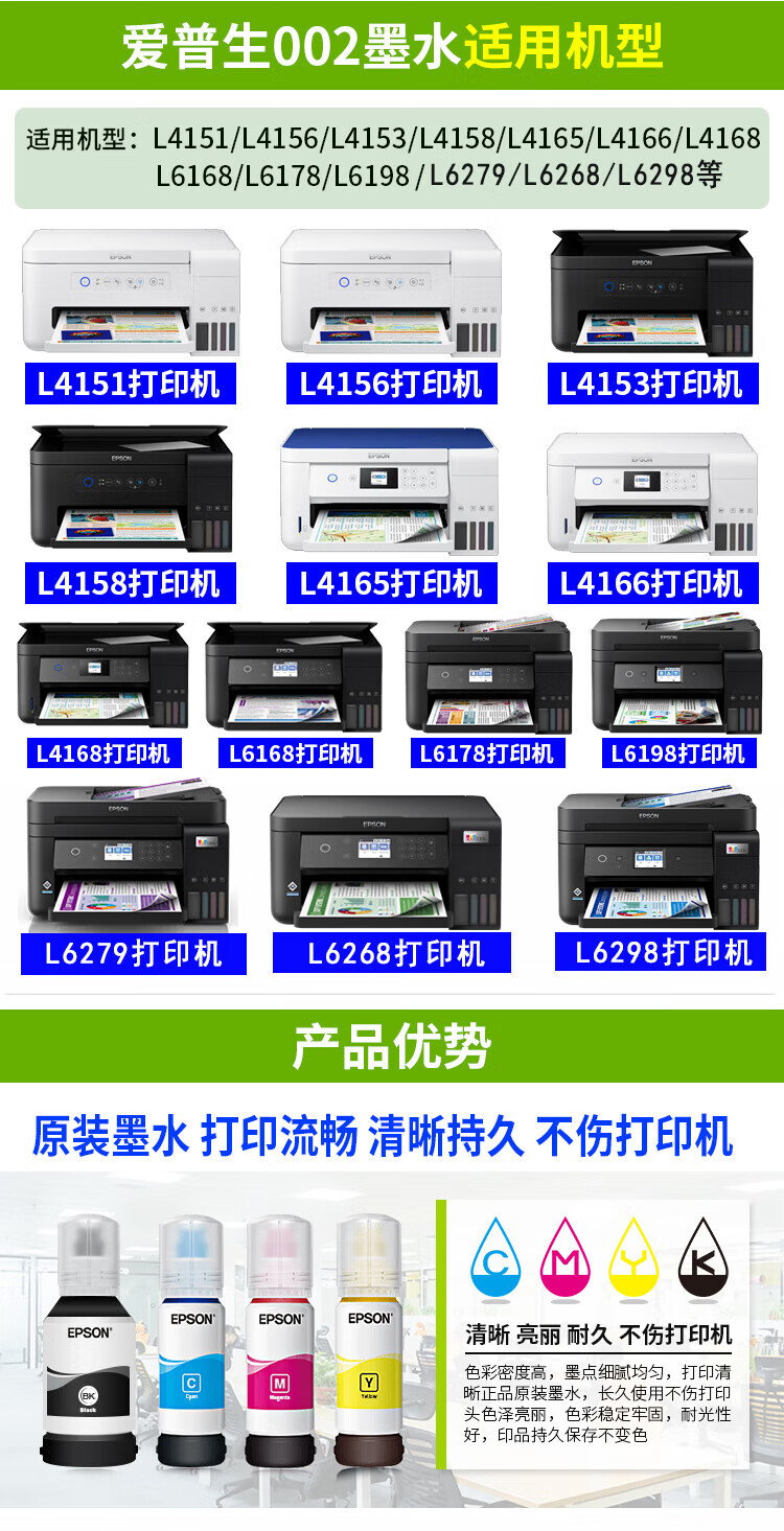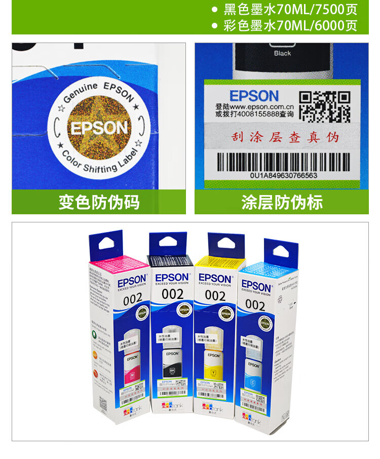 爱普生(EPSON)L6178原装墨水,爱普生002墨水,爱普生L6279 L6168 L6268 L6198墨水 爱普生原装墨水 002系列(四色一套)