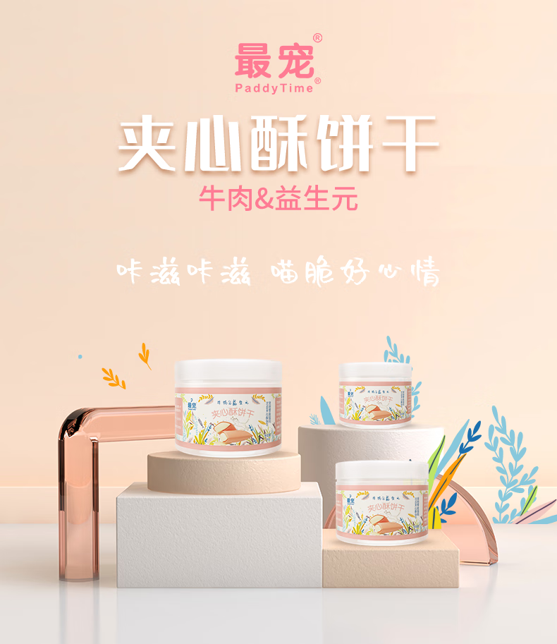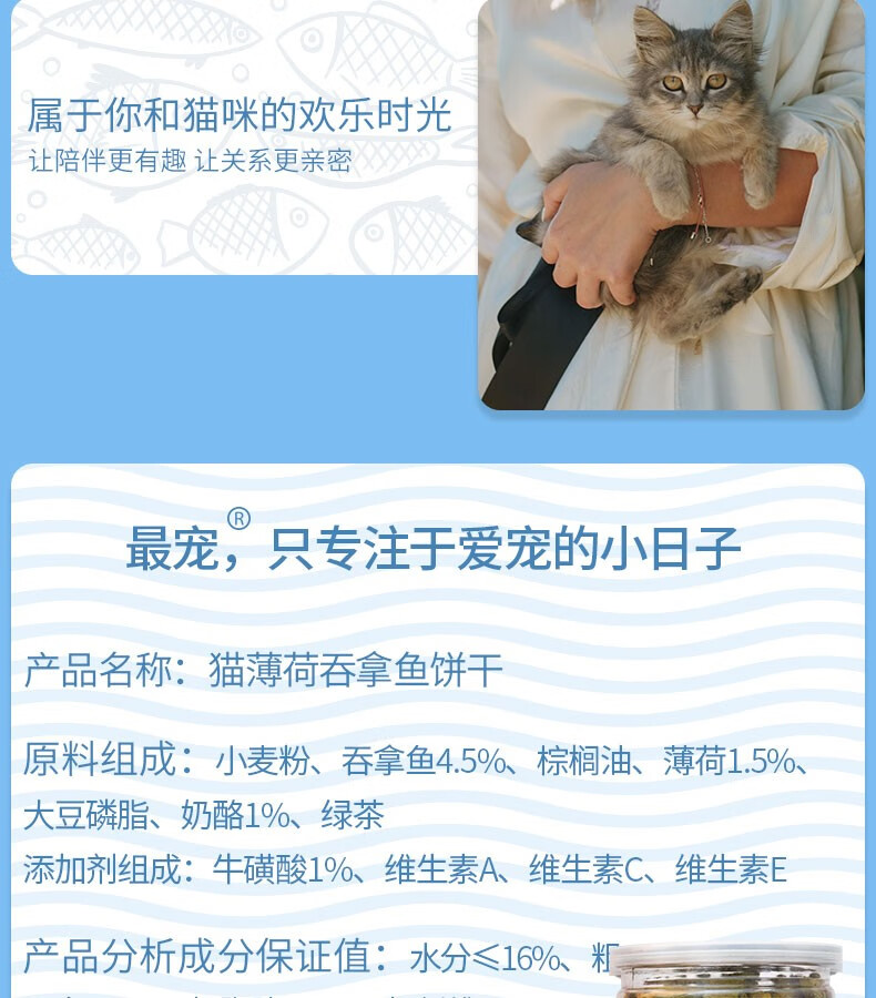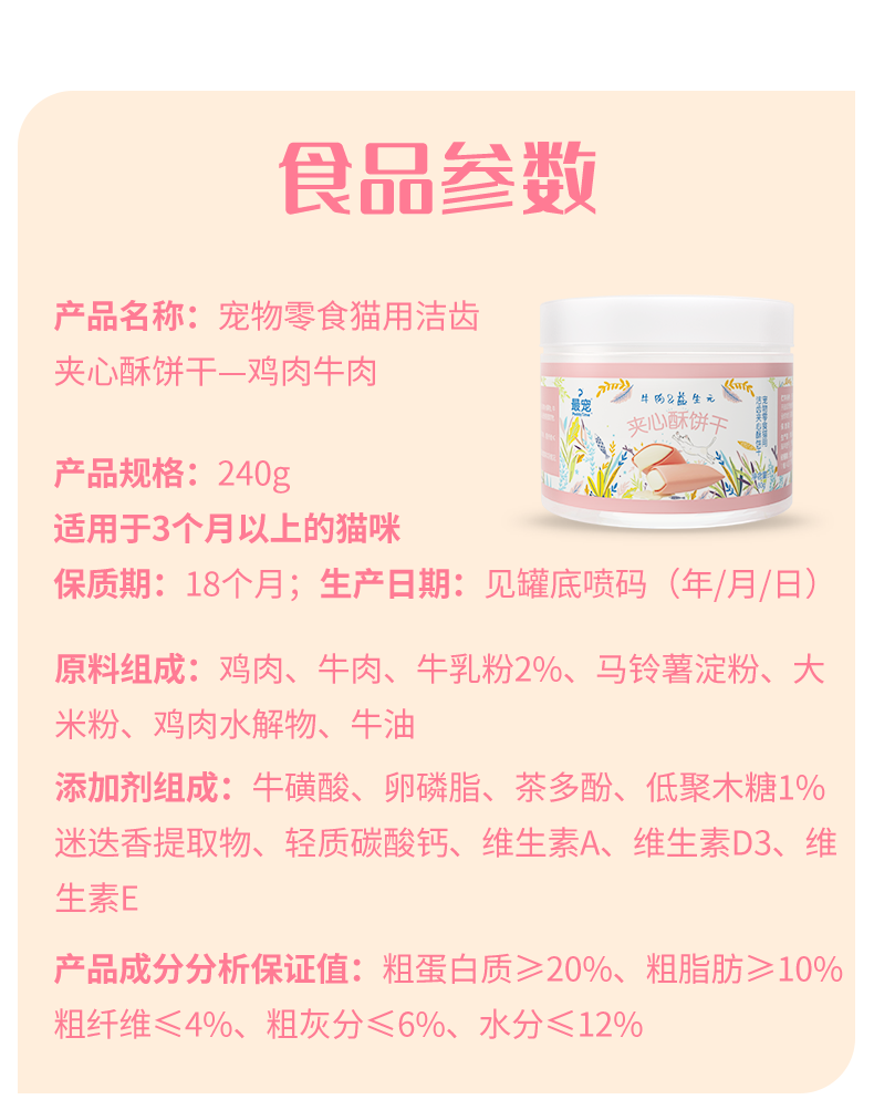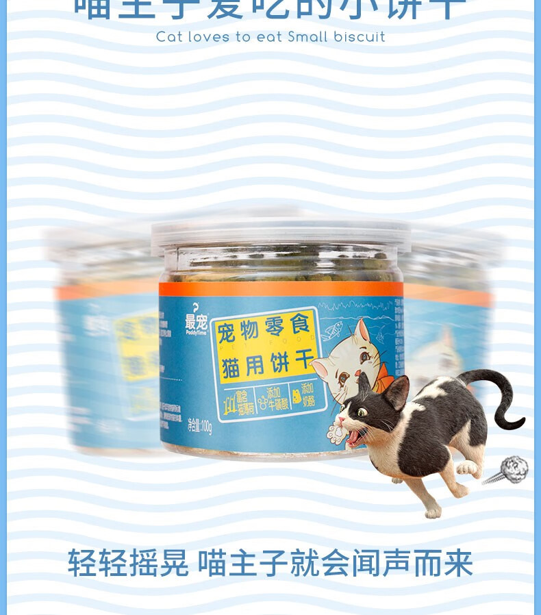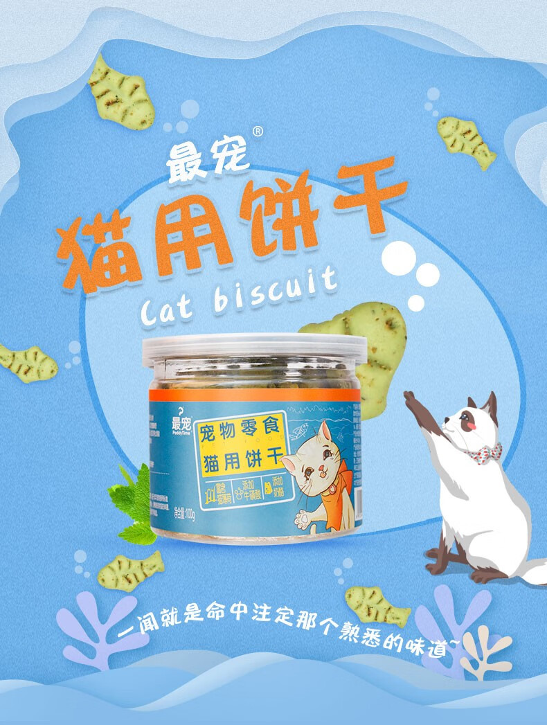 The most beloved (Paddy Time) cat snacks, cat grass and mint flavored tuna biscuits, nutritional snacks for pet cats to train and molar, chicken and goat milk sandwich crispy biscuits 80g*3 cans