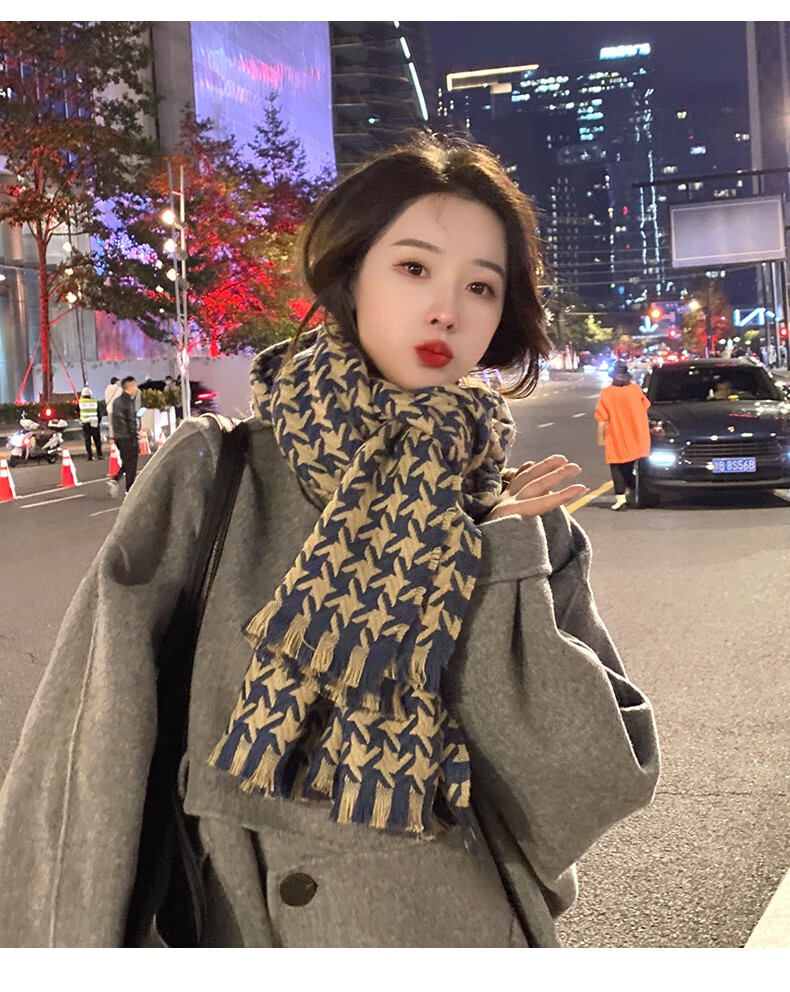 CHANEELR & KARITH scarf, women's shawl, dual-purpose fashionable thickened warm scarf for couples, a light luxury birthday and New Year gift for girls and wives, light luxury brand, fashionable and versatile ck style, navy blue