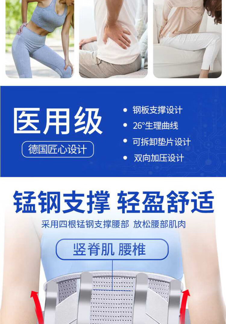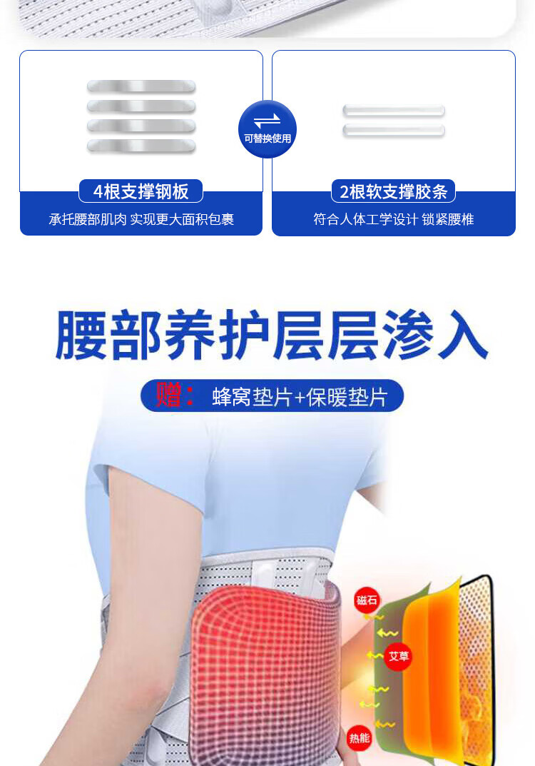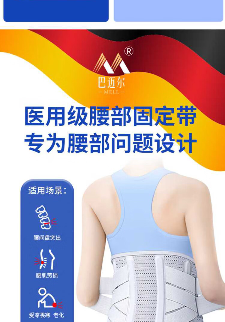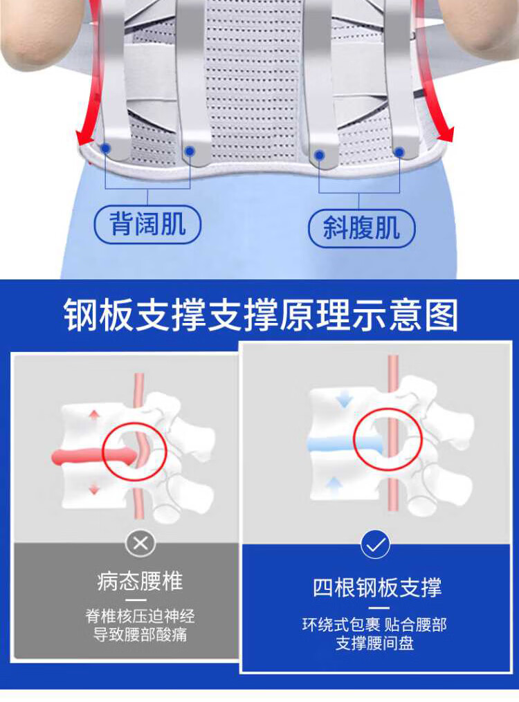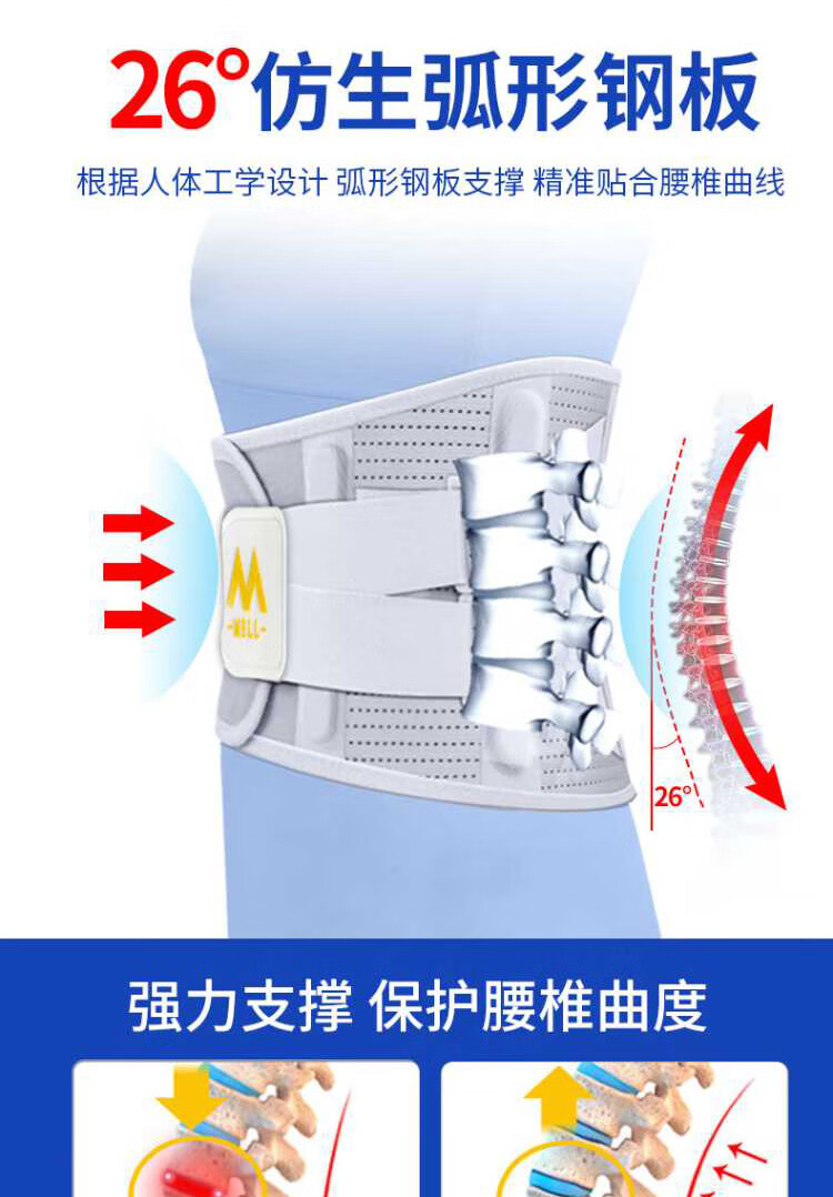 Bamail waist support belt for lumbar disc herniation, lumbar vertebra and lumbar muscle strain, lumbar support for long periods of sitting, breathable waist support belt for men and women, L size 110-170 Jin equals 0.5 kg, 4 steel plate support + waist warmer gasket + heat storage gasket