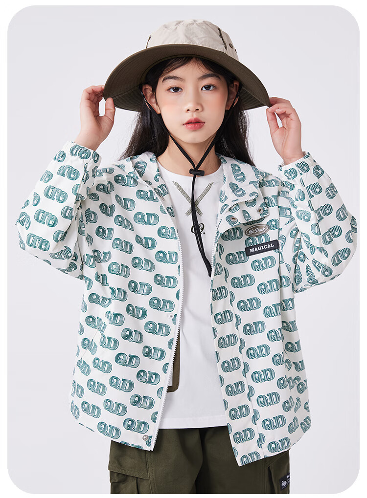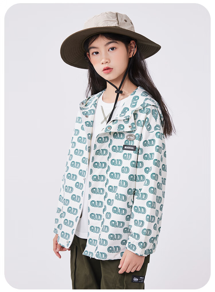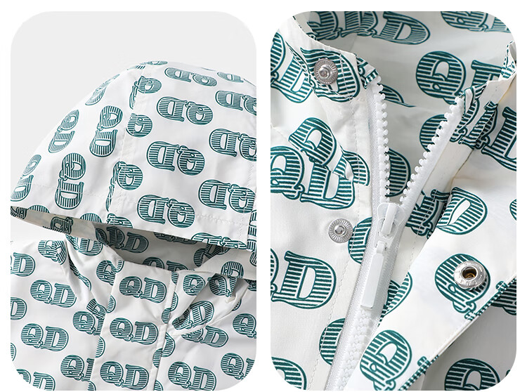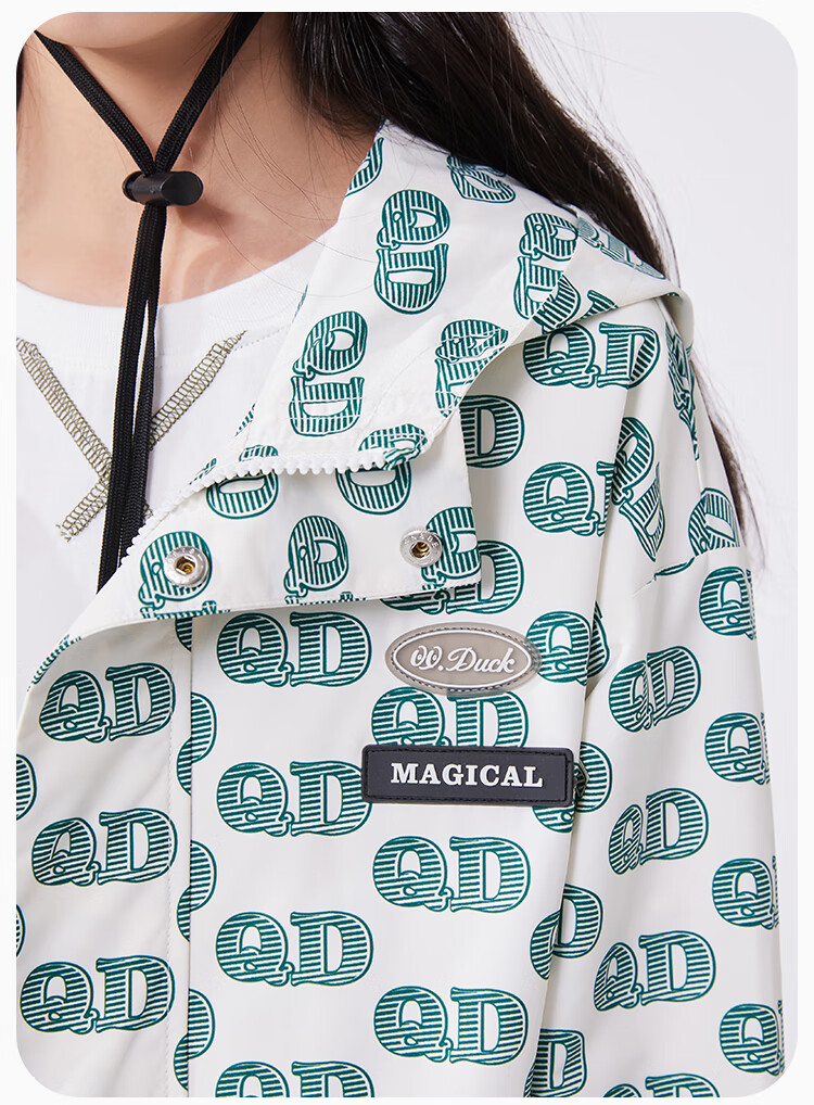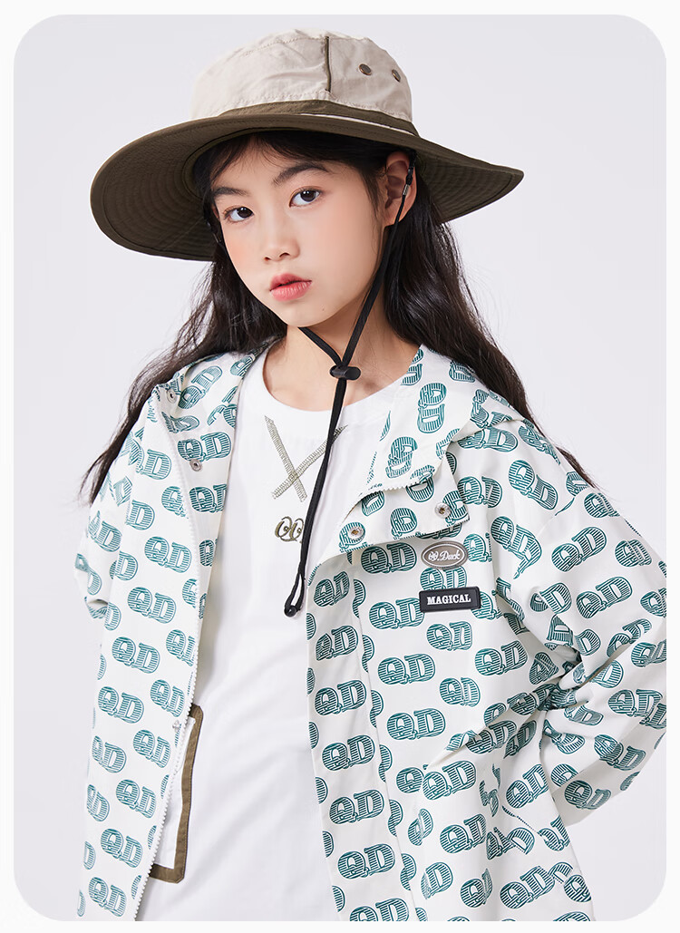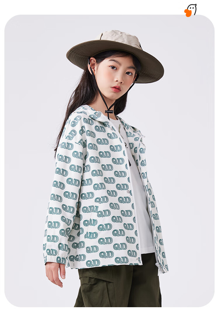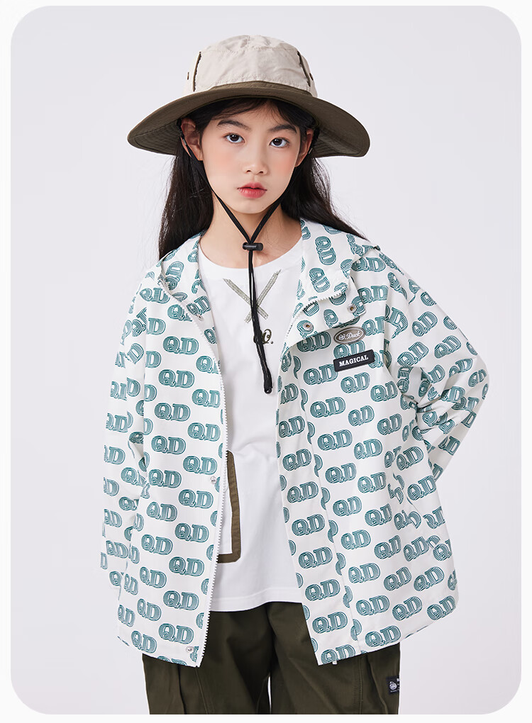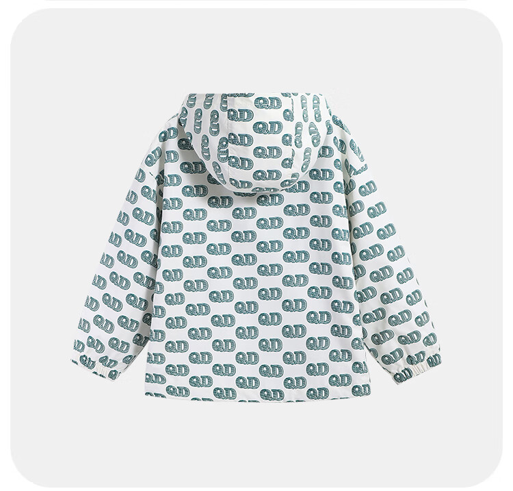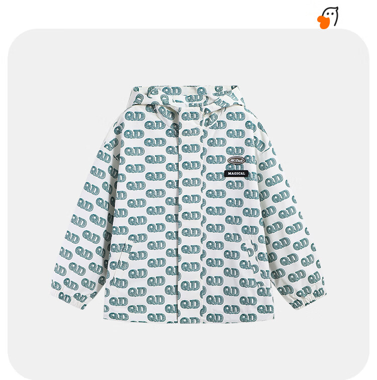 Coco Duck (QQ DUCK) children's jacket boys hooded tops teenagers fashion printed windbreaker girls cardigan outfit (LOGO jacket) beige 130CM