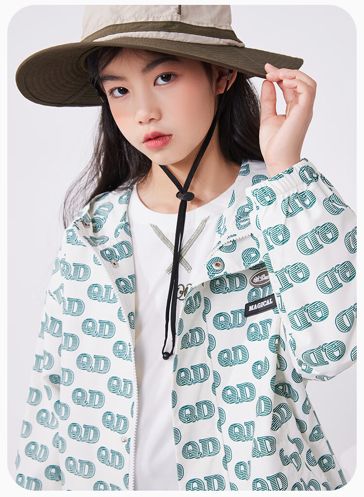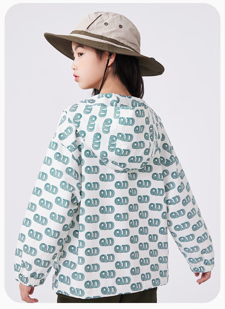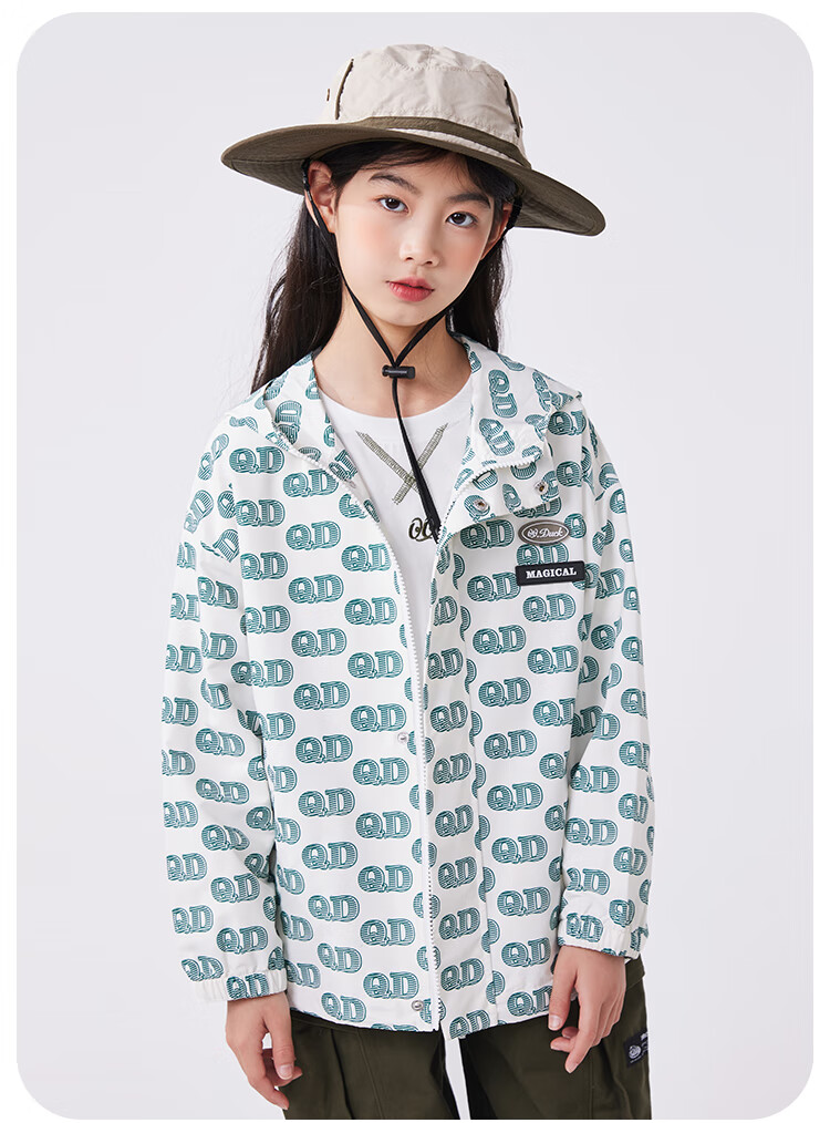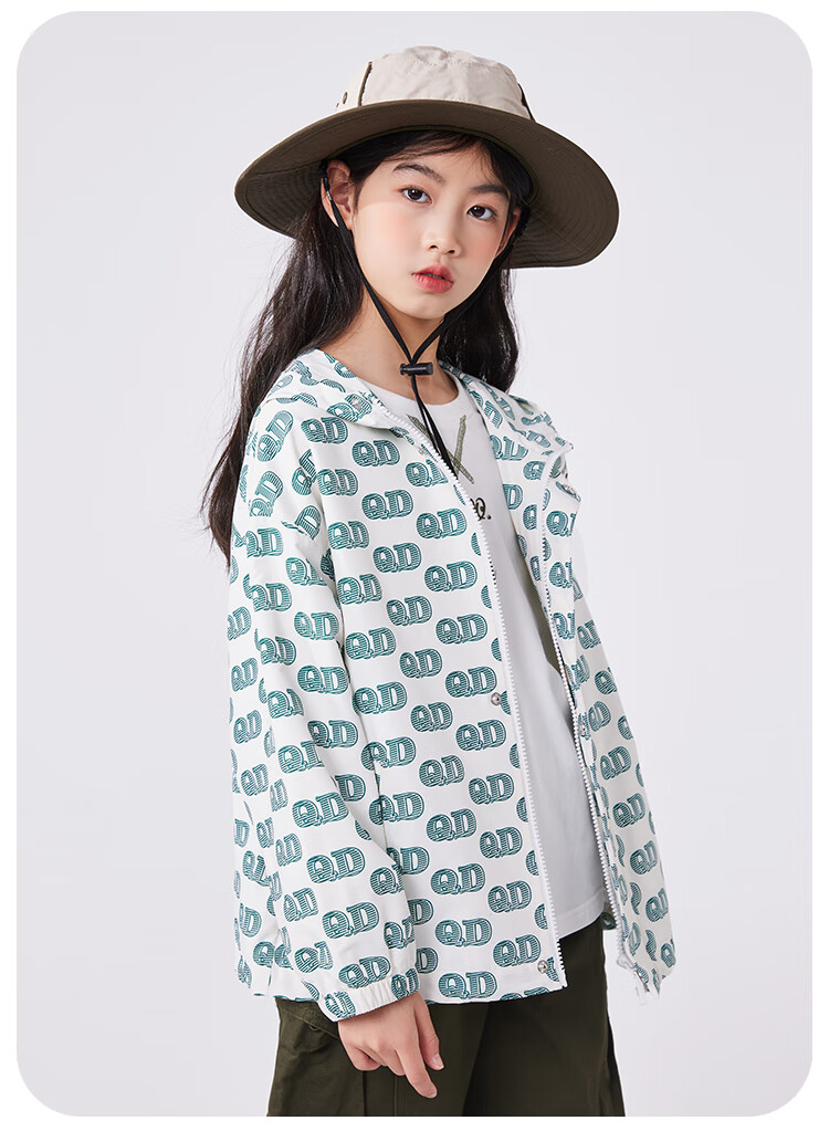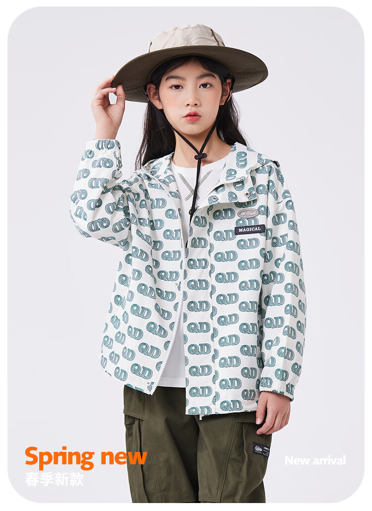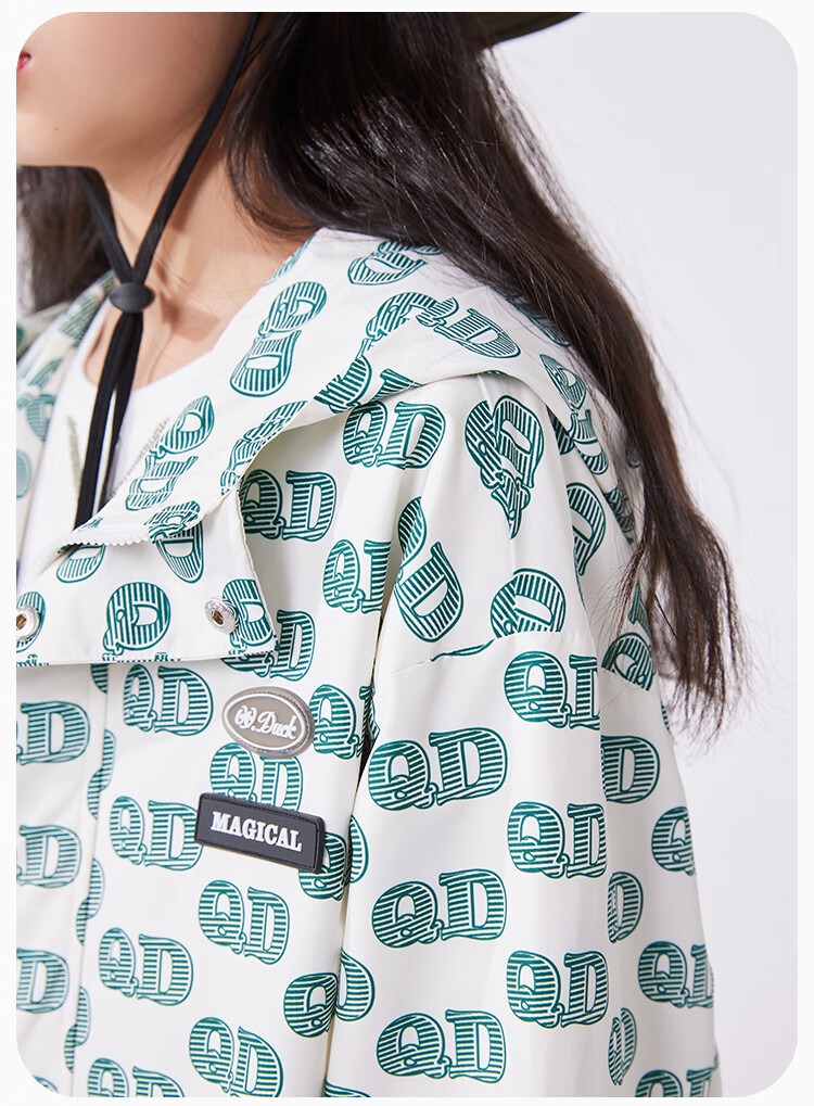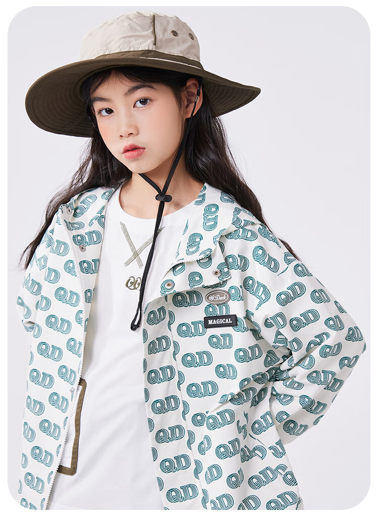 Coco Duck (QQ DUCK) children's jacket boys hooded tops teenagers fashion printed windbreaker girls cardigan outfit (LOGO jacket) beige 130CM