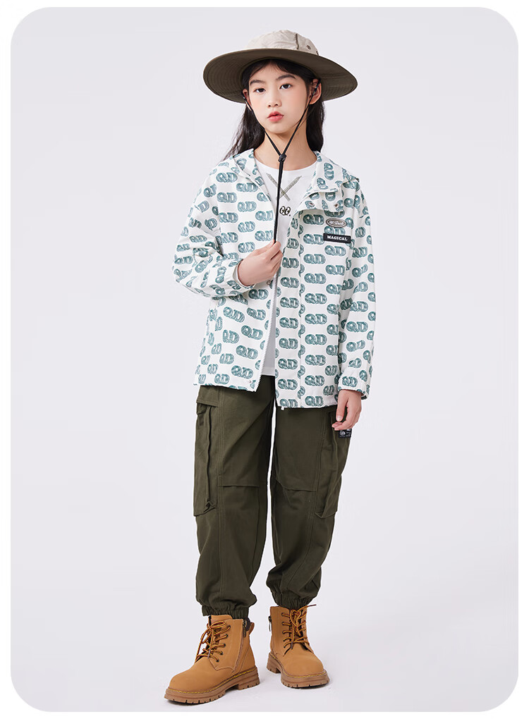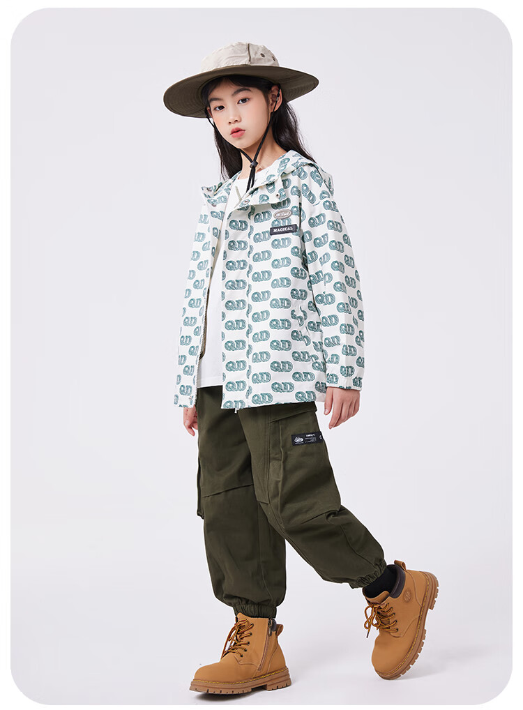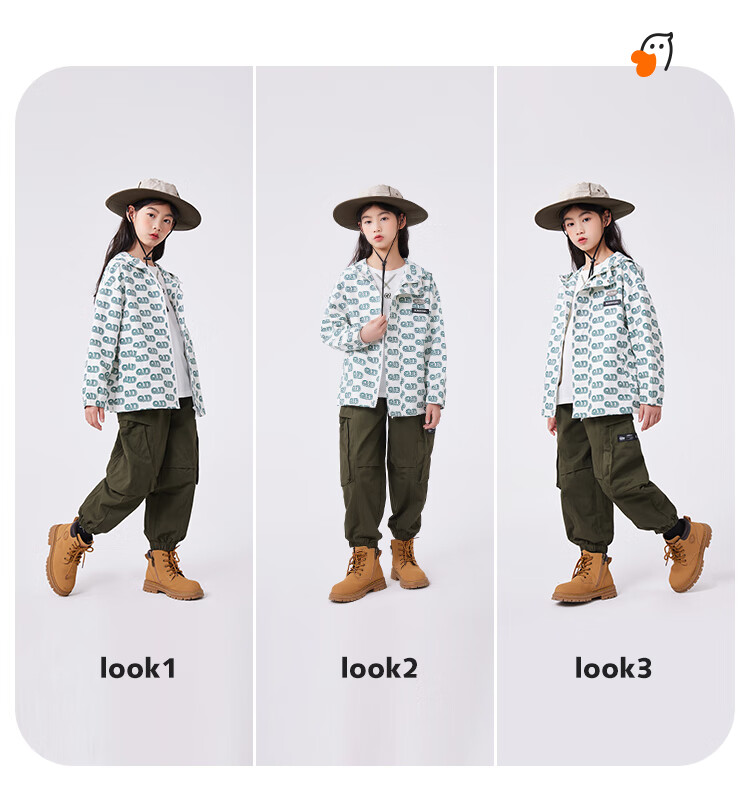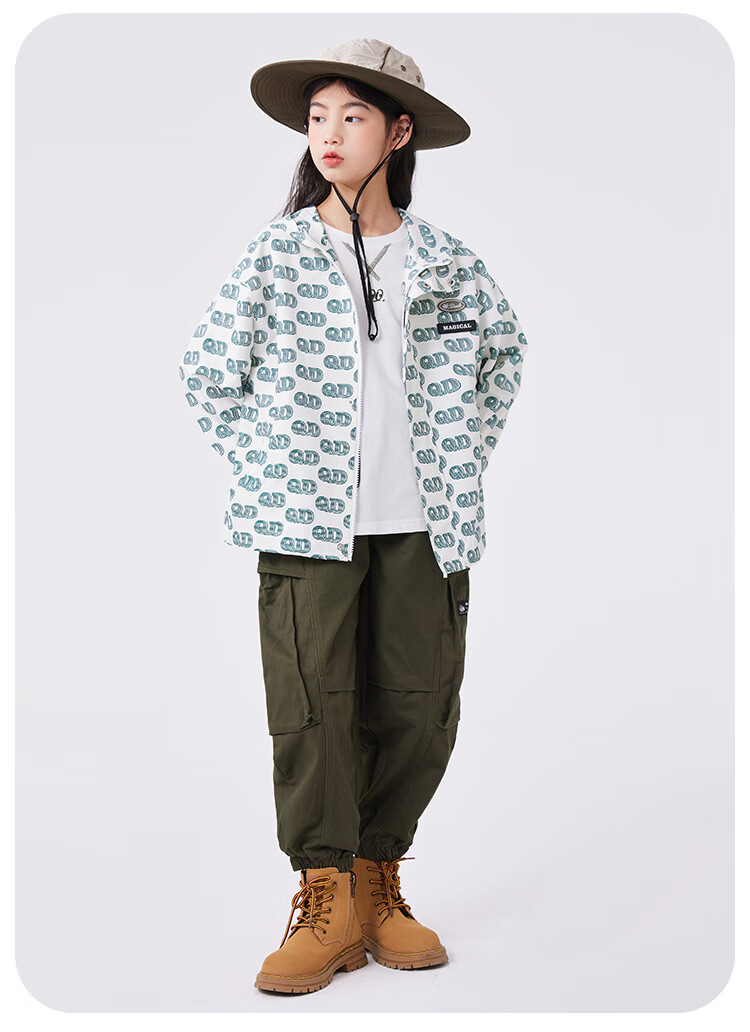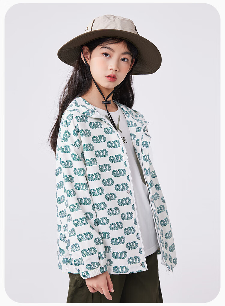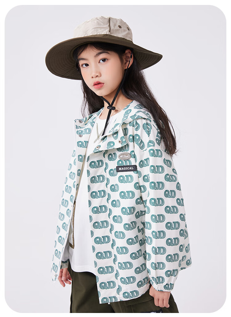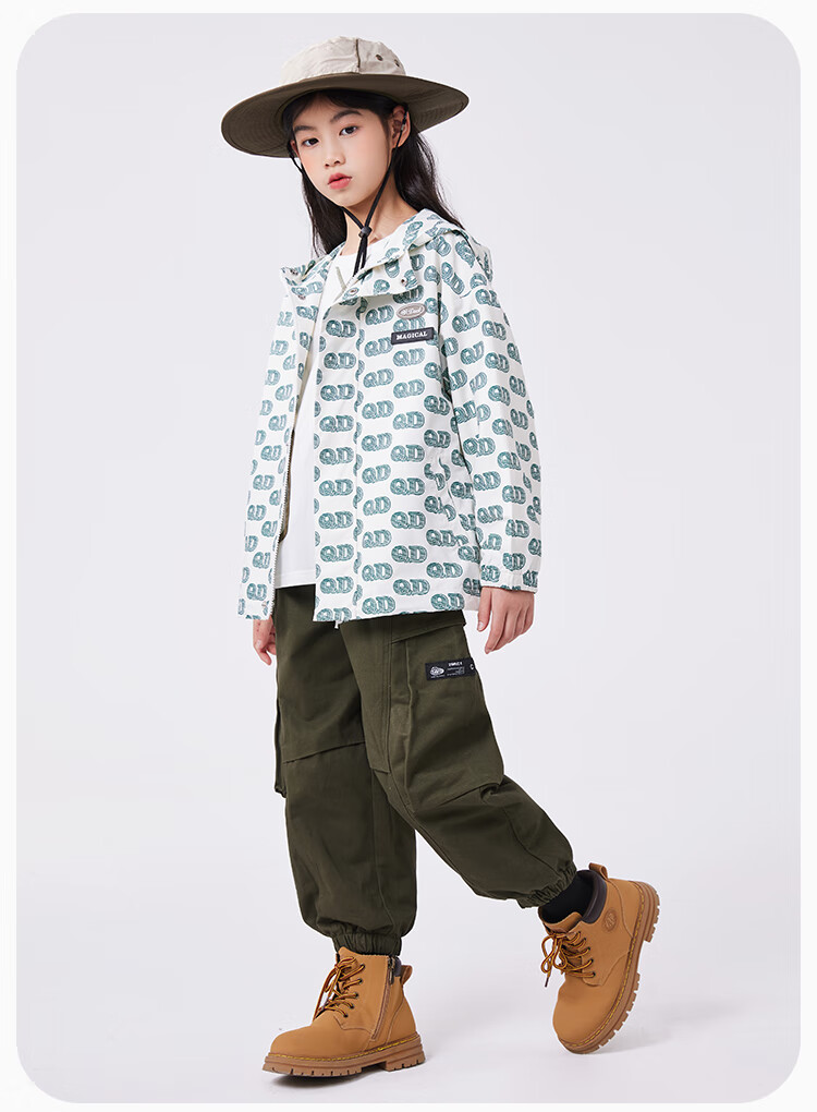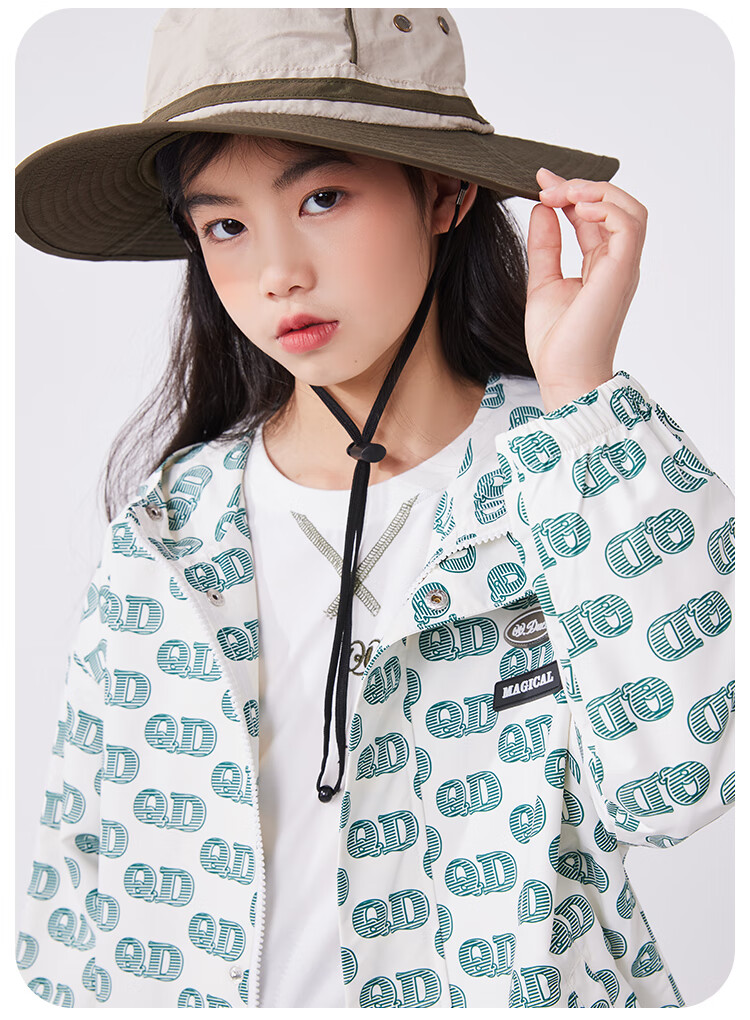 Coco Duck (QQ DUCK) children's jacket boys hooded tops teenagers fashion printed windbreaker girls cardigan outfit (LOGO jacket) beige 130CM