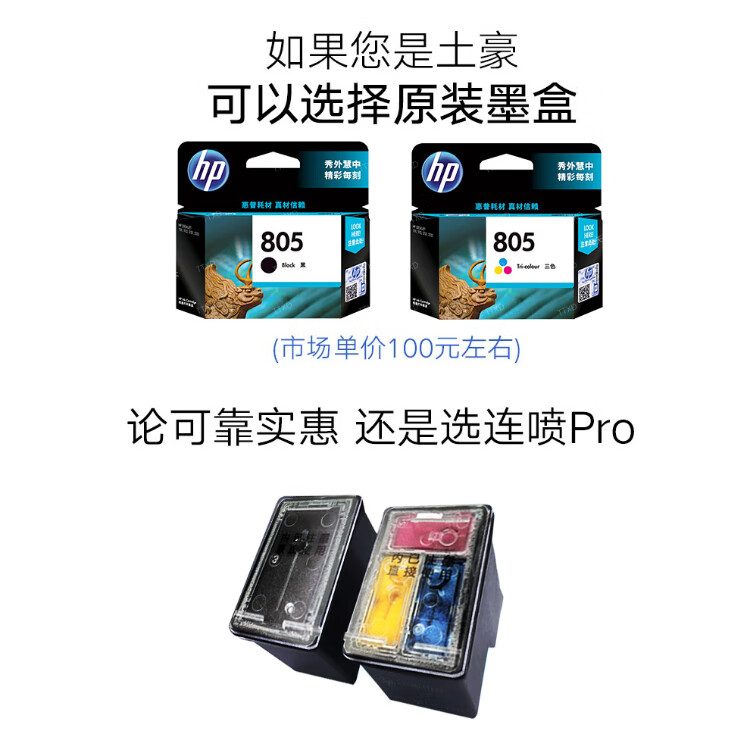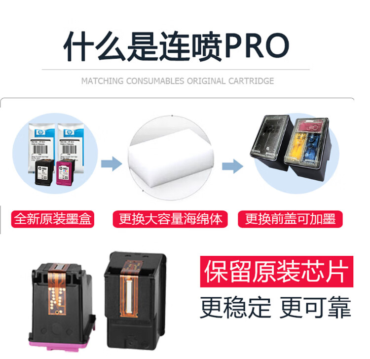 HP printer 803 ink cartridge is suitable for HP1112/2132/2628/2621 black and color recyclable ink refilling and continuous spraying set, ink cartridge maintenance tool (with a set of ink suction and ink extraction tools)