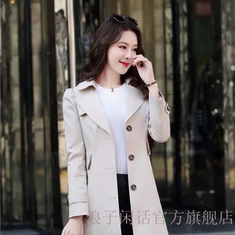 Prodigal Gossip Light Luxury Windjacke Damen Mittellang Frühling Herbst 2023 Herbst Neuer Stil Kleines High-End-Temperament Schlank 689 Schwarz 2XL Empfohlen 125-135 Jin Jin entspricht 0,5 kg