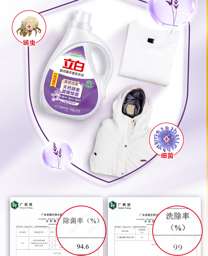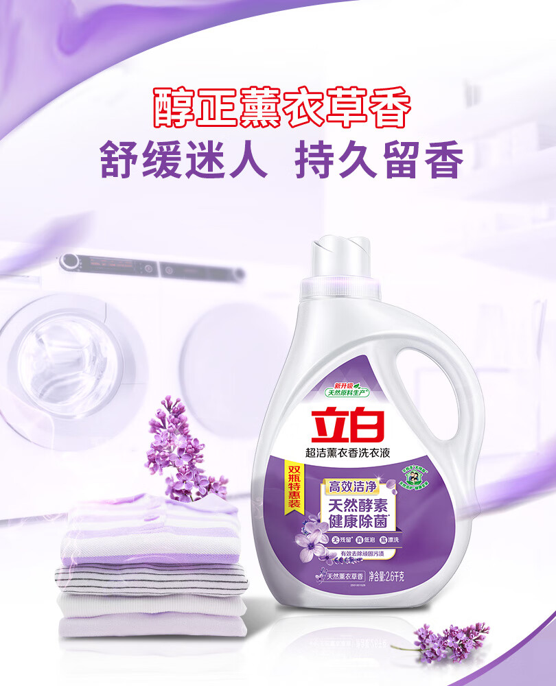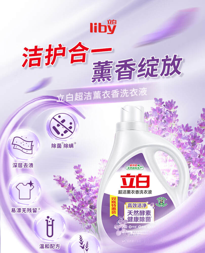Liby Super Clean Lavender Laundry Detergent, Sterilizing, Long-lasting Fragrance, Natural Enzyme Wash and Care All-in-One Promotional Cleaning Combination Pack Lavender Laundry Detergent 950g*2 Bags