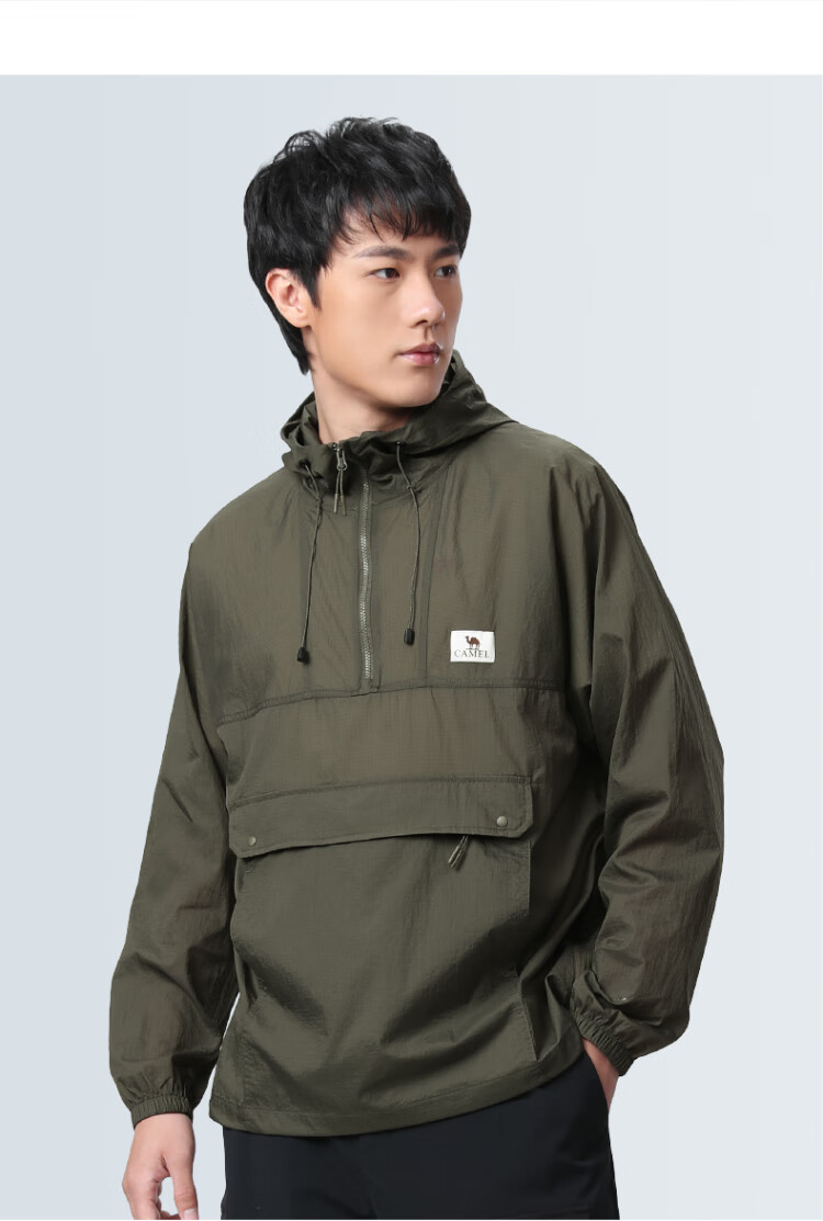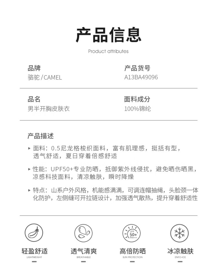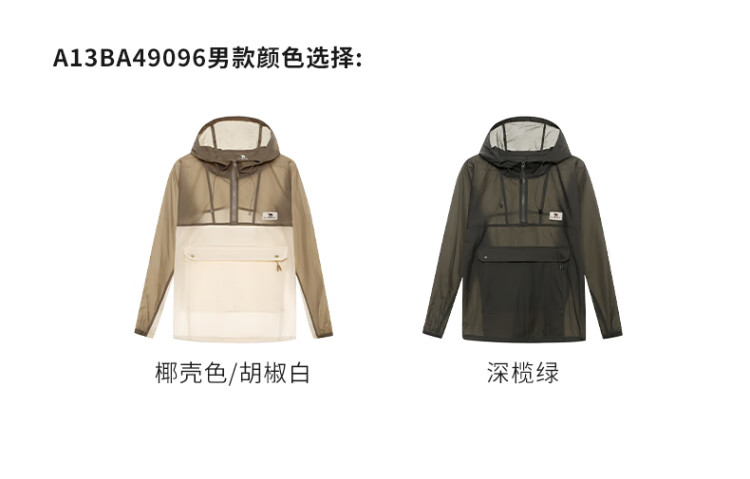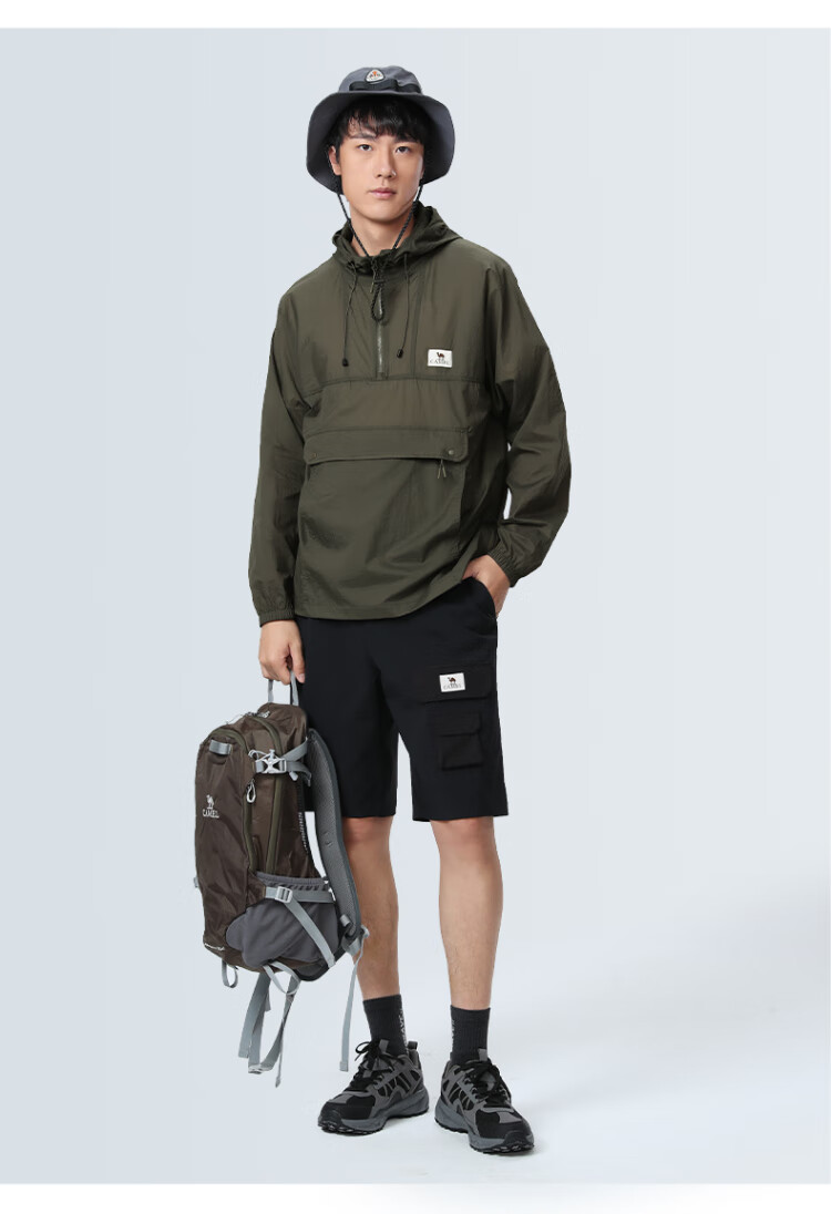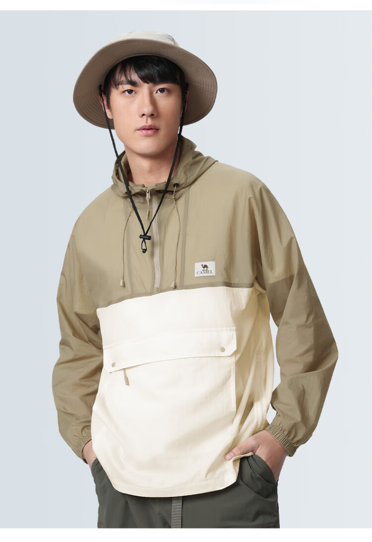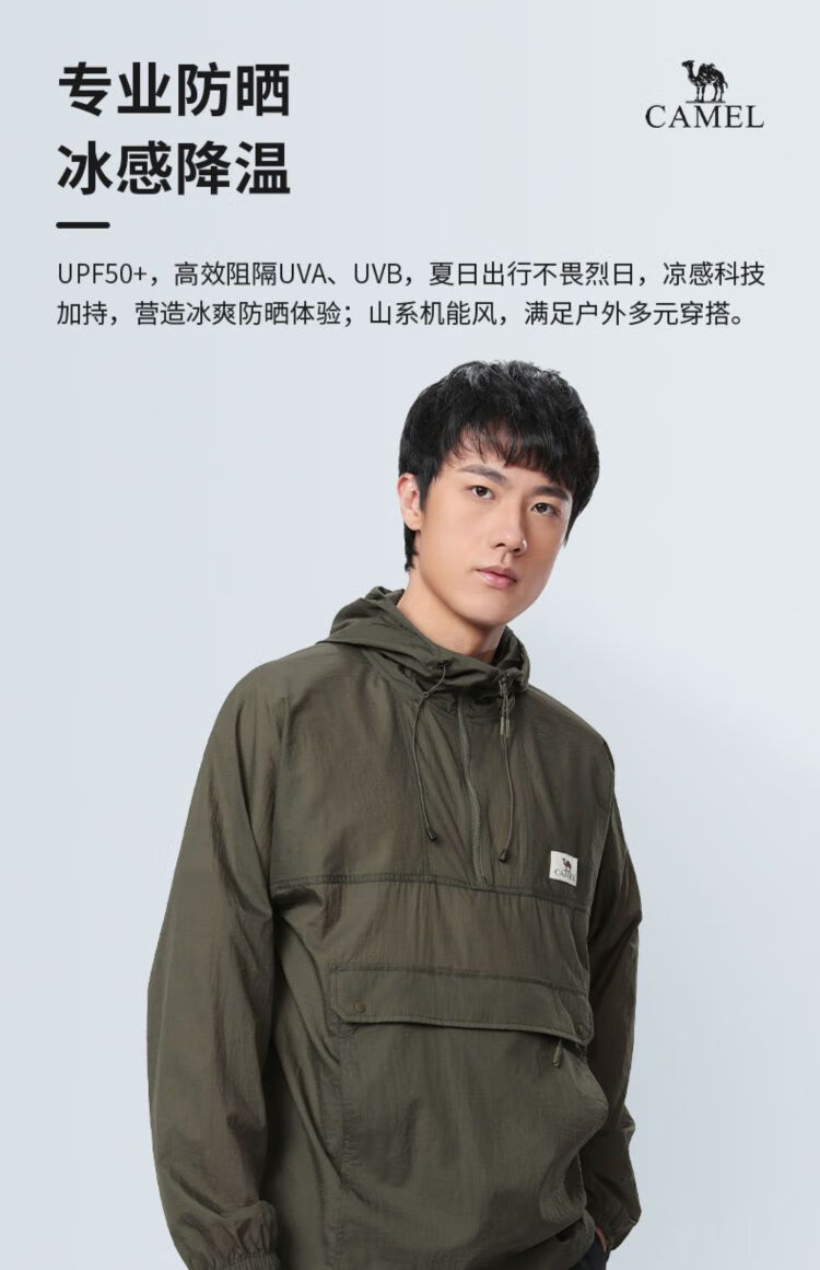 Camel men's sun protection clothing spring and summer new men's upf50+ professional cooling mountain style half-chest sun protection clothing A13BA49096, coconut shell color/pepper white, men's XL