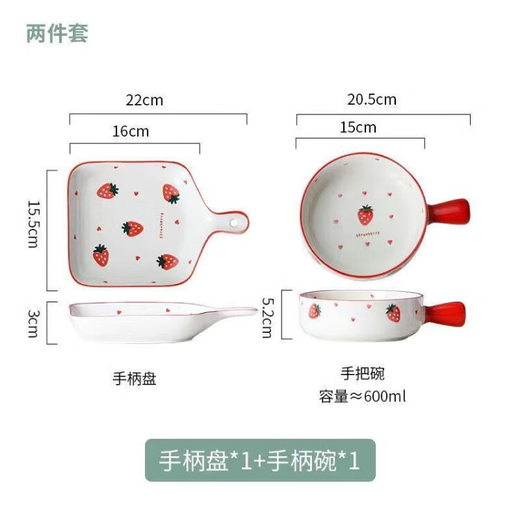 Nordic style tableware ceramic plate oven microwave red handle bowl hand-painted strawberry handle bowl salad bowl set red strawberry-handle bowl single bowl