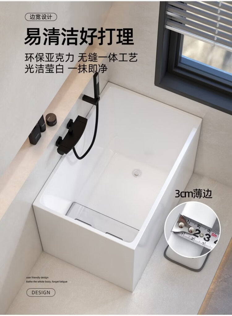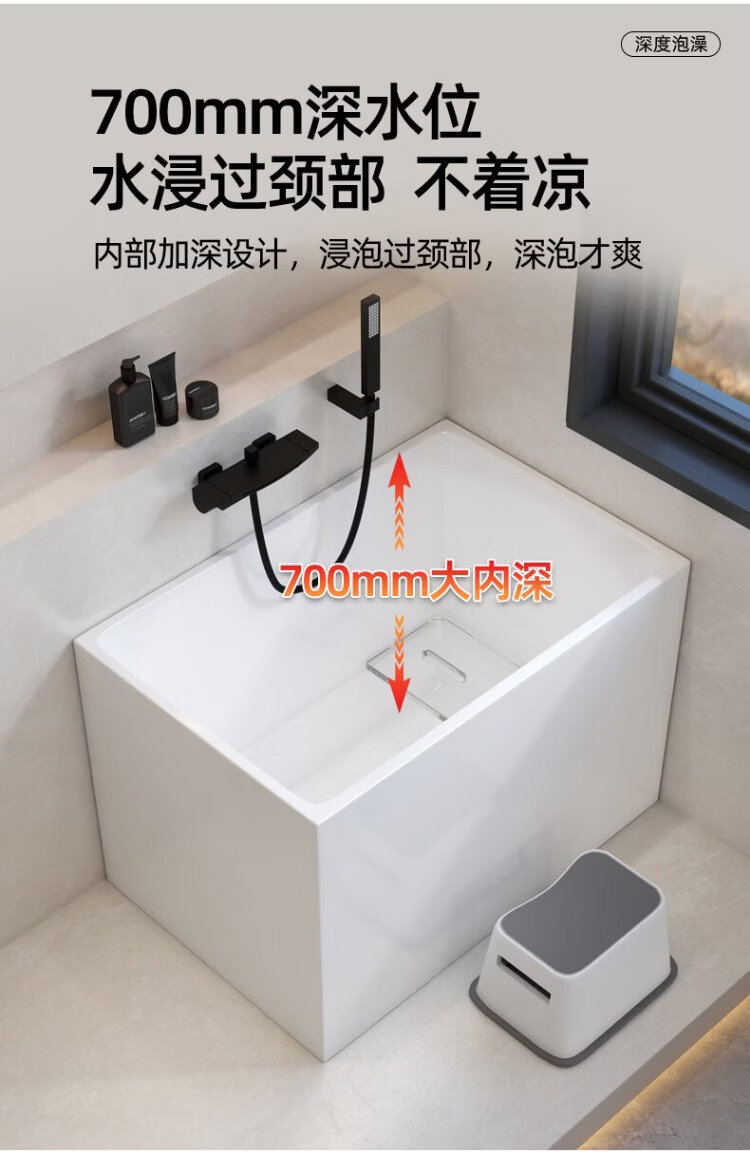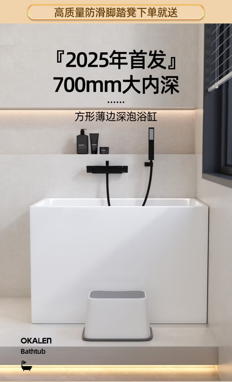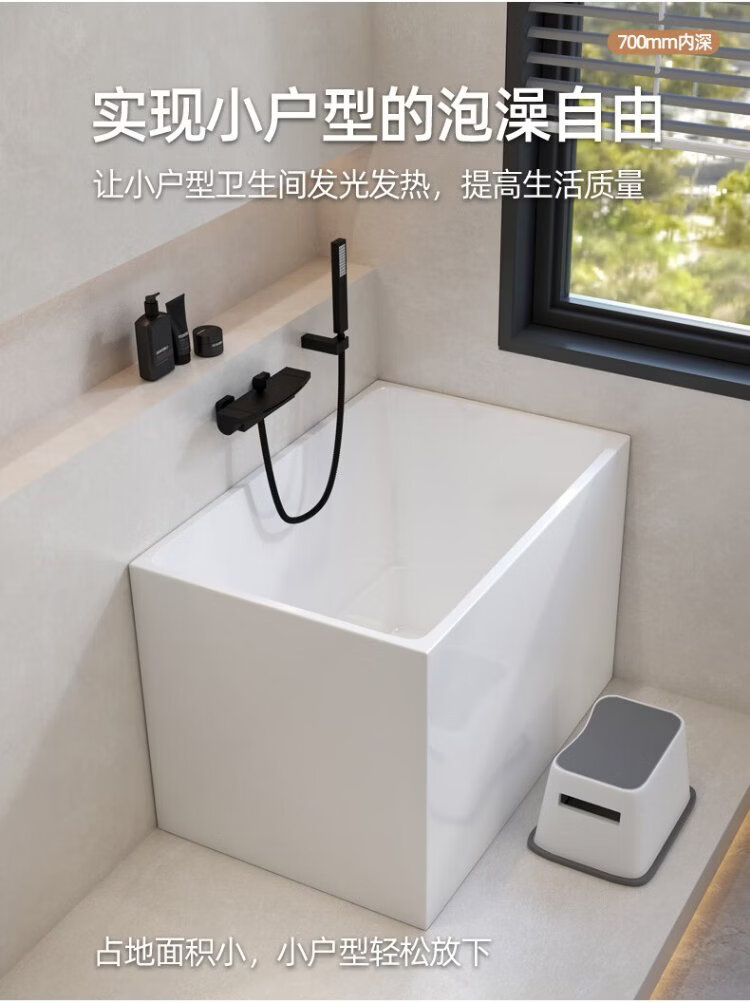 OKALEN bathtub small apartment household imported acrylic over-the-shoulder deep soak mini independent adult square one-piece thermal insulation 1390*700*730 acrylic plate depth 650 0m