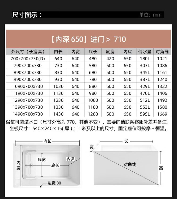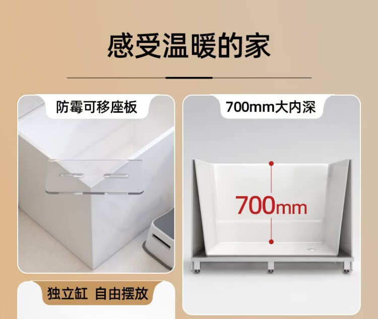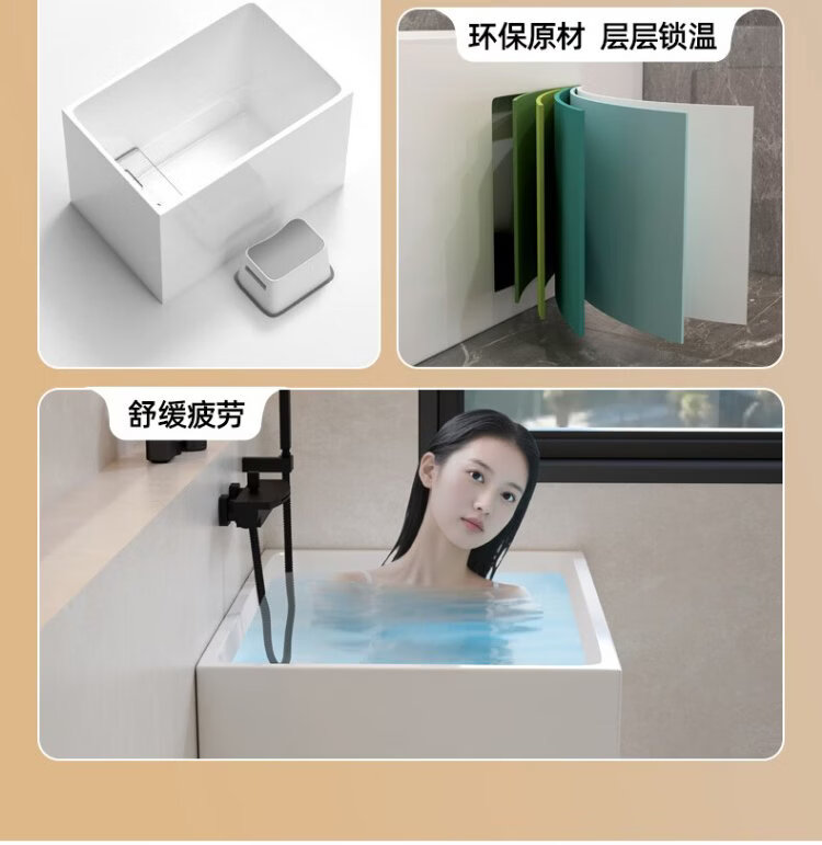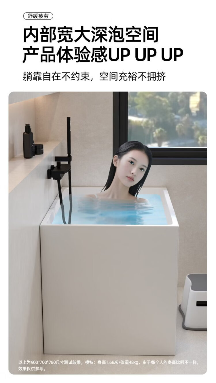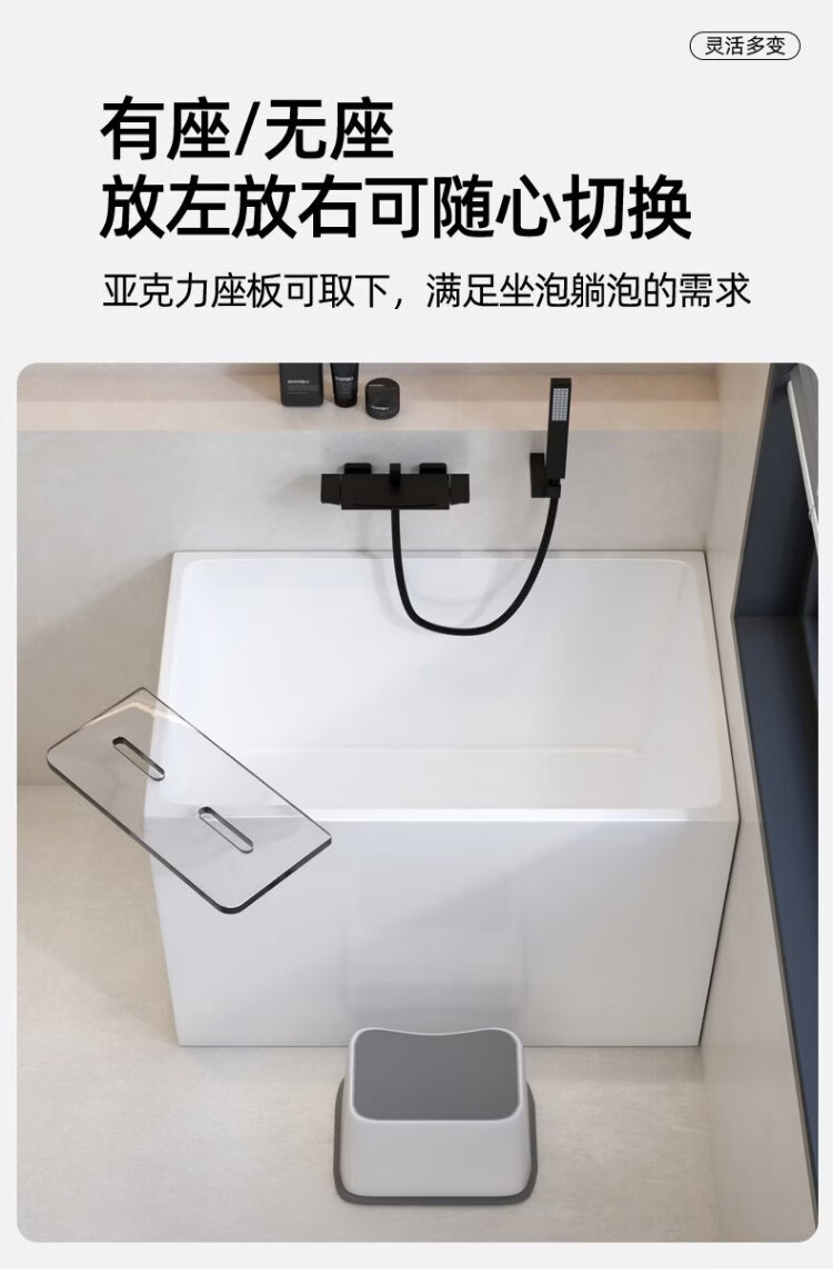 OKALEN bathtub small apartment household imported acrylic over-the-shoulder deep soak mini independent adult square one-piece thermal insulation 1390*700*730 acrylic plate depth 650 0m
