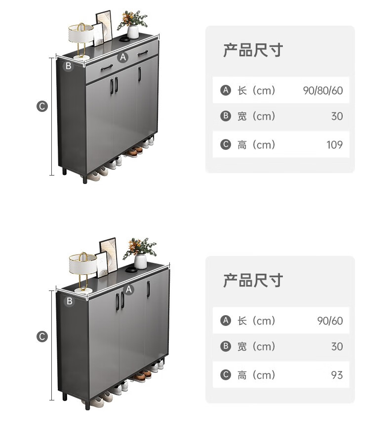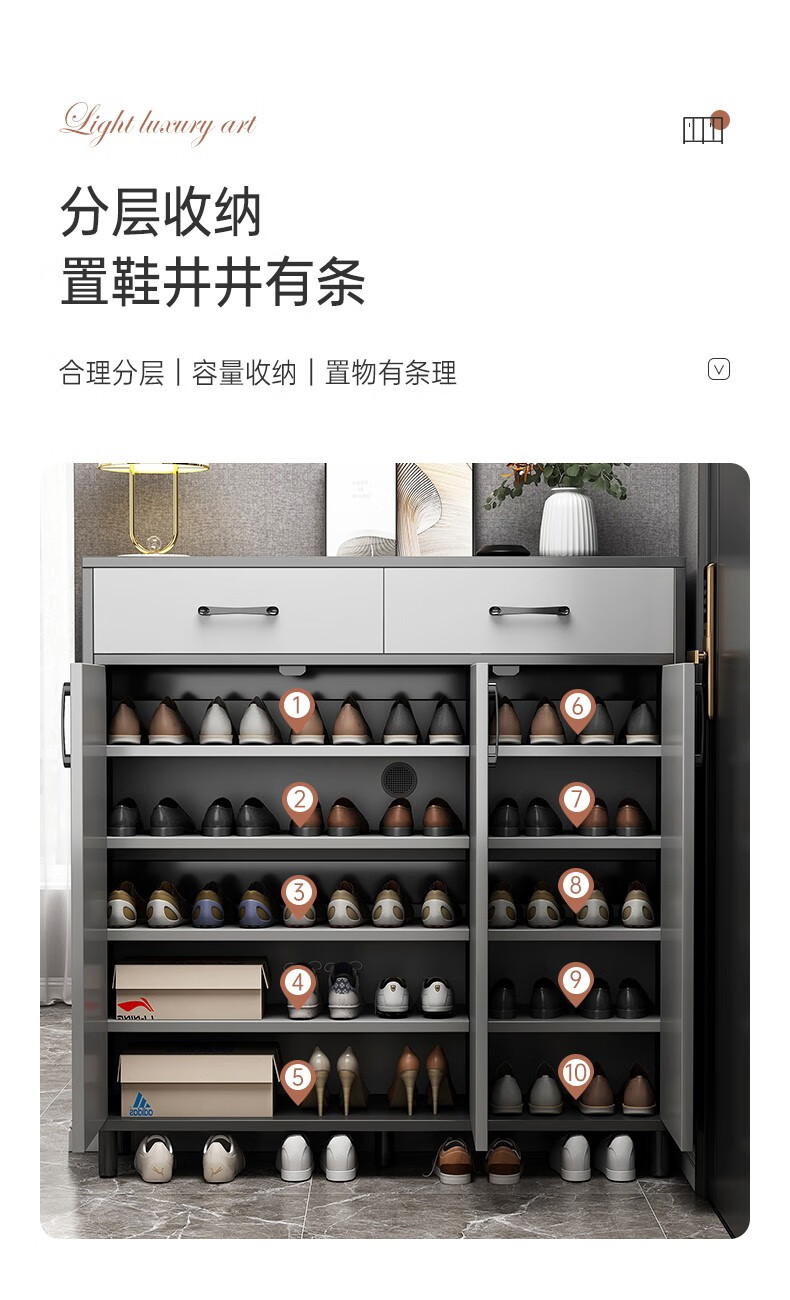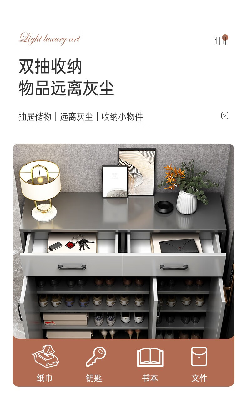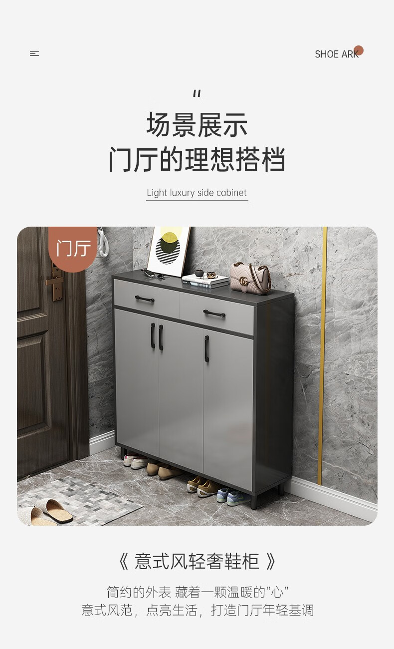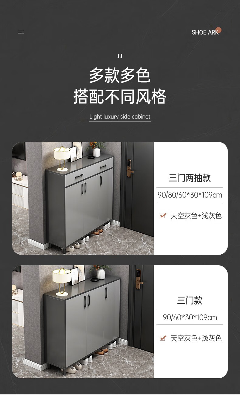 YOUAN shoe cabinet home door new style entrance cabinet entrance large capacity storage rack shoe rack [two doors and one draw] sky gray + light gray 60cm