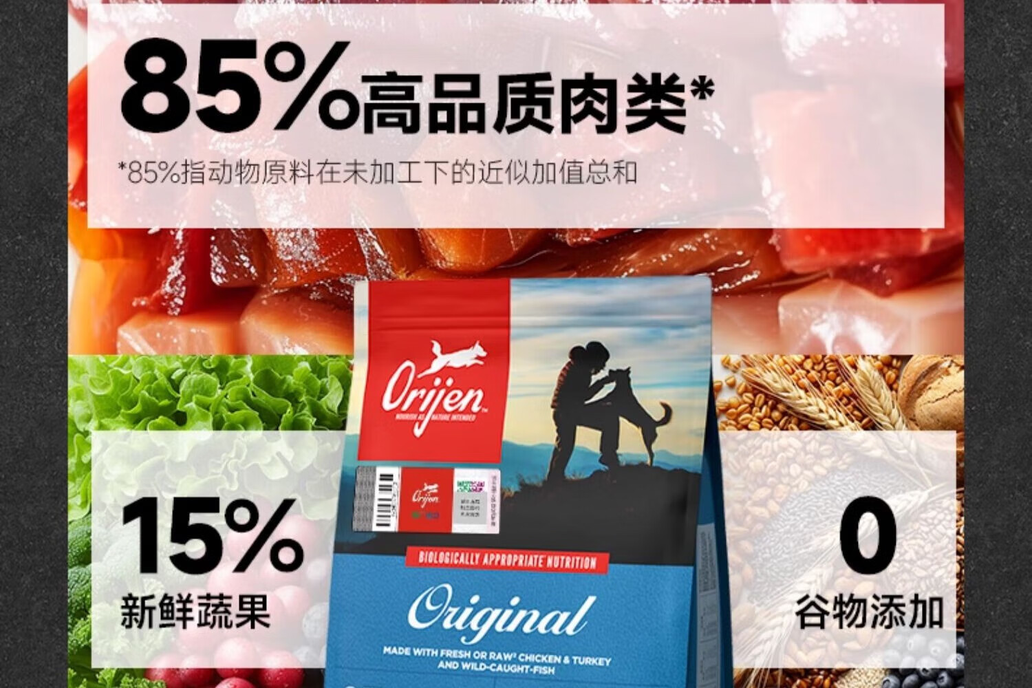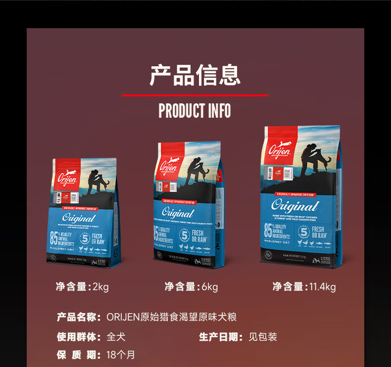 Predation and craving Orijen craving dog food Grain-free adult puppy food Chicken nutritious Hairy fish meat low-fat red meat imported full price Original chicken 2kg*1 bag (Expiration date 25.10)