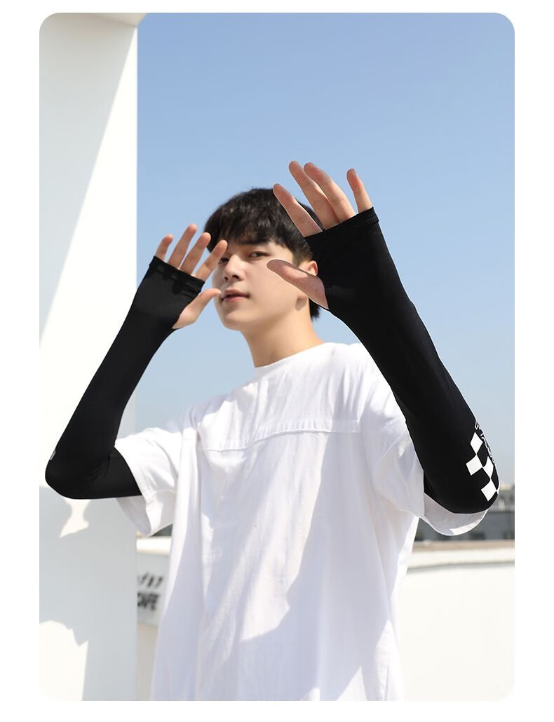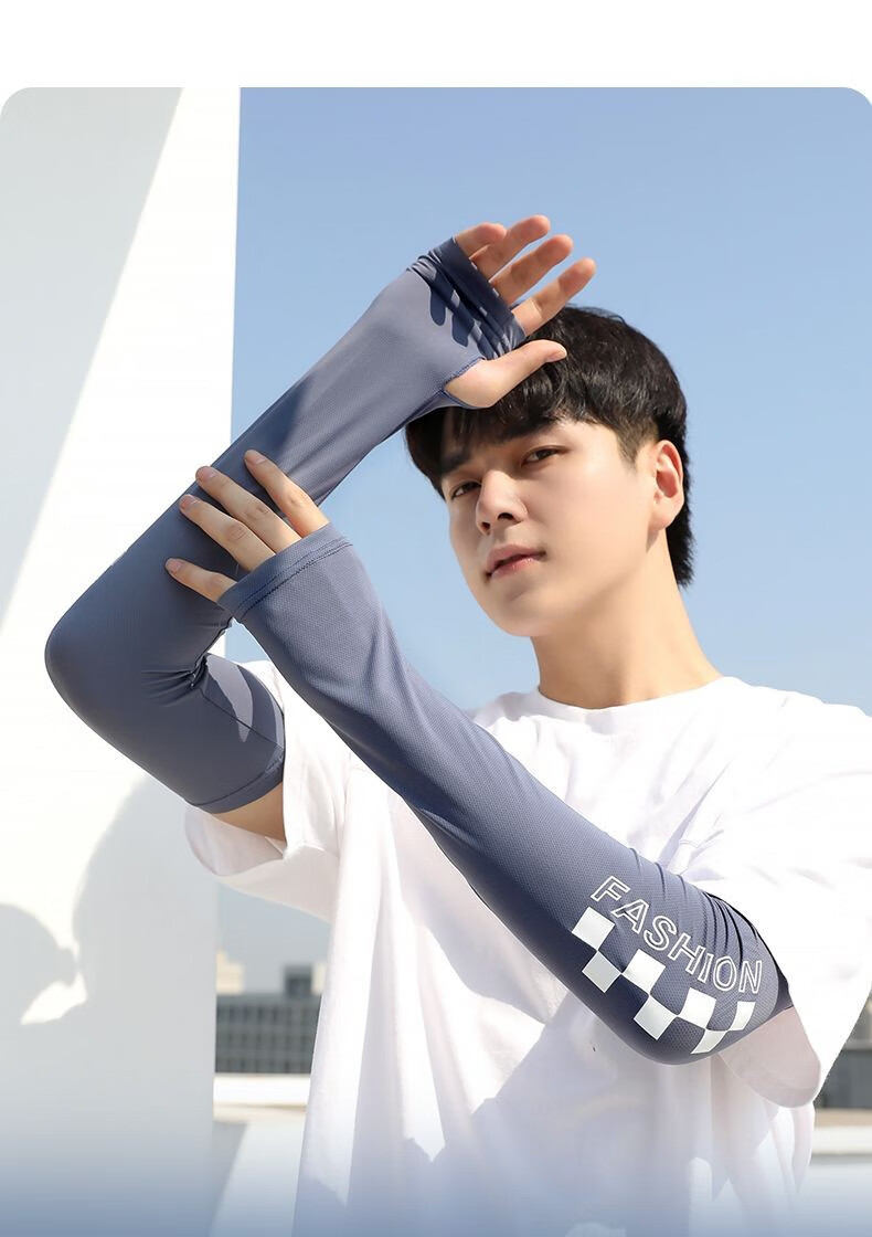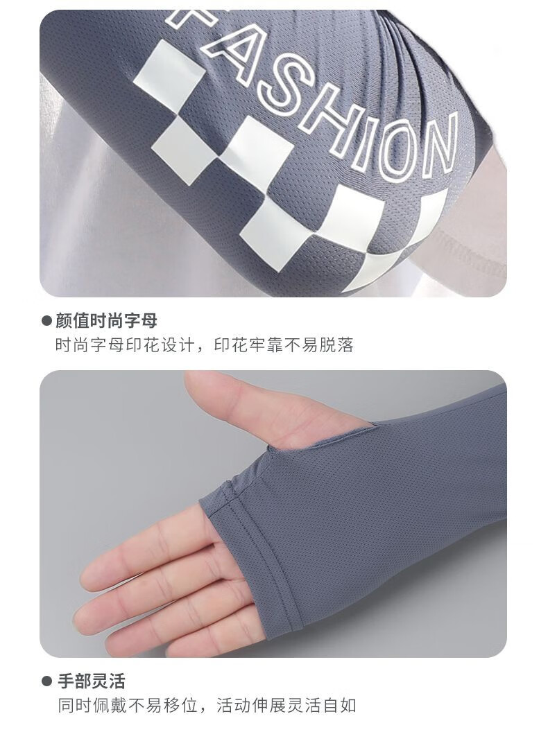 Changyin Men's Extra Large Size Loose Sleeves Men's Ice Silk Sun Protection Sleeves Summer Women's Cycling Arm Protectors Ice Sleeves Extended Gray