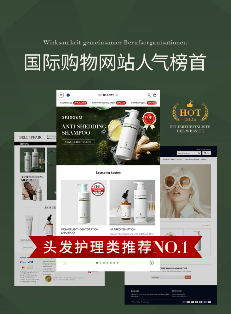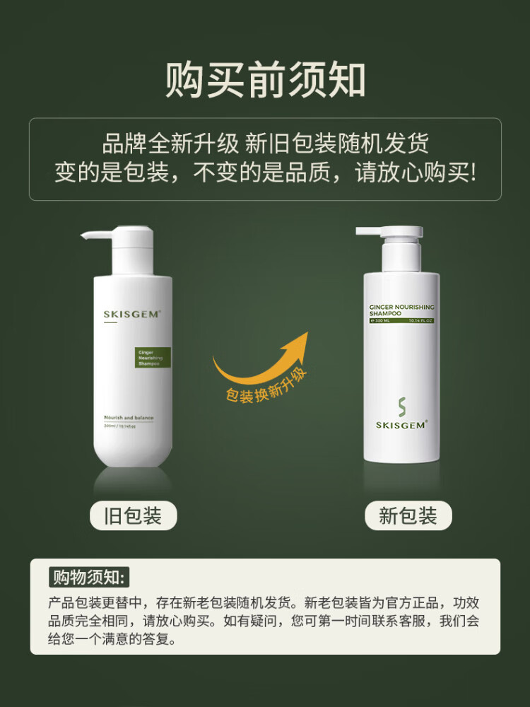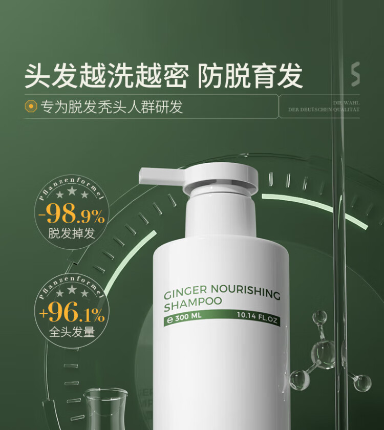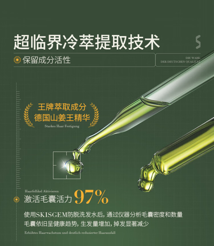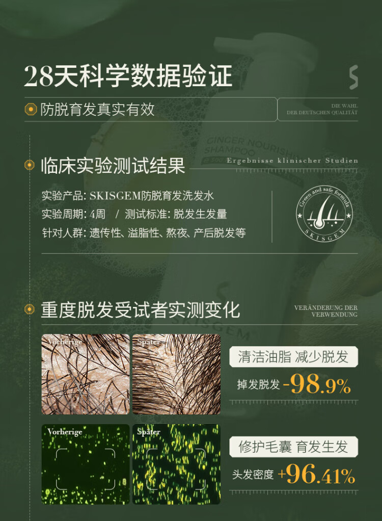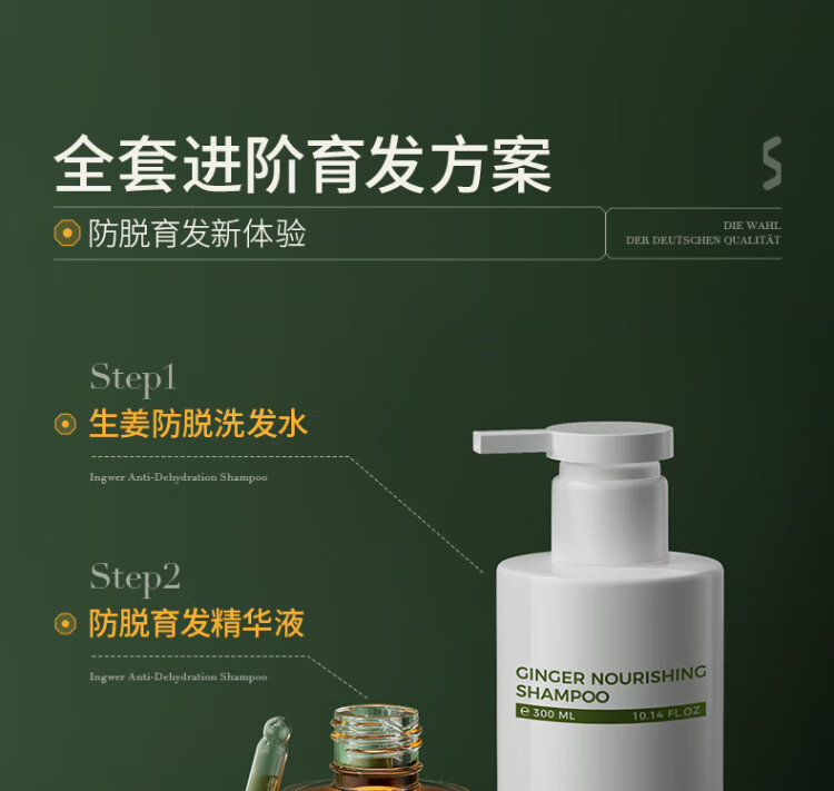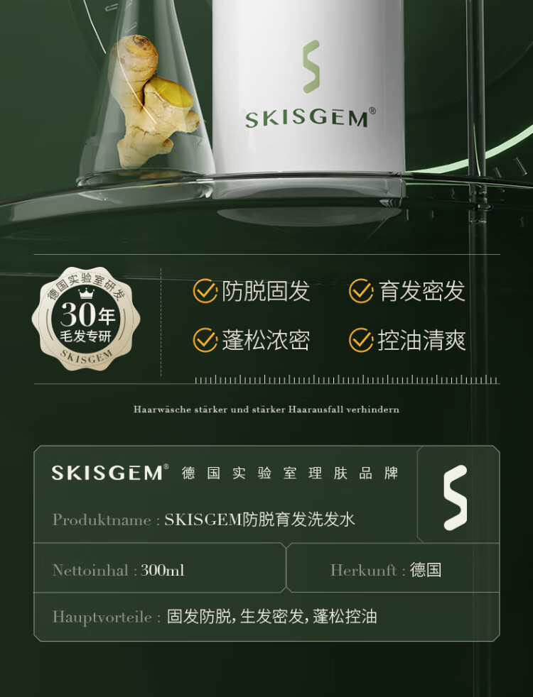 SKISGEM German imported anti-hair loss ginger high-end shampoo anti-itch, anti-dandruff, oil-control, fluffy shampoo cream for men and women, second stage, strong hair roots, anti-hair loss shampoo*2