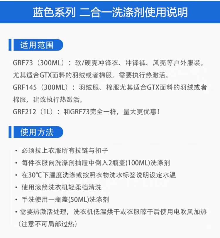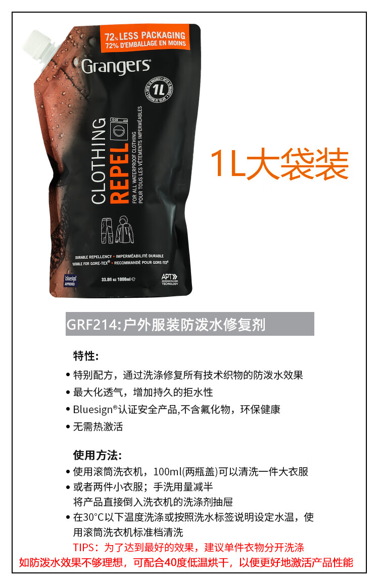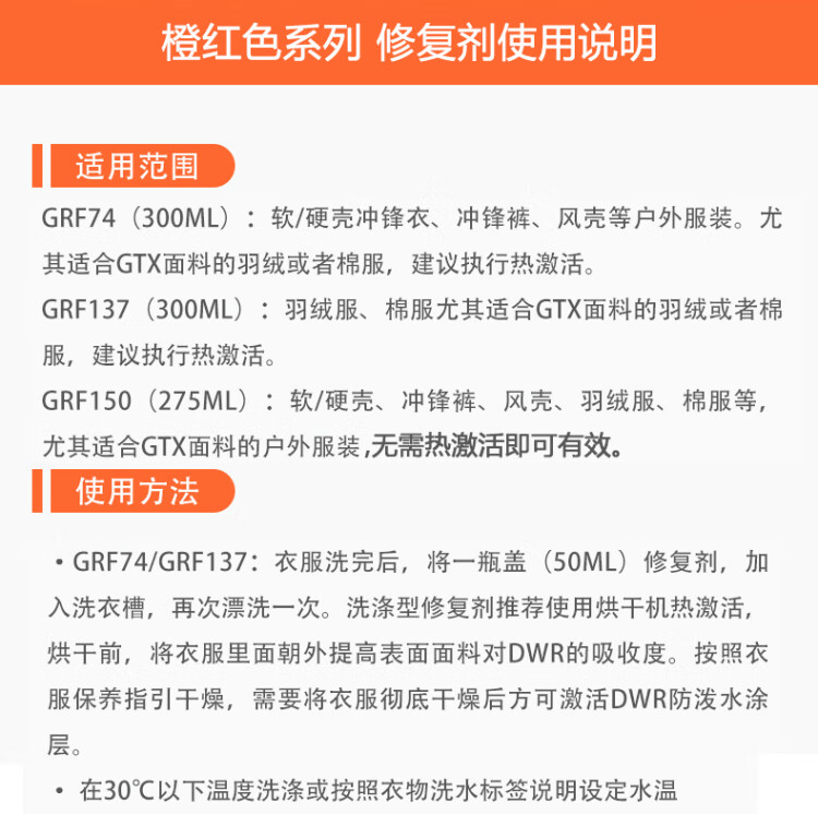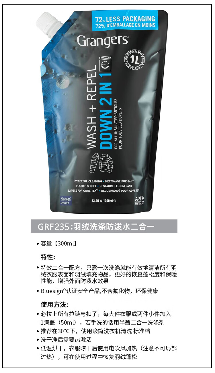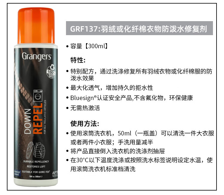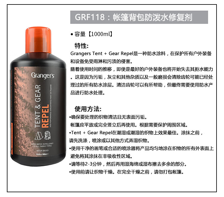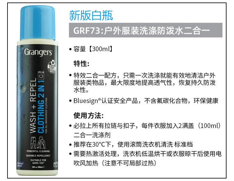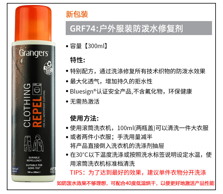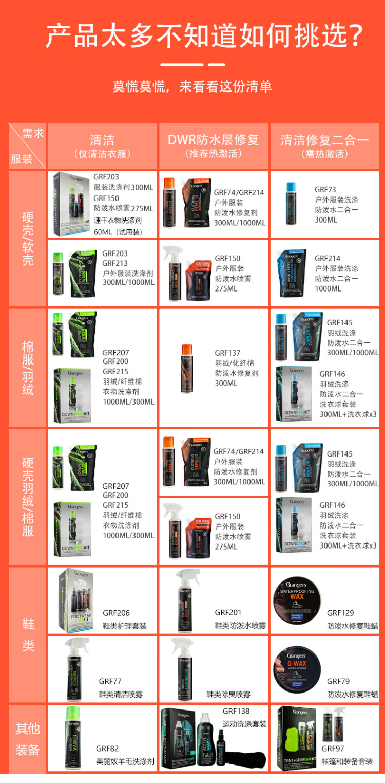 Yan Qiaoxi British-made Grangers ancestor goretex jacket down detergent DWR waterproof repair care spray 1ml 1 pack GRF213