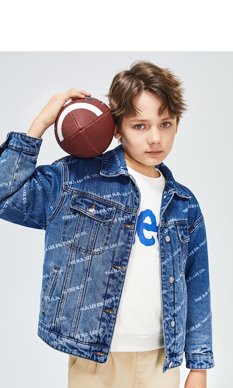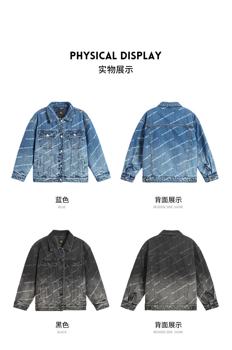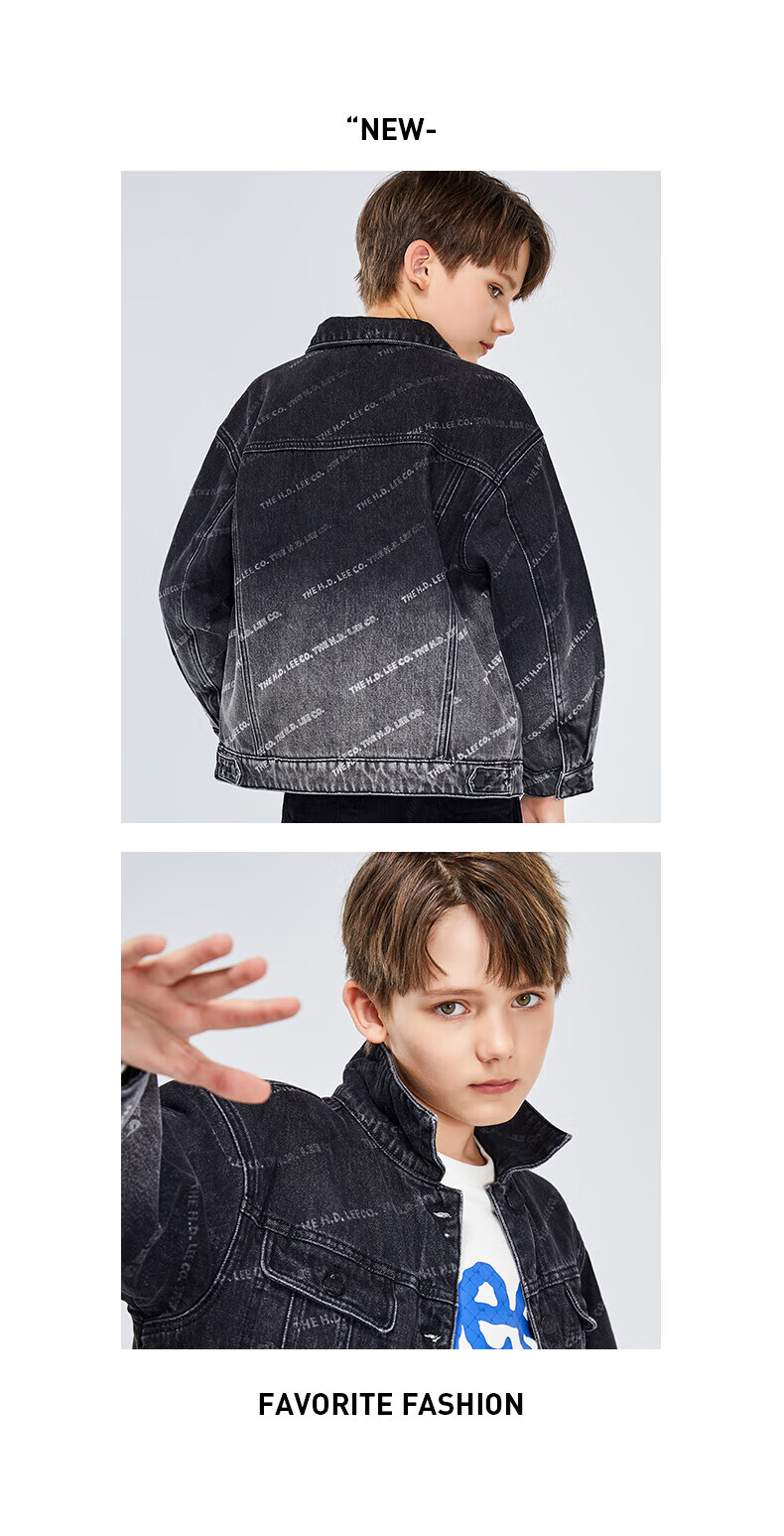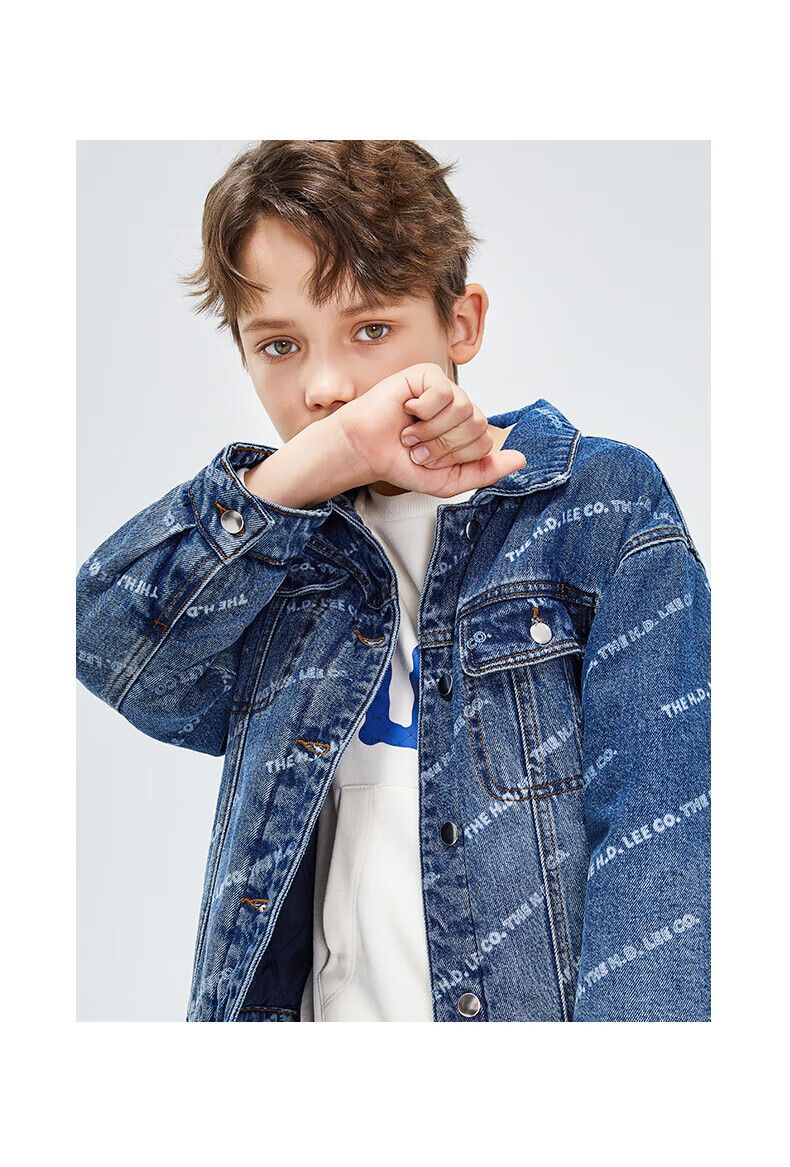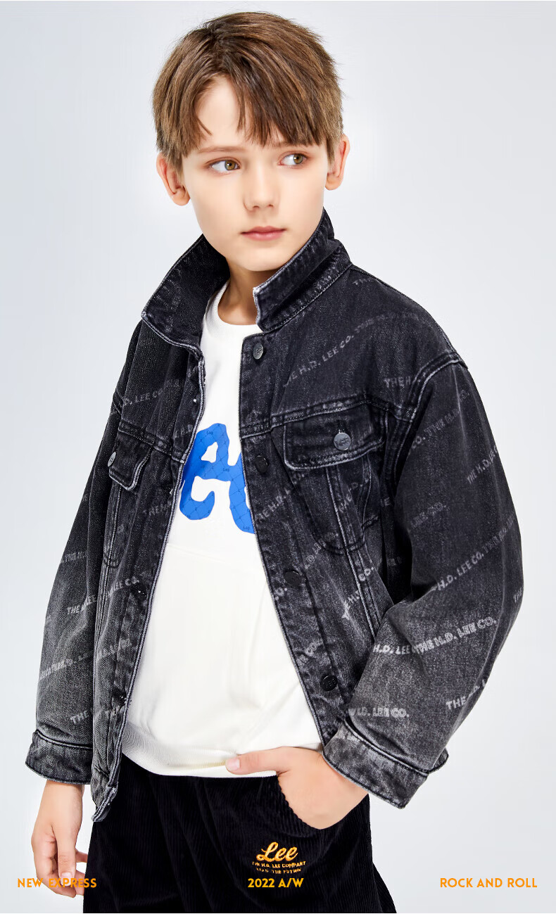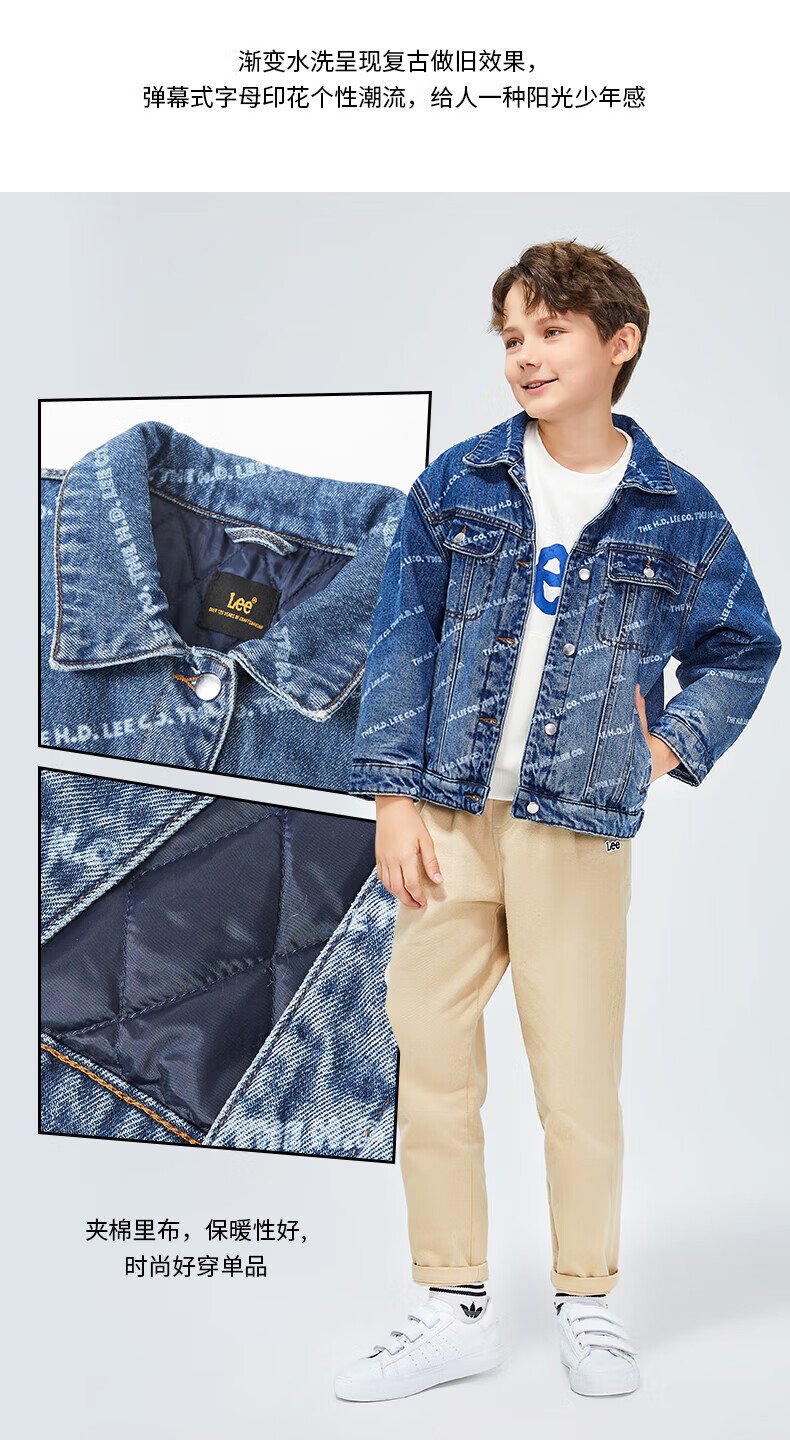 Lee men's and women's denim clothing for autumn students' pure cotton gradient all-over printing casual trendy children's jacket children's clothing new retro resurgence blue 140cm