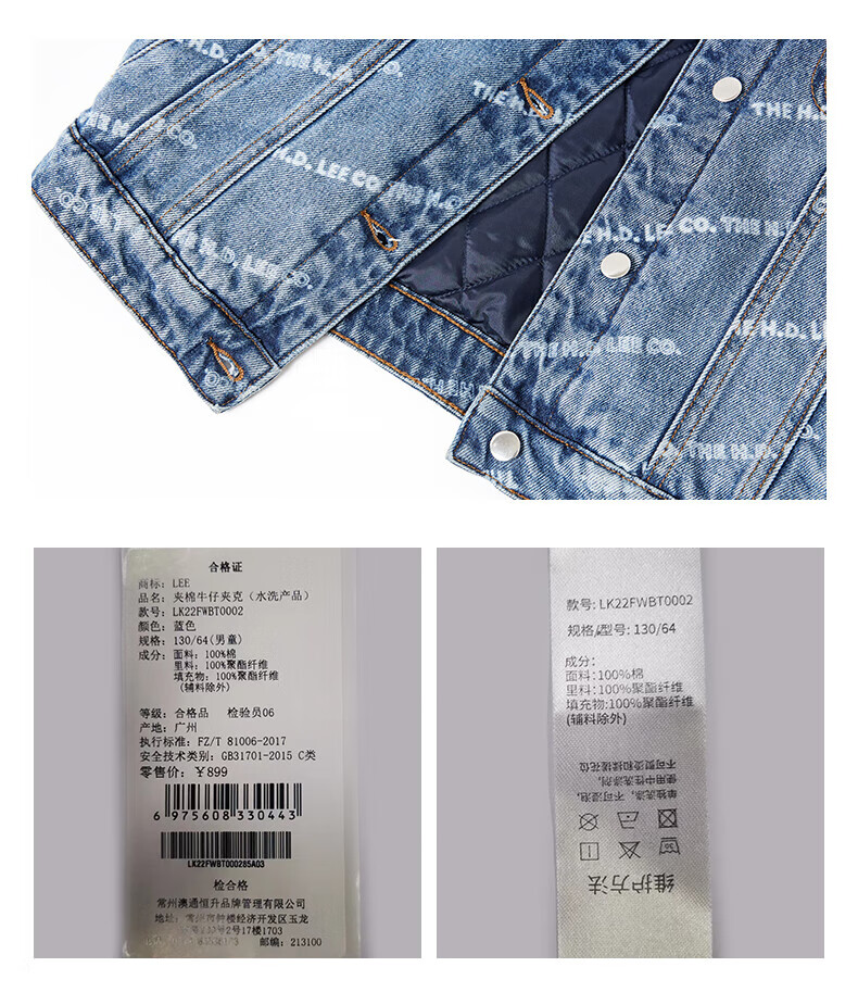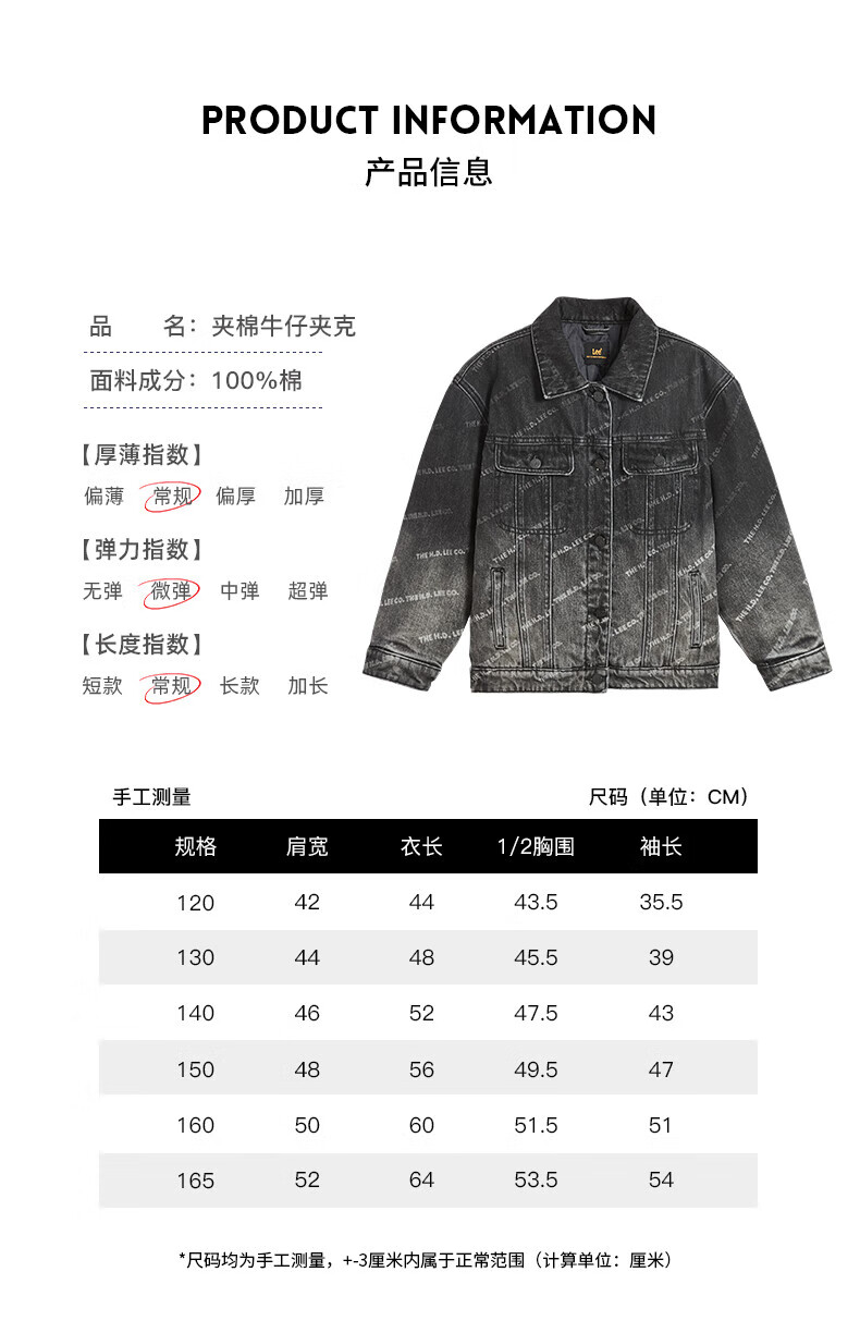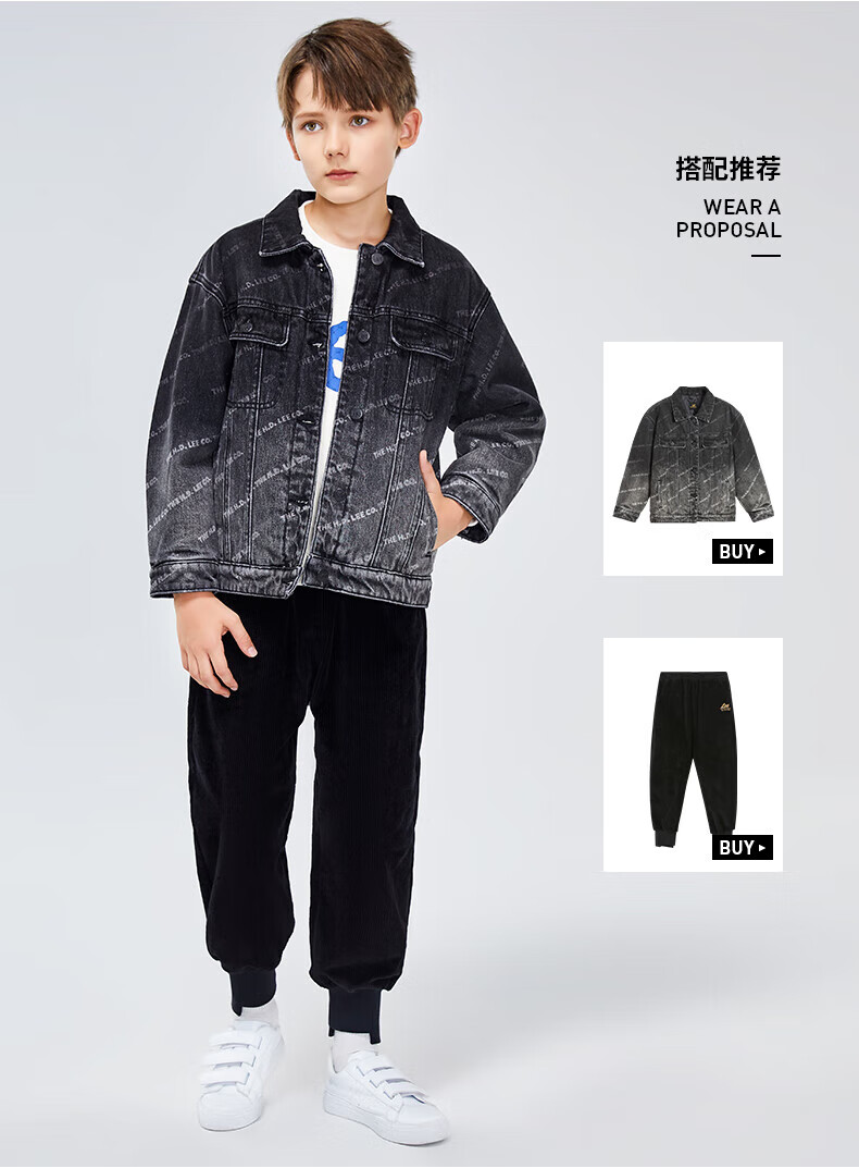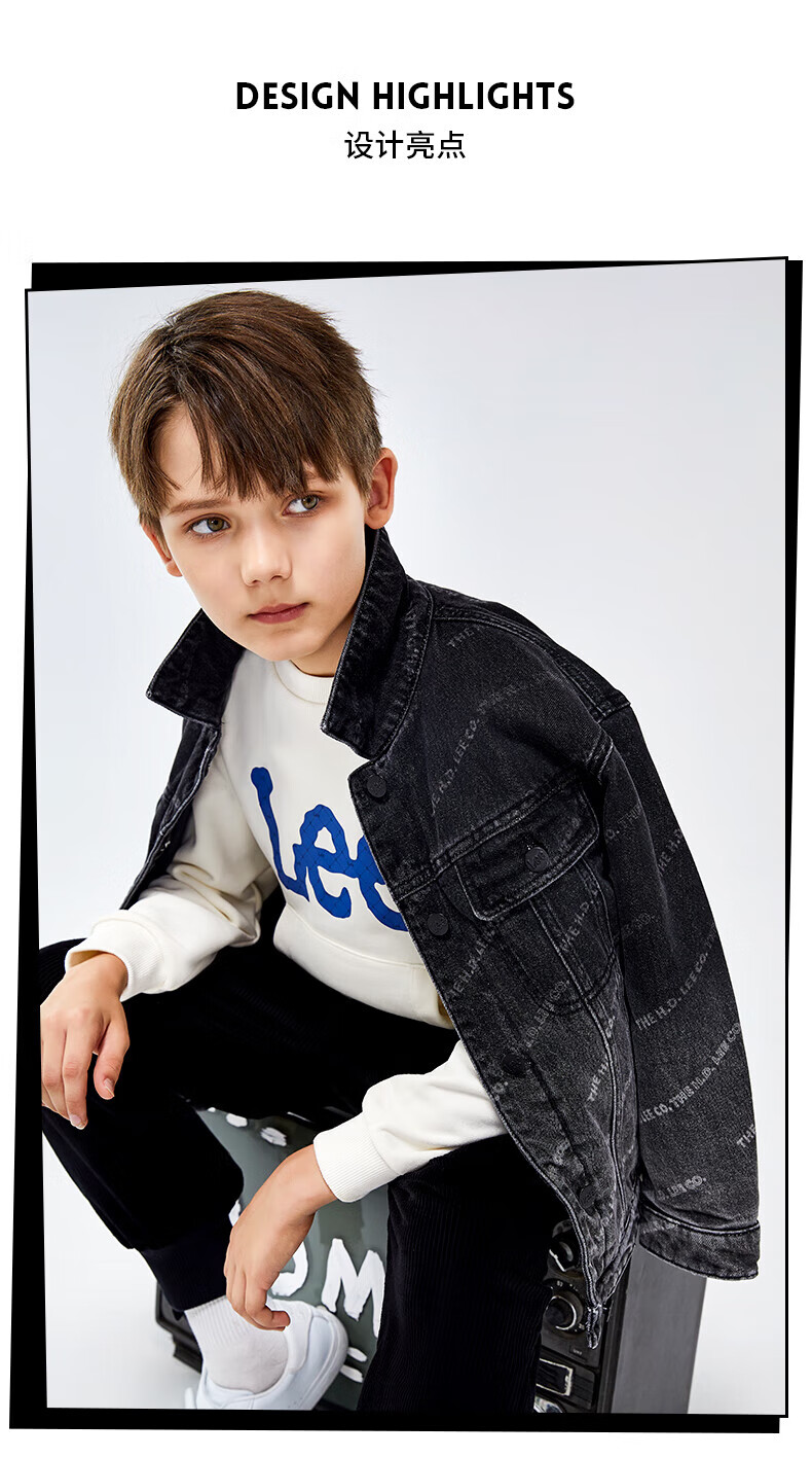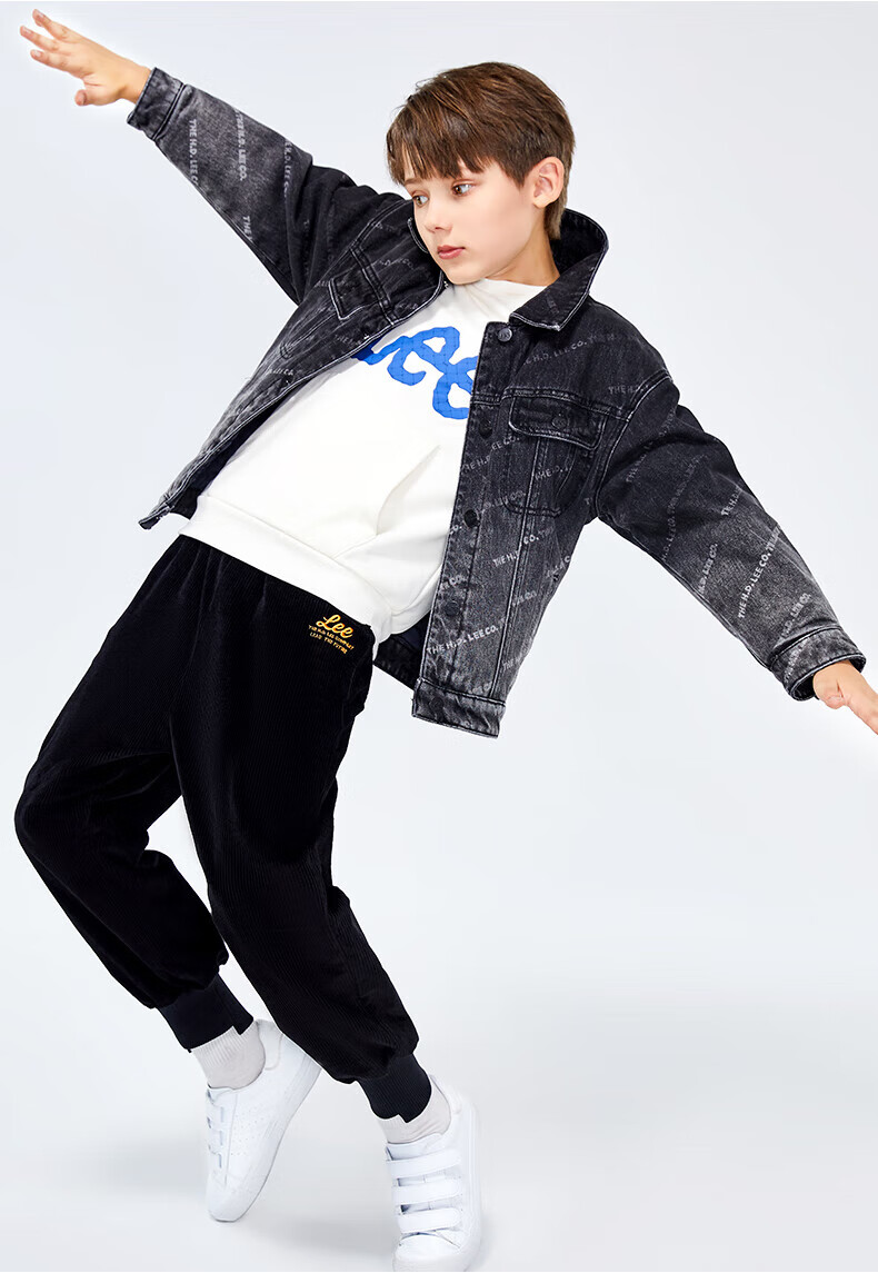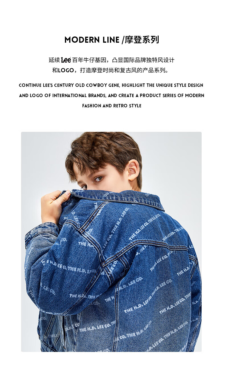 Lee men's and women's denim clothing for autumn students' pure cotton gradient all-over printing casual trendy children's jacket children's clothing new retro resurgence blue 140cm