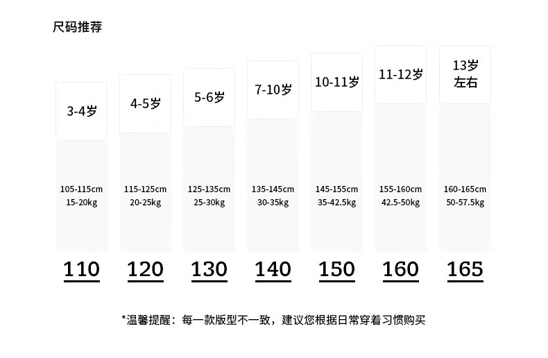 China (cm) 165 / 88-90 170 / 96-98 175 / 108-110 180 / 118-122 185 / 126-130