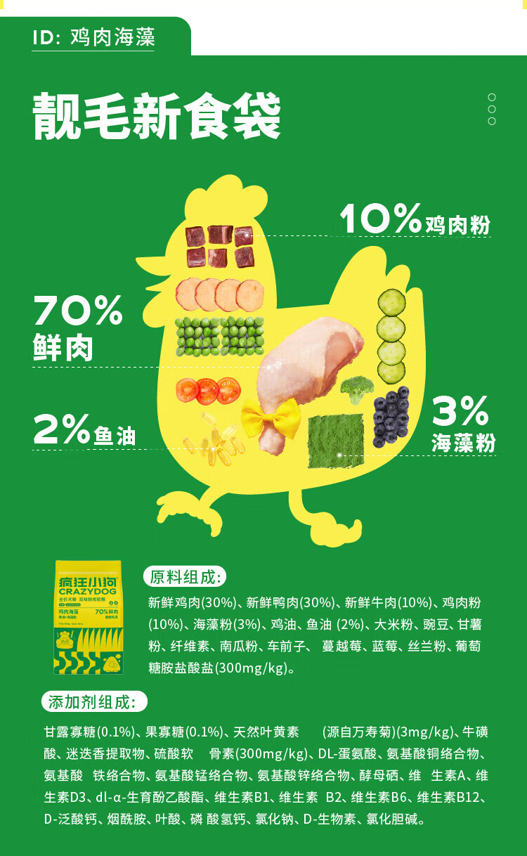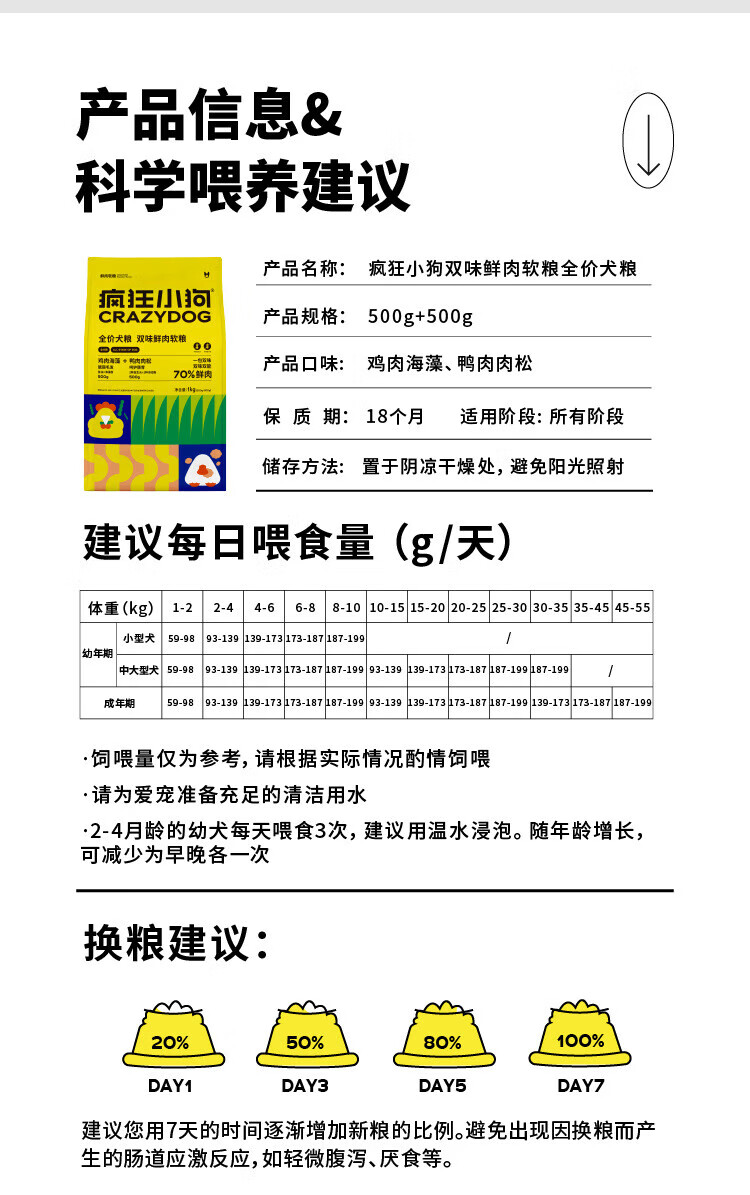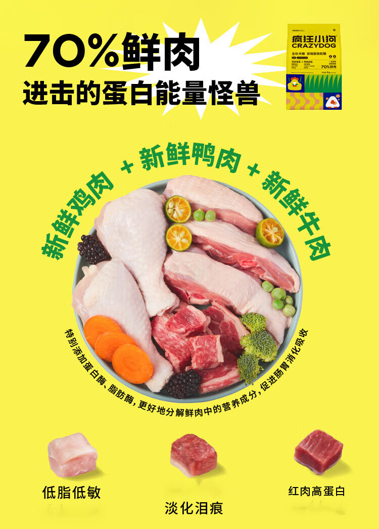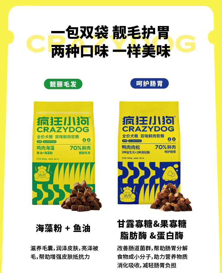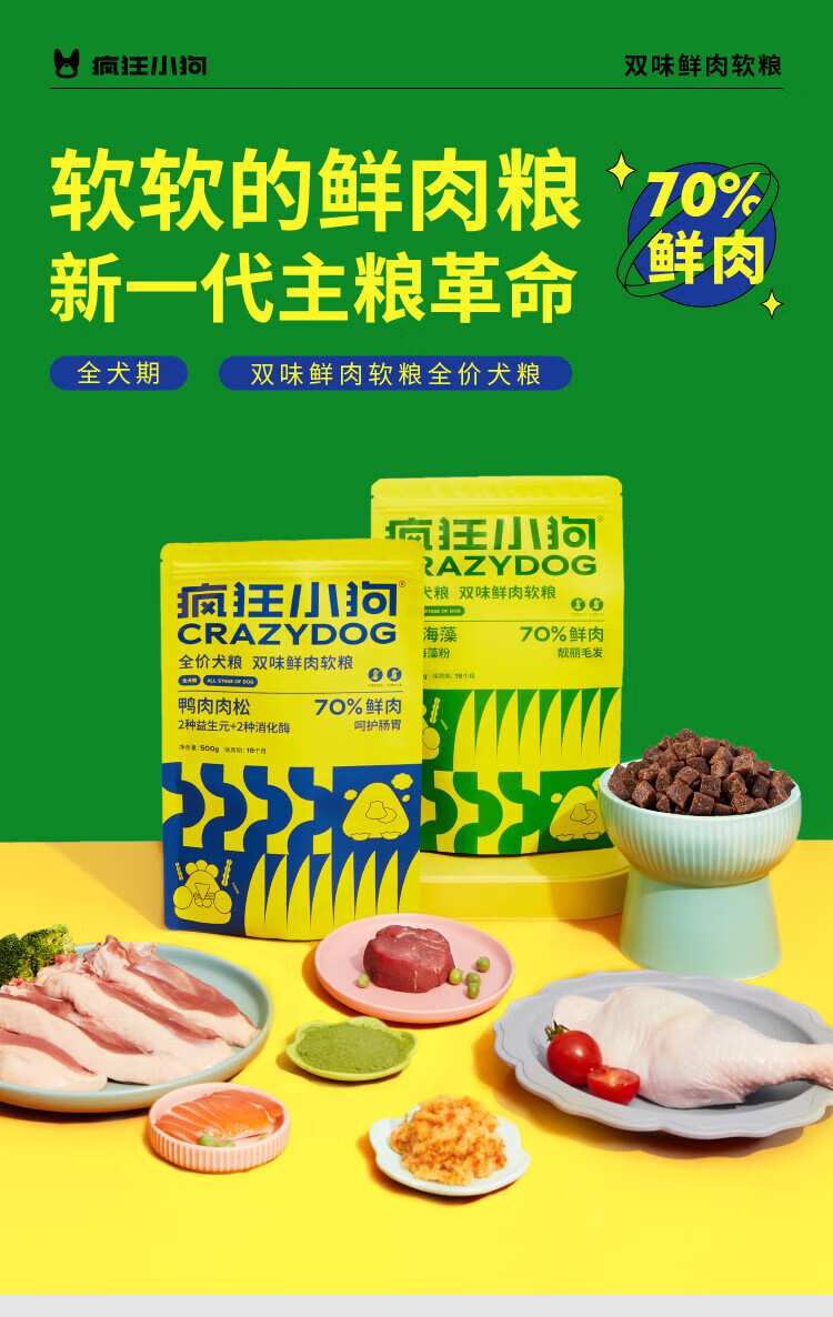 Crazy Puppy Fresh Meat Soft Food One Bag Double Flavor Dog Food Meat Food Puppies Adult Dogs Teddy Small Dogs Older Dogs General Purpose One Bag Double Flavor 1kg 70% Meat Content *1 Pack