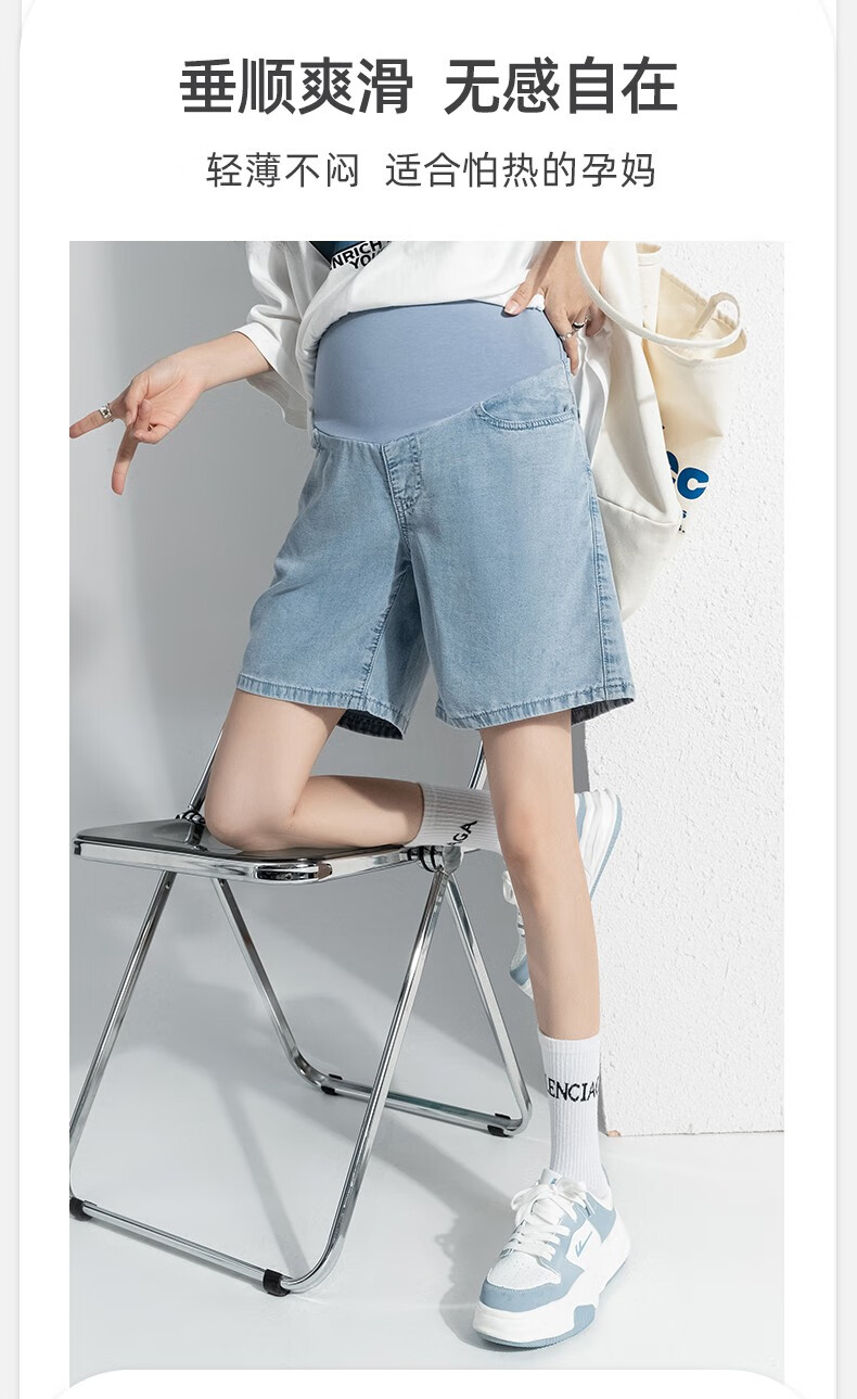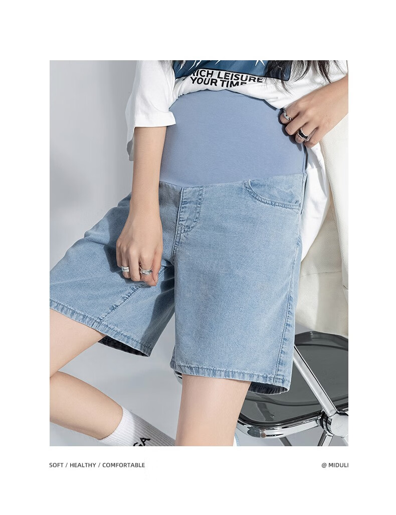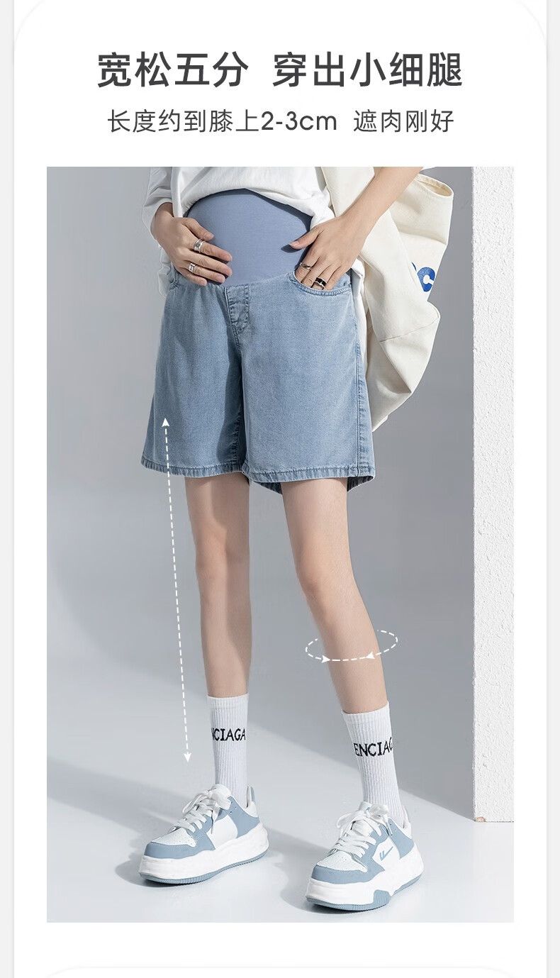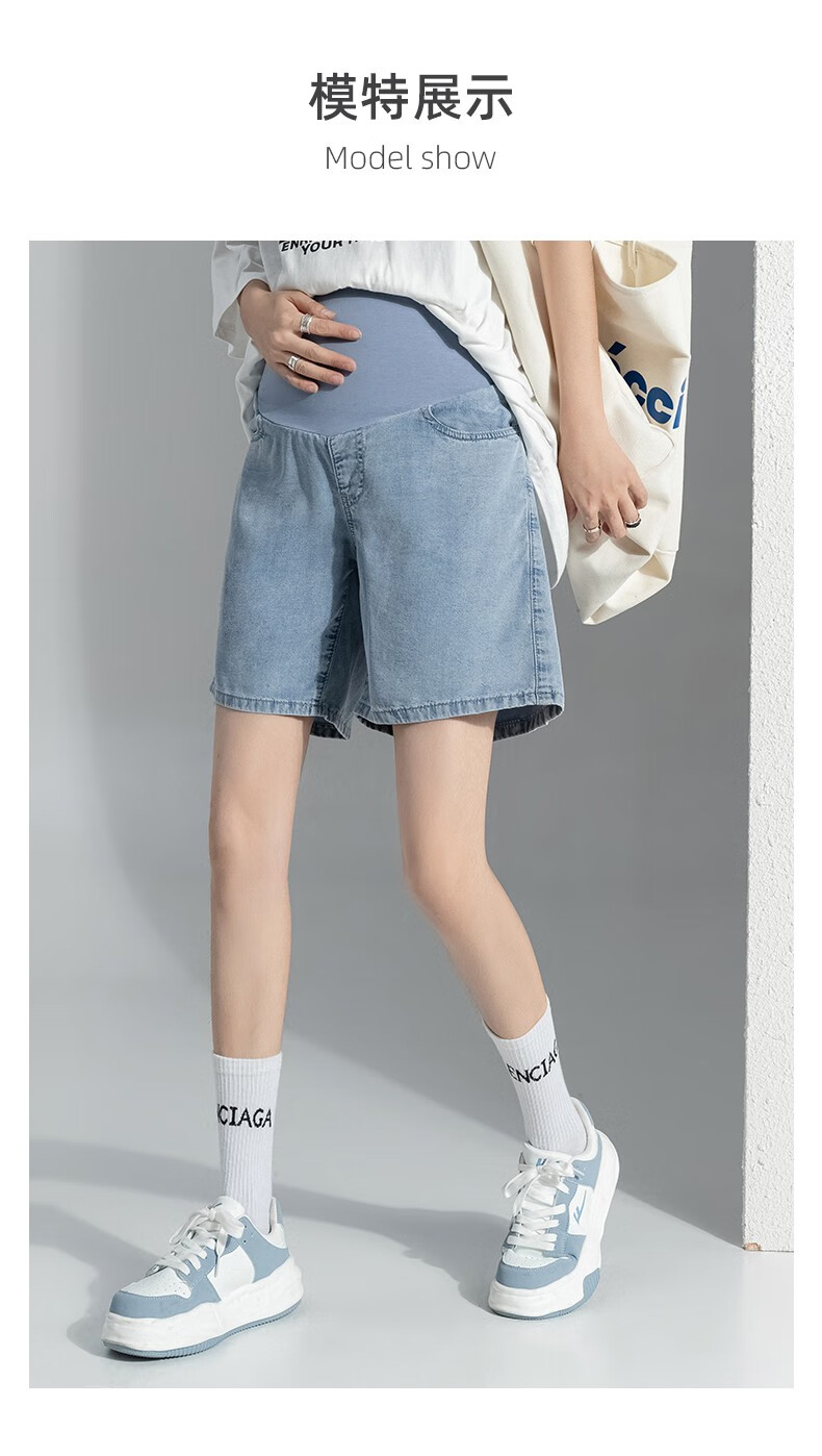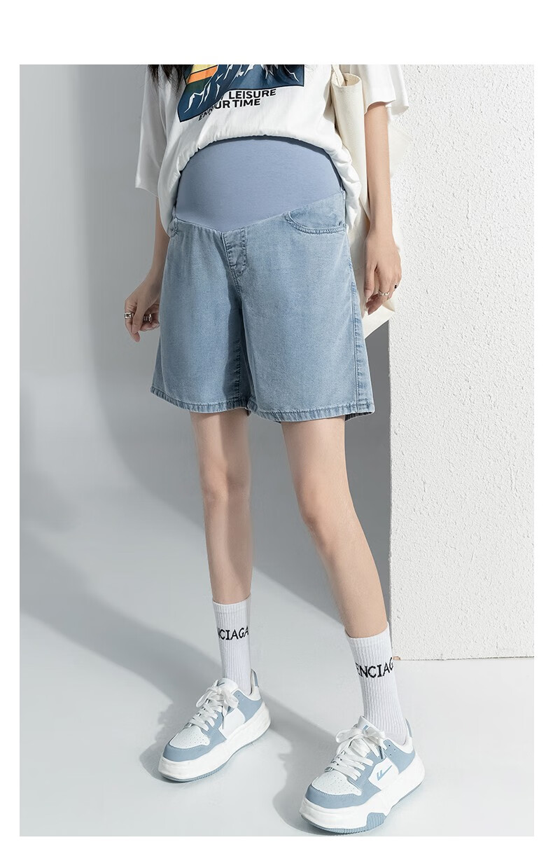 Miduli maternity shorts for women in summer thin style for women wearing straight jeans five-point mid-size pants loose wide-leg pants summer pants summer suit blue M