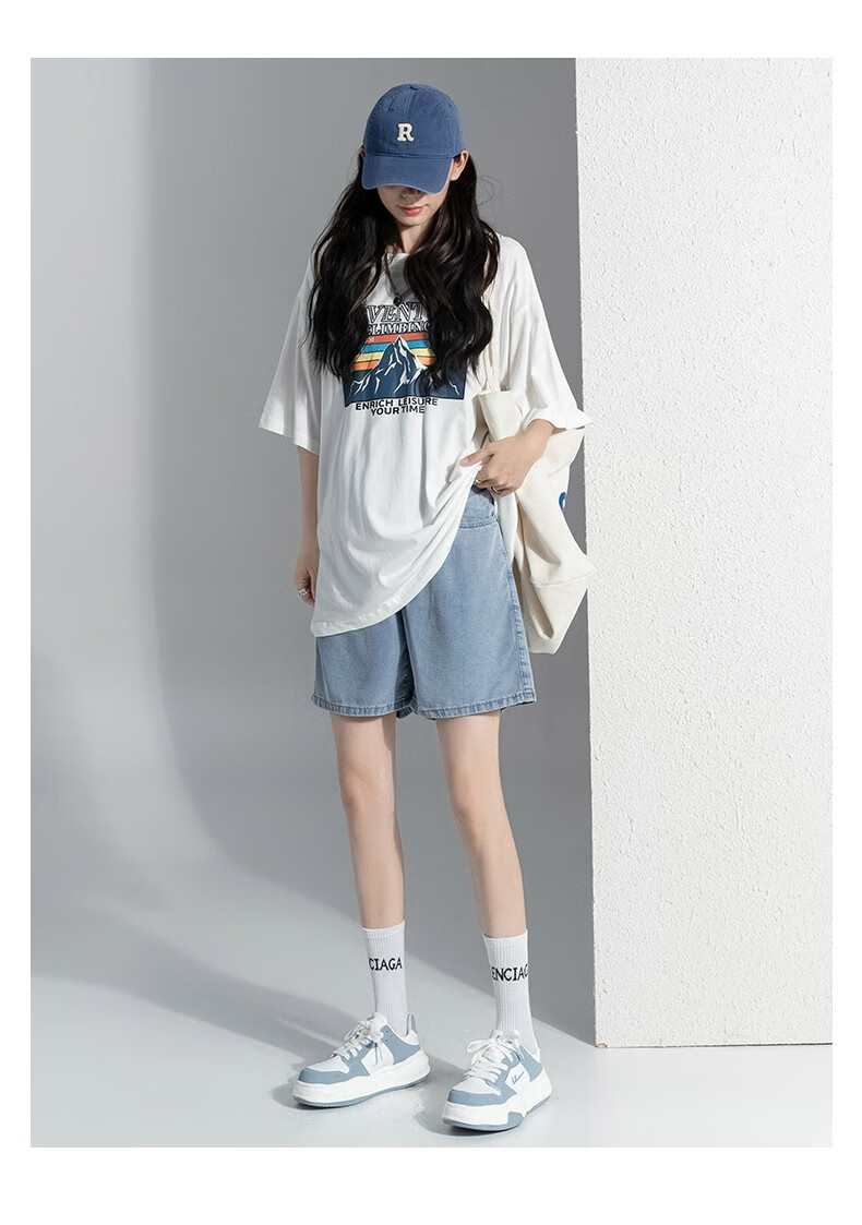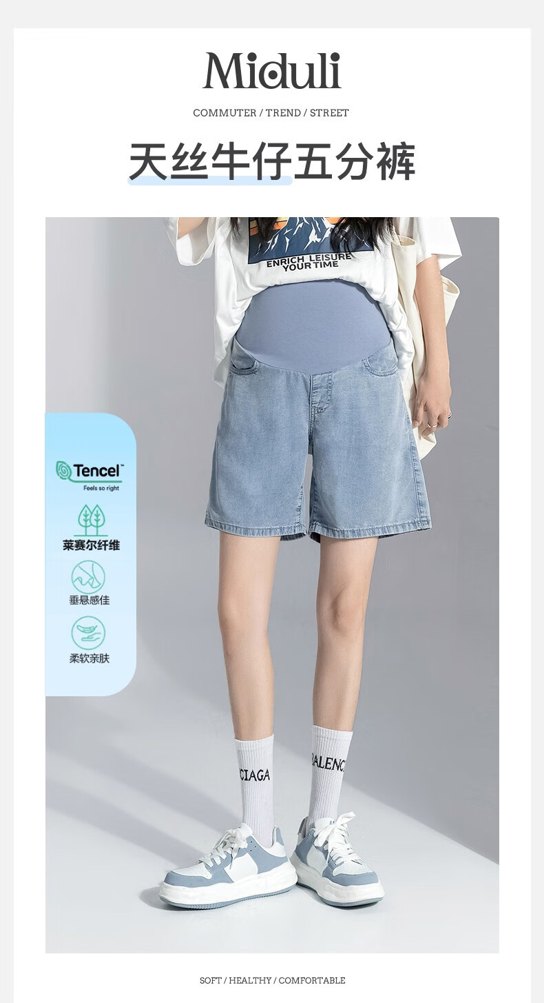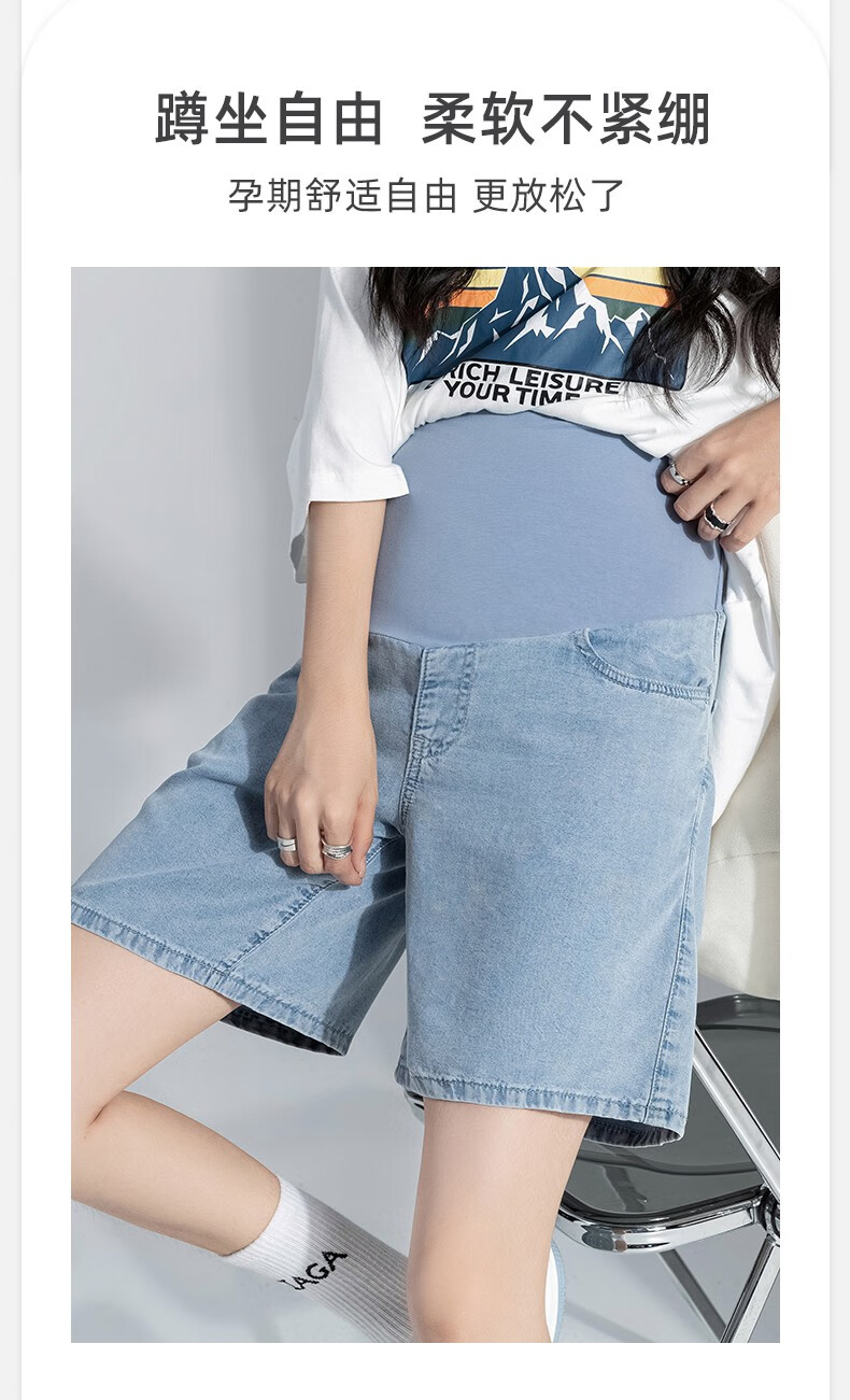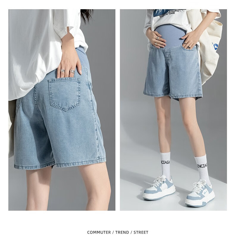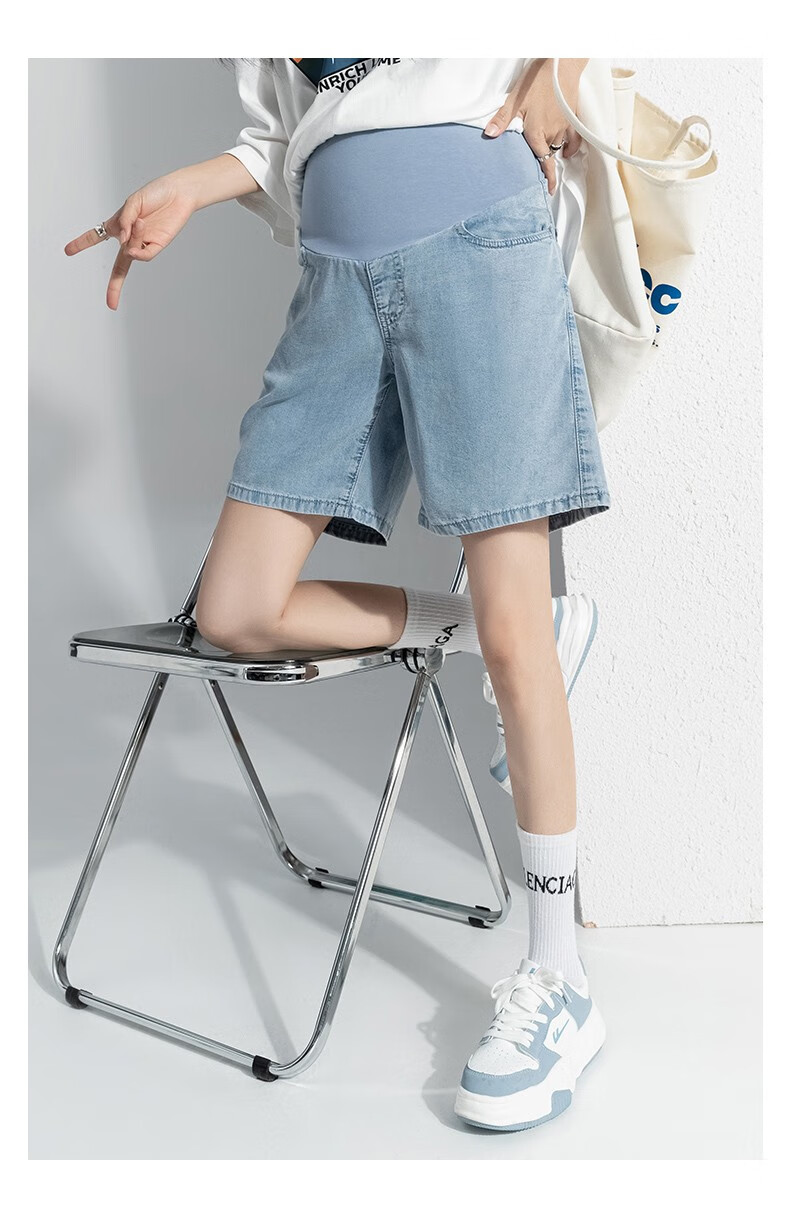 Miduli maternity shorts for women in summer thin style for women wearing straight jeans five-point mid-size pants loose wide-leg pants summer pants summer suit blue M