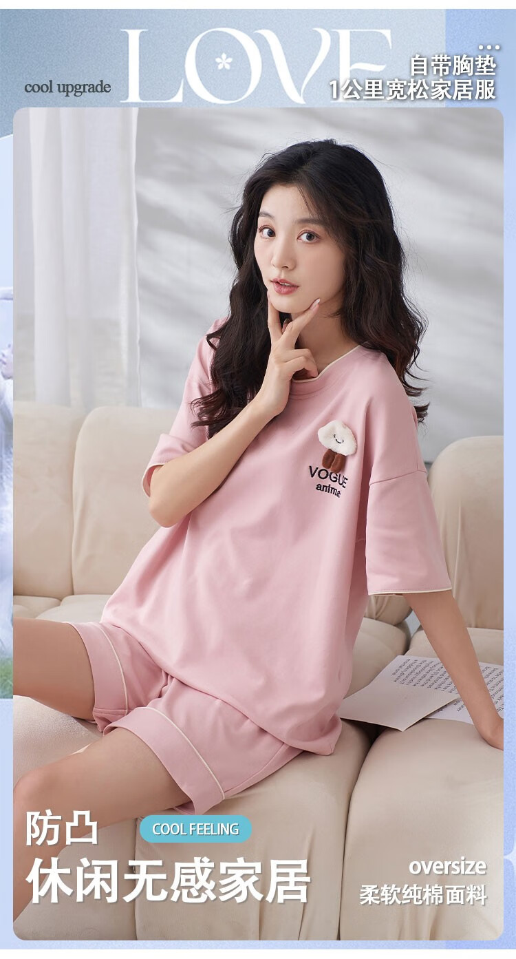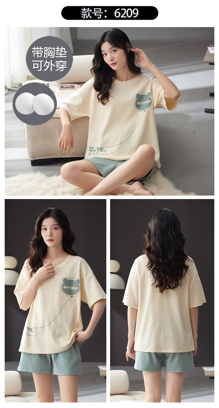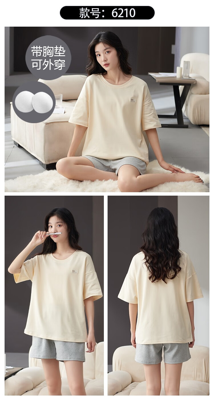 Pijama Shanbatu con protectores para el pecho para mujer, pantalones cortos de verano de manga corta de algodón puro, cuello redondo fino, los estudiantes y adolescentes pueden usar ropa de casa Y1-6210 2XL (recomendado 130-145 Jin Jin equivale a 0,5 kg)