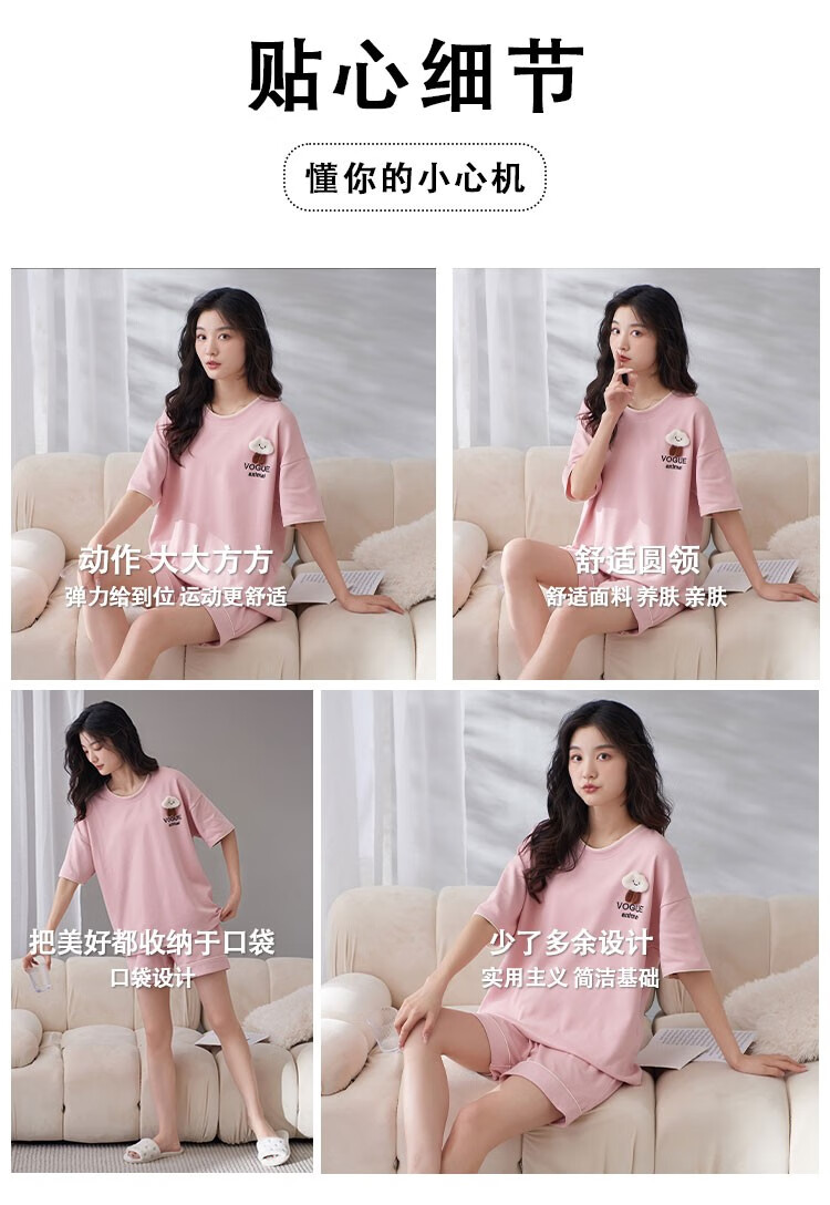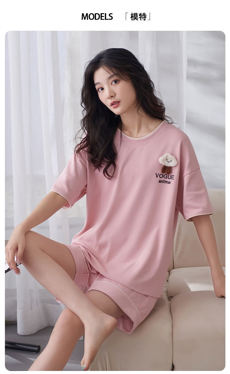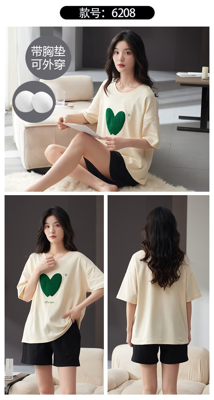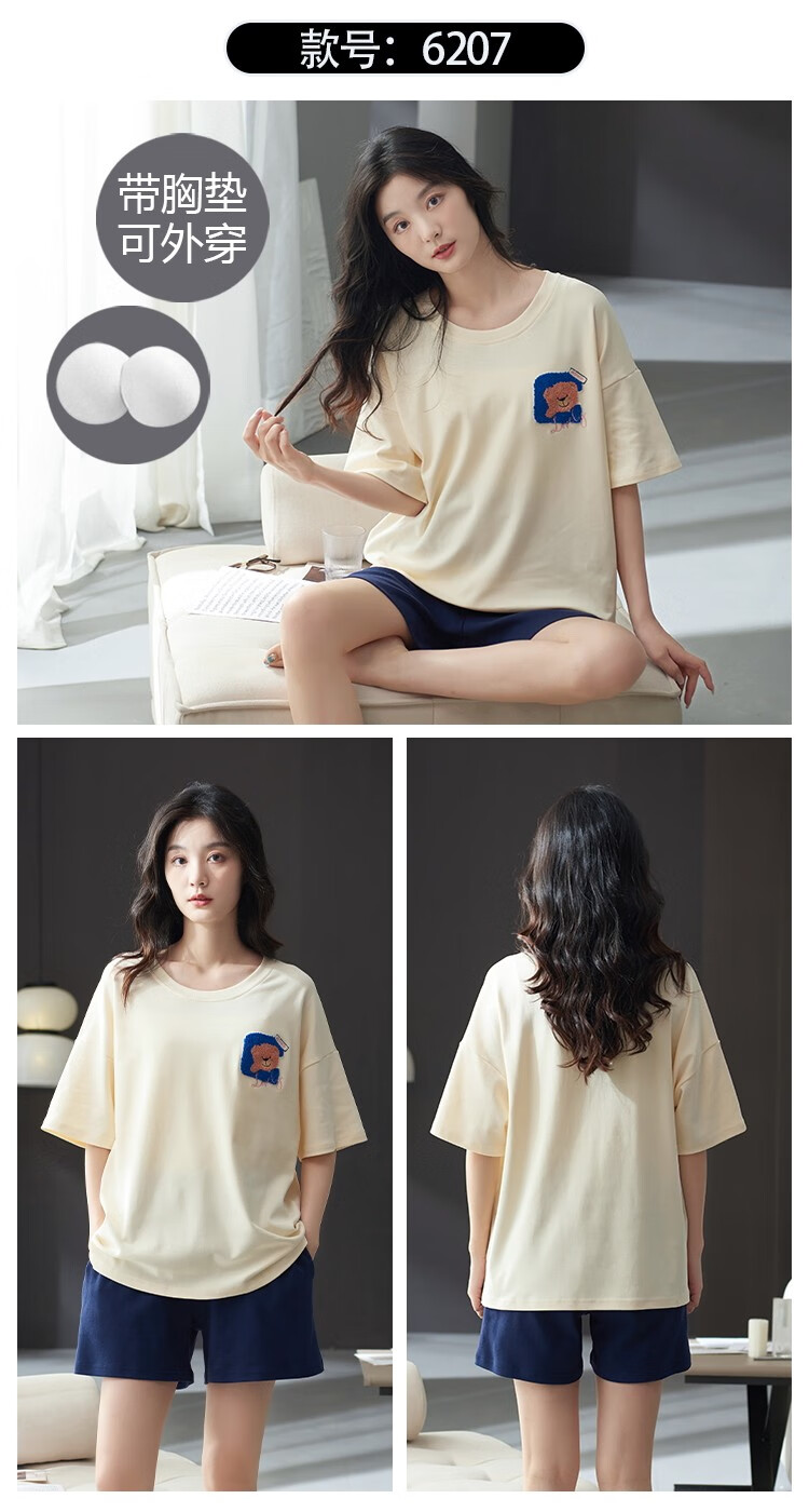 Pijama Shanbatu con protectores para el pecho para mujer, pantalones cortos de verano de manga corta de algodón puro, cuello redondo fino, los estudiantes y adolescentes pueden usar ropa de casa Y1-6210 2XL (recomendado 130-145 Jin Jin equivale a 0,5 kg)