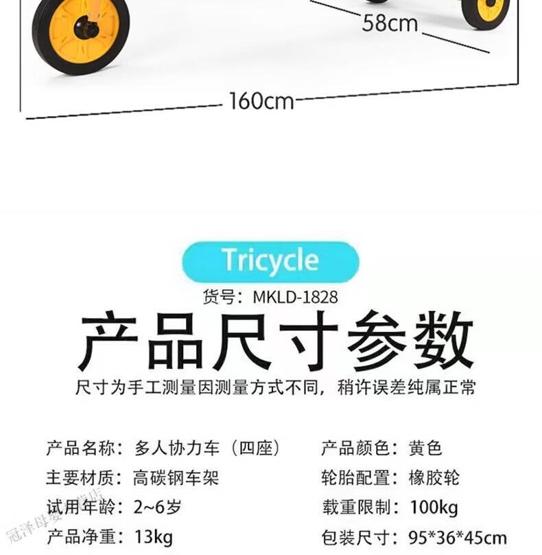 Yingtang tricycle children's bucket multi-person collaborative early childhood education pedal car outdoor sports pedal toy car kindergarten stroller rubber wheel MT-6195 double-yellow