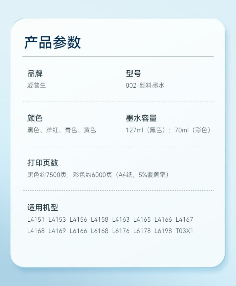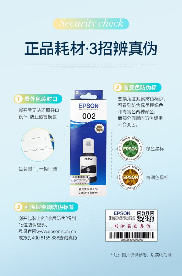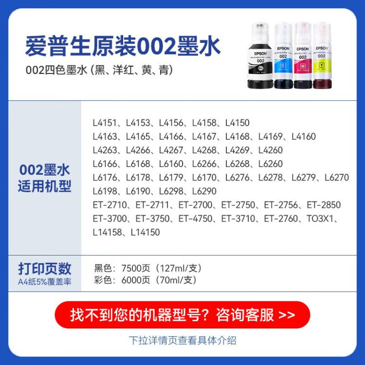 Epson (EPSON) 002 original ink L4268/4168/4266/4263/6166/6168/6178/6198 printer 002 original ink black