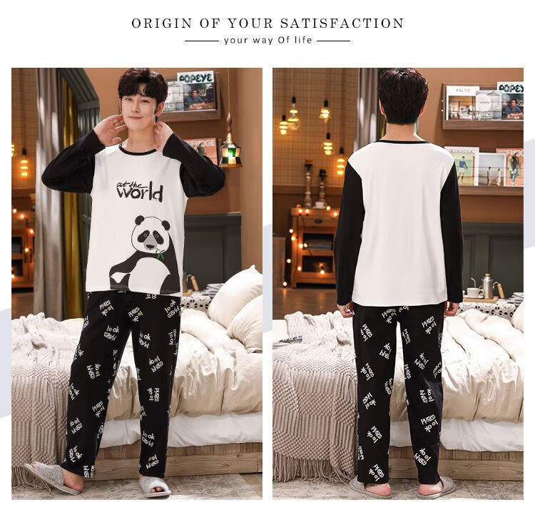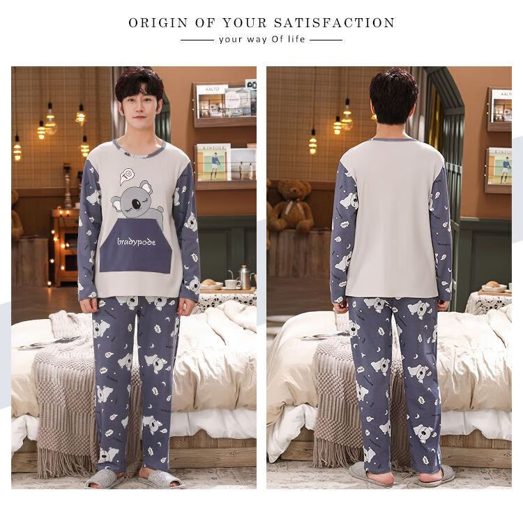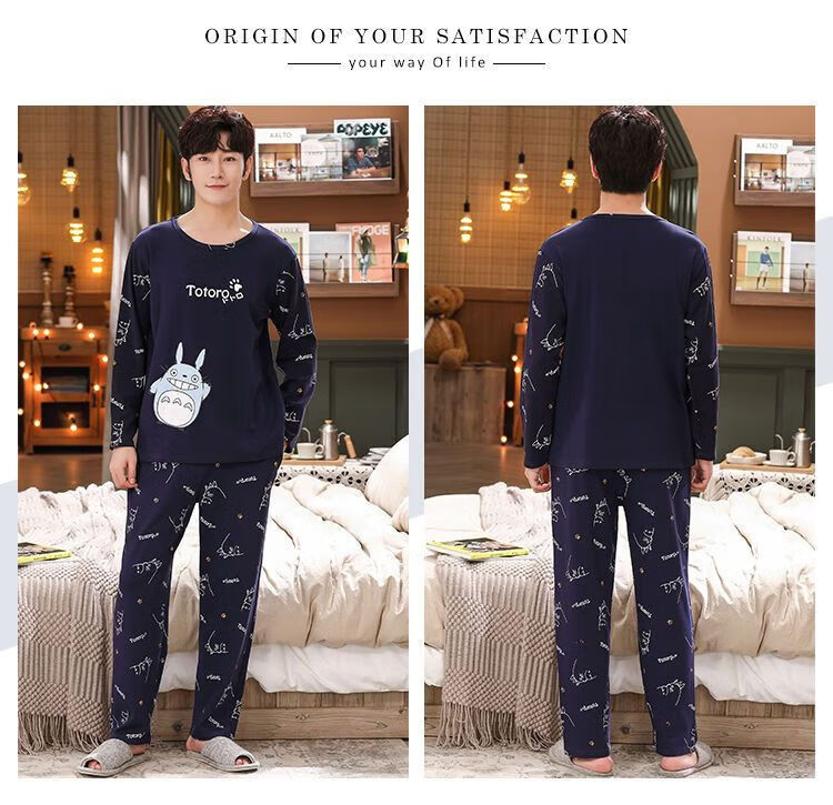 LangSha Youth Pajamas Men's Cartoon Long Sleeve Suit Spring and Autumn Thin Junior High School Students and High School Students Dormitory Home Clothes A Long Sleeve Men 1283 SpongeBob SquarePants. XL Standard (120-140 Jin Jin equals 0.5 kg)