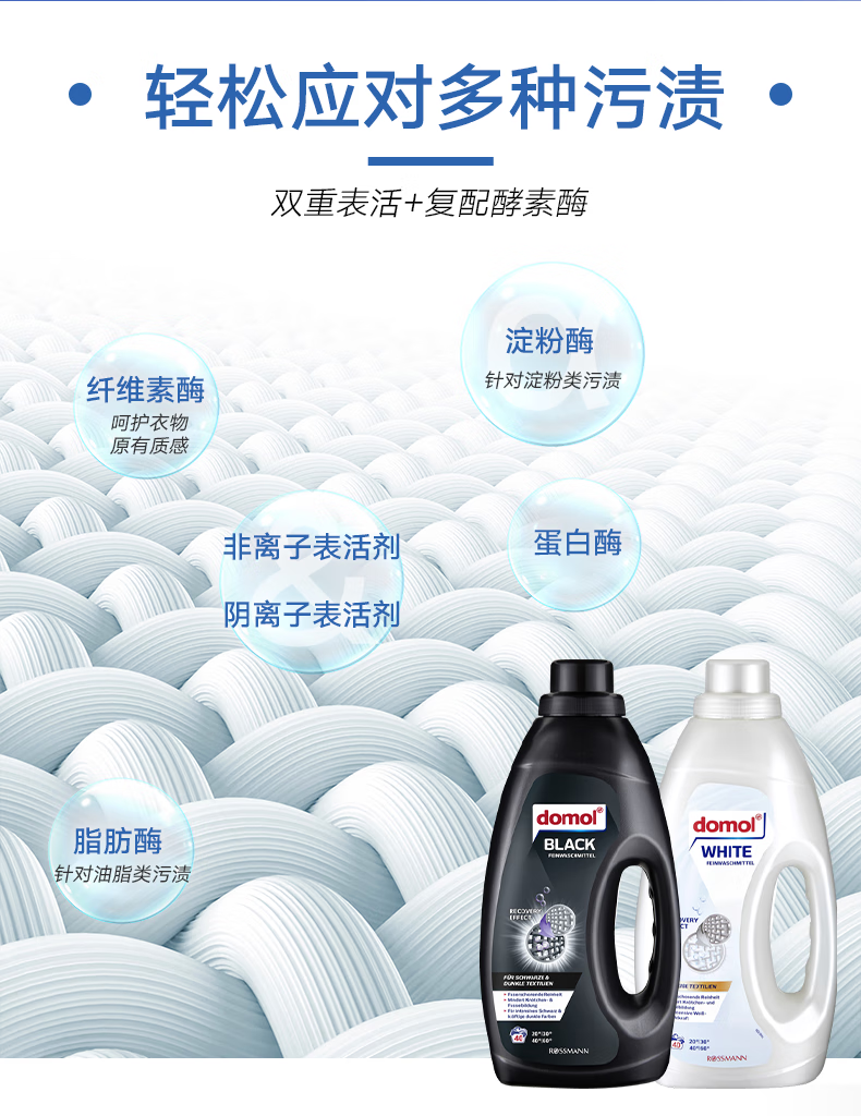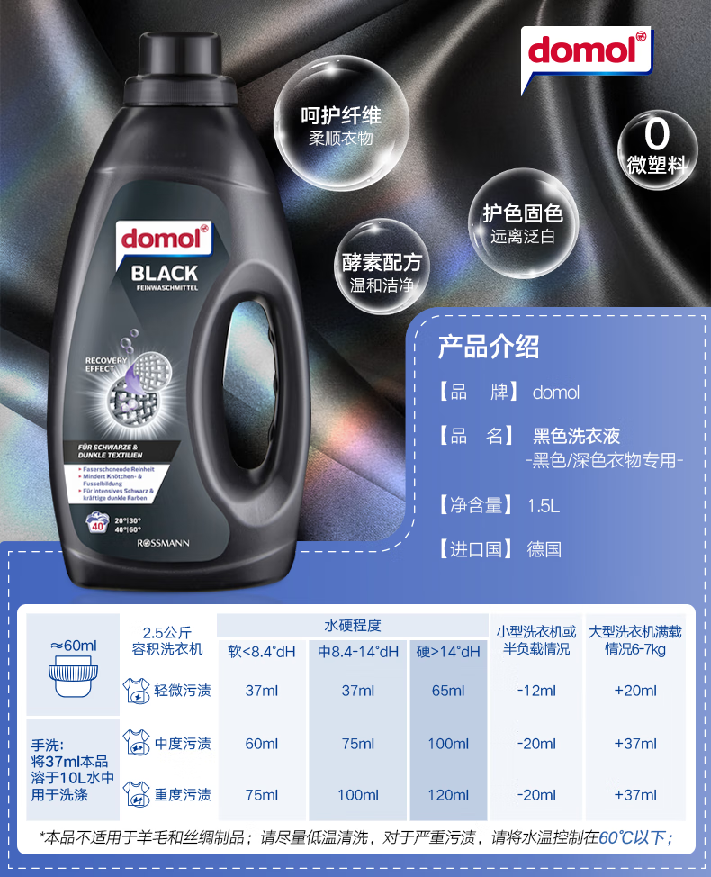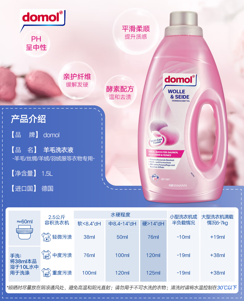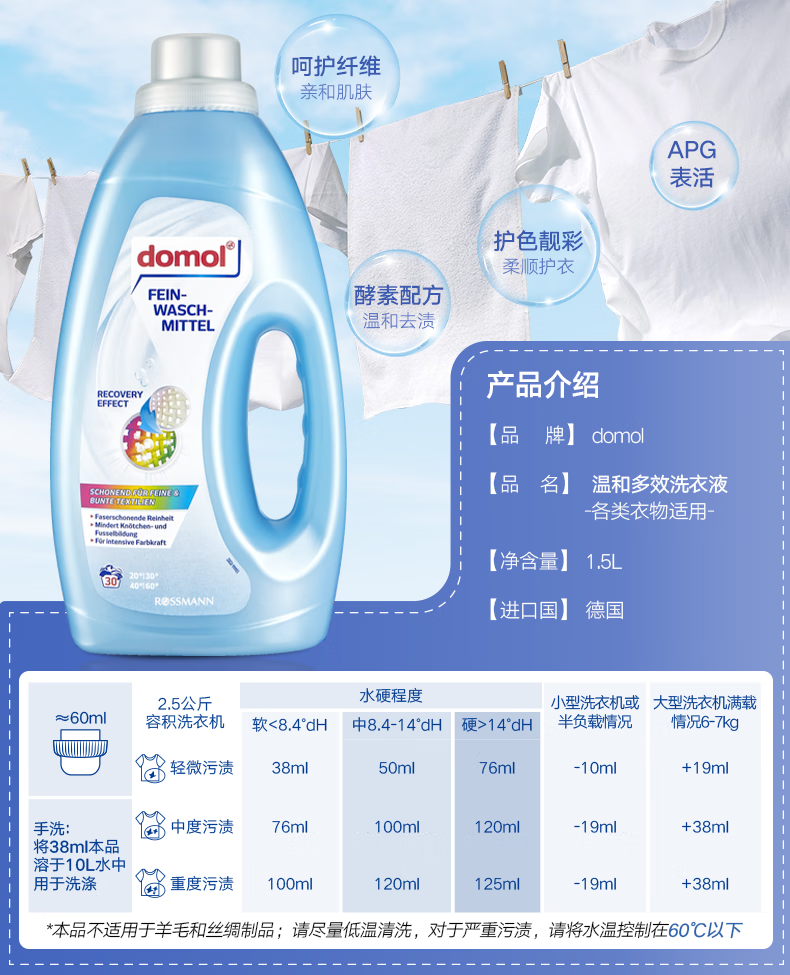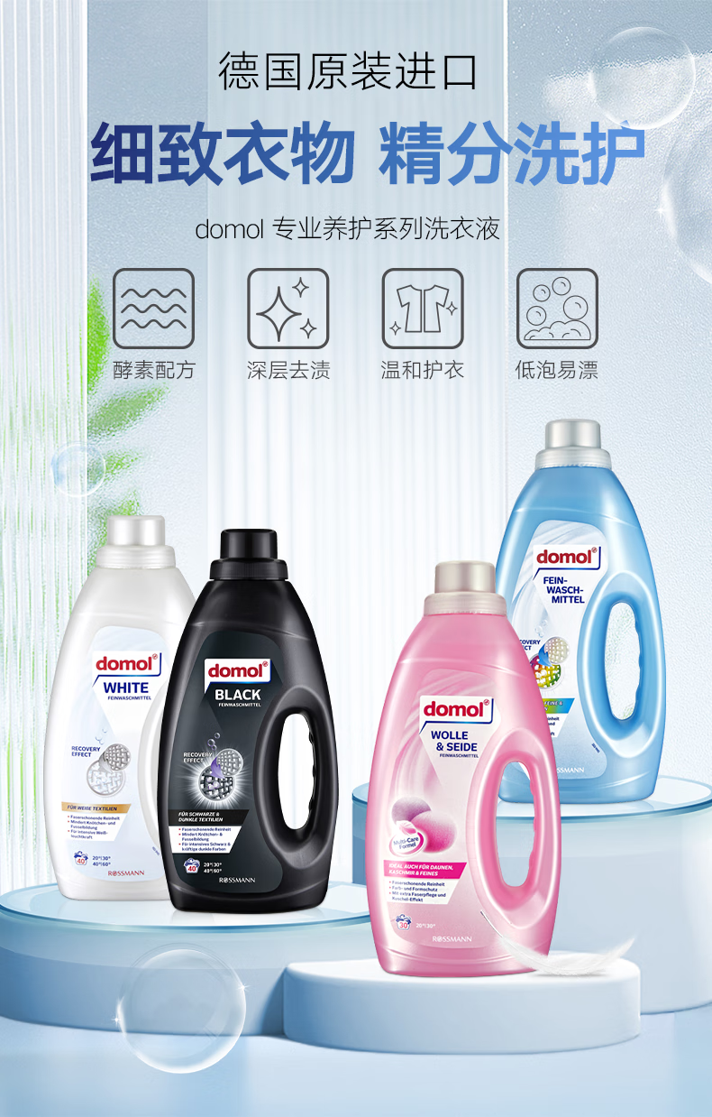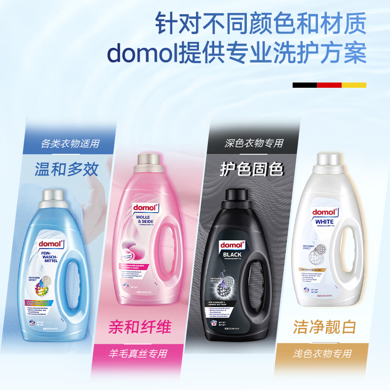Domol German imported mild multi-effect wool silk black and white laundry detergent clothing detergent stain removal professional laundry detergent 1 barrel wool silk laundry detergent
