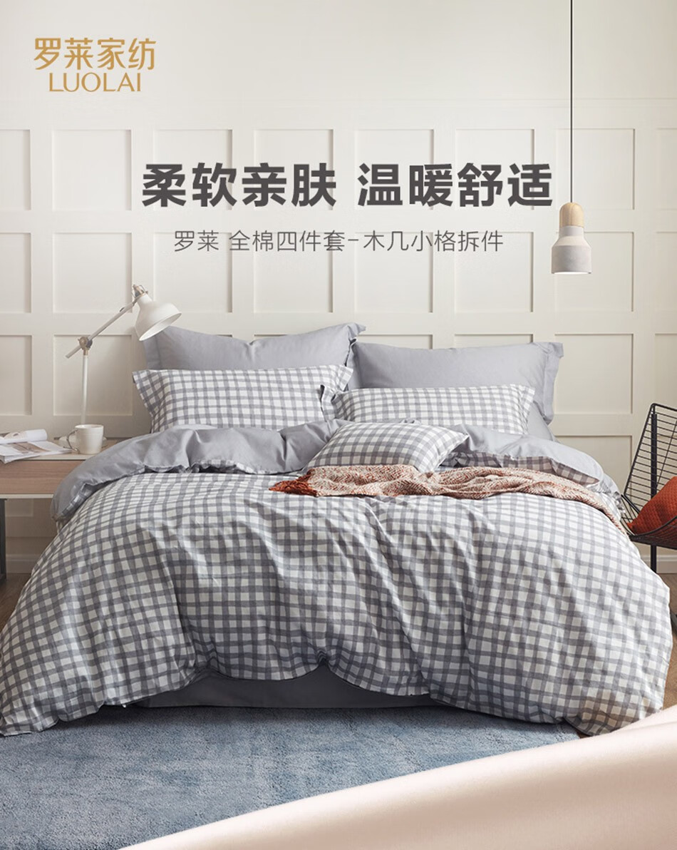 Luolai Home Textiles Xinjiang cotton quilt cover combed cotton bedding double simple quilt cover single piece 40 pieces wood gray-quilt cover*1 150*215cm