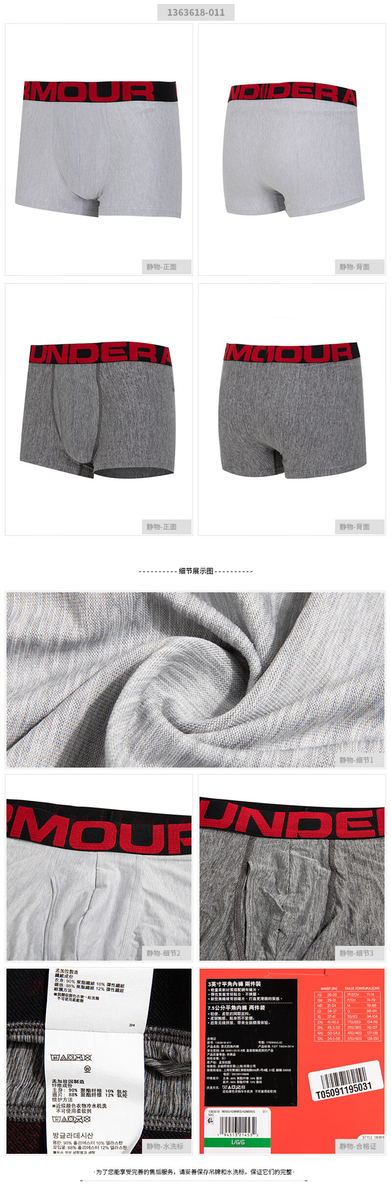 Under Armor men's underwear multi-pack 2025 autumn new quick-drying breathable elastic comfortable running fitness sports underwear for men classic style two-pack/elastic stretch/black L /175 recommended weight 130-150Jin Jin equals 0.5 kg