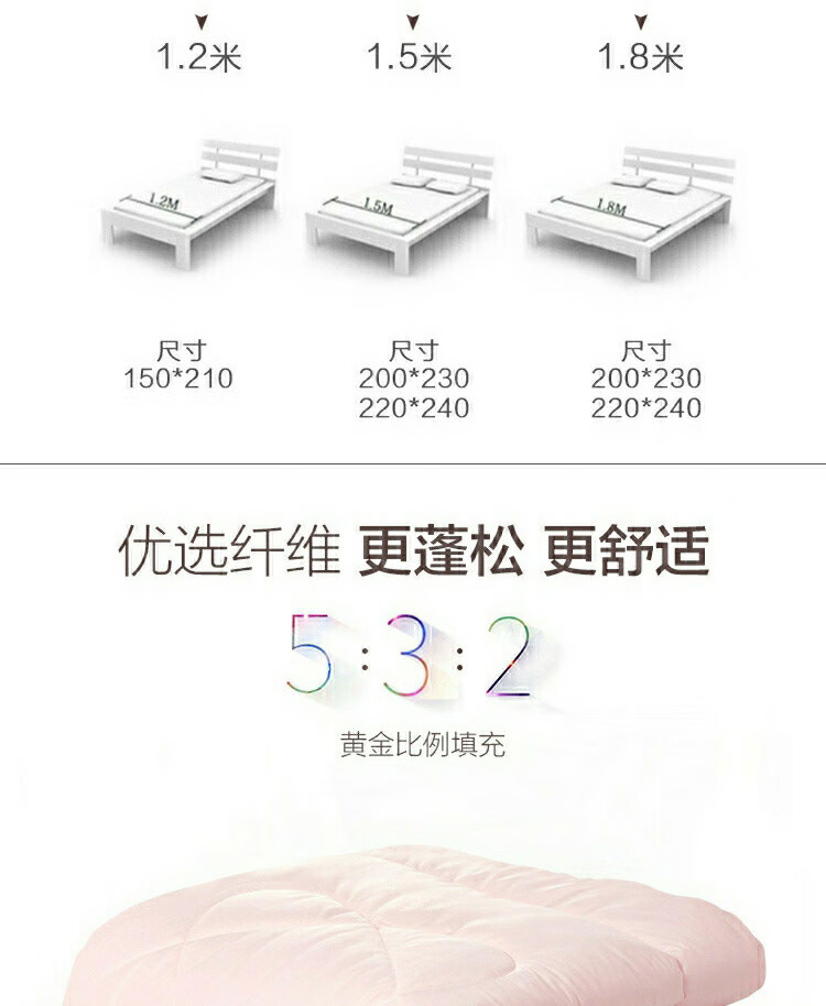150*210cm:填充物重:900g 产品净重:1570g 产品毛重:1800g