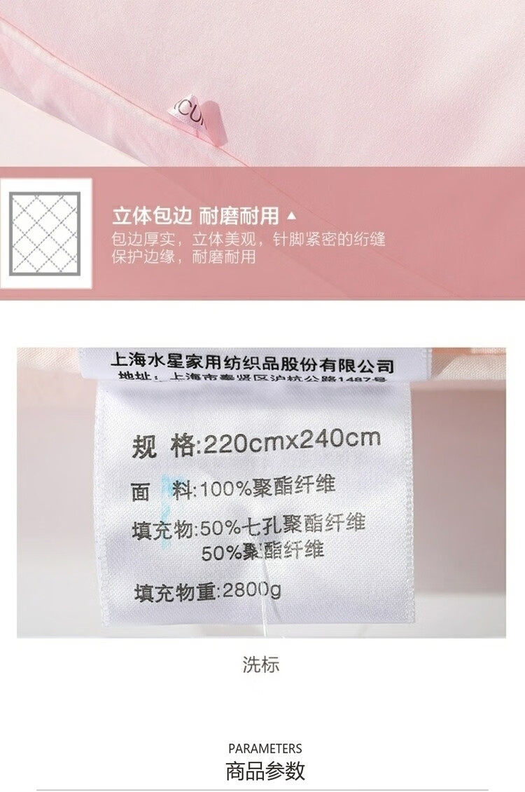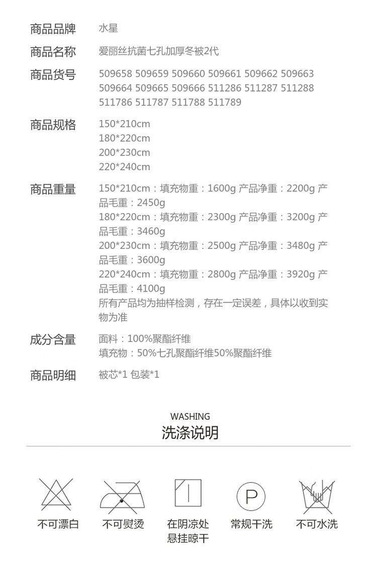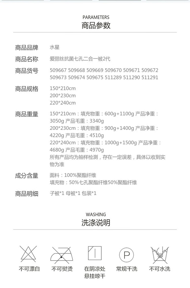 220*240cm:填充物重:2300g 产品净重:3390g 产品毛重:3670g