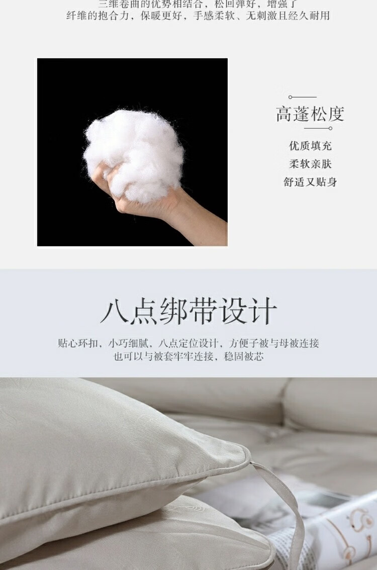 3.被芯不建议水洗(会影响蓬松度和保暖值)