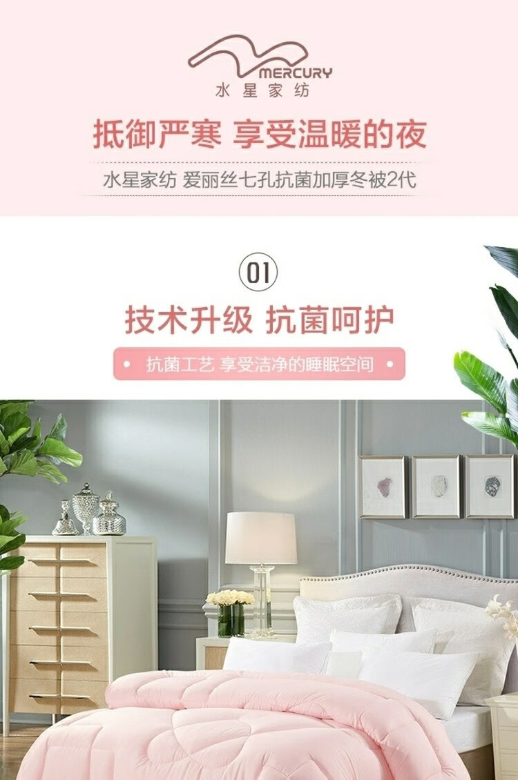 Mercury Home Textiles Winter Quilt Contains Seven-hole Antibacterial Breathable Fiber Quilt Double Spring Autumn and Winter Warm Quilt Student Dormitory Quilt Core Alice Antibacterial Seven-hole Winter Quilt 2nd Generation (White) 180x220cm