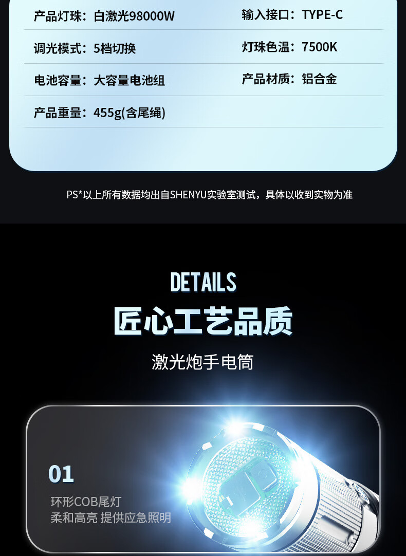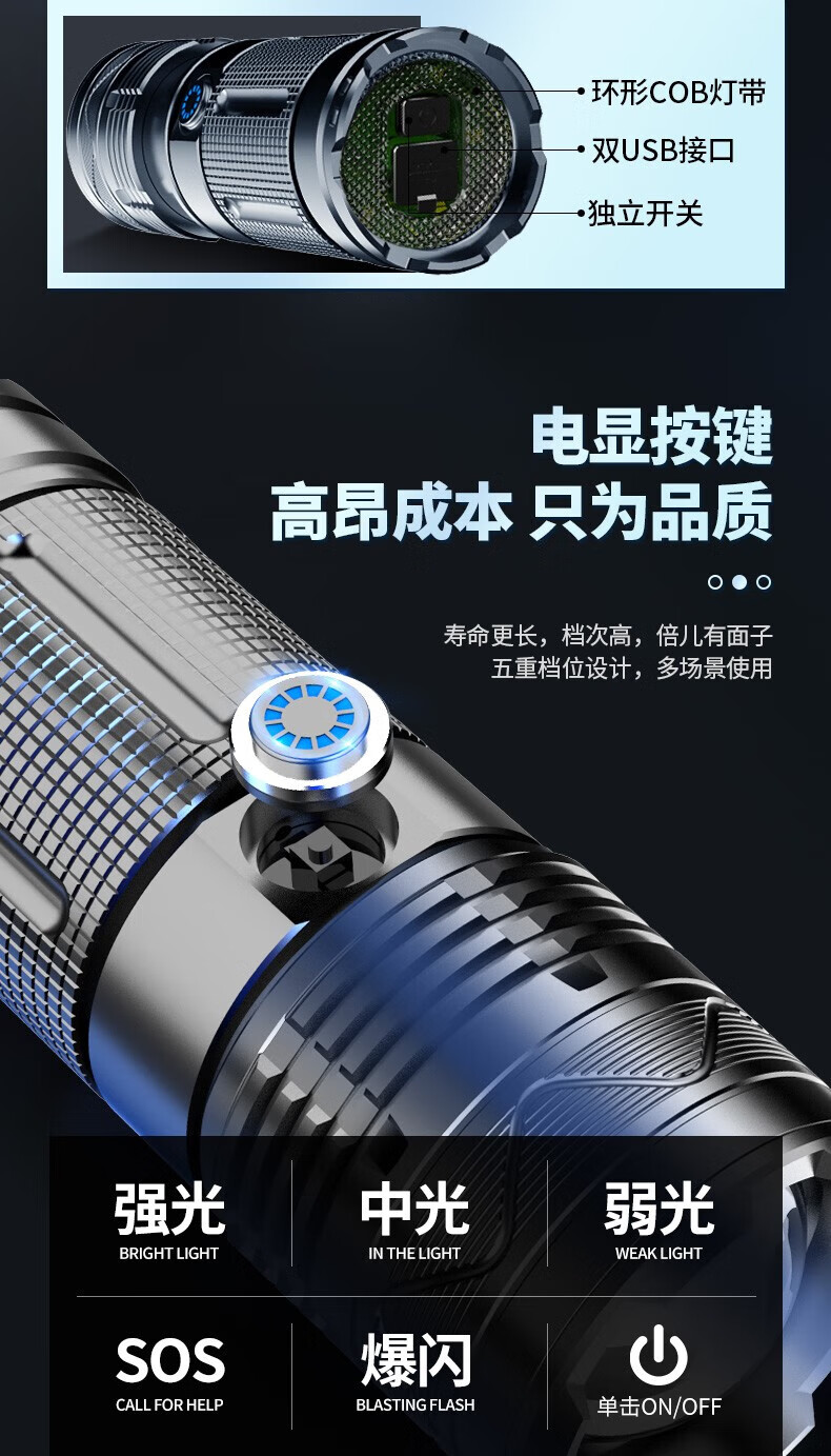 Aic flashlight strong light super bright long endurance long range searchlight lumen outdoor charging special sky penetrating cannon 100000 small steel cannon 99800W six times capacity 9900