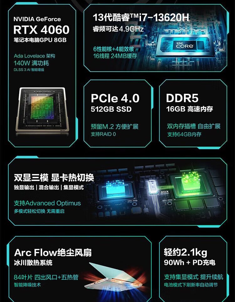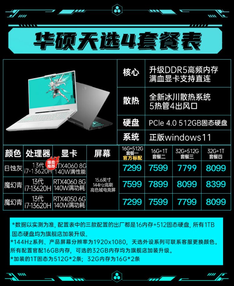ASUS (ASUS) Play Black Wukong Tianxuan 4 Core 15.6-inch high-performance gaming laptop RTX40 full power light-tracing graphics card e-sports gaming laptop Eclipse Gray | 14-core i7 | RTX4050 | 144Hz Package 2 16G+1T