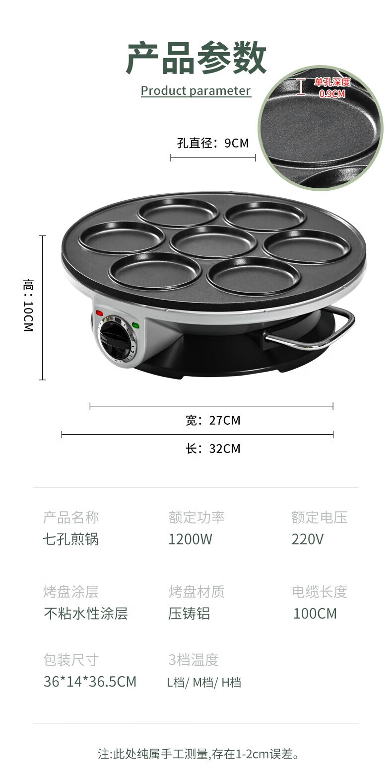 Bonison Omelette 6-hole 7-hole household pancake pan commercial fully automatic electric pan pancake mold egg upgraded seven-hole (commercial model)
