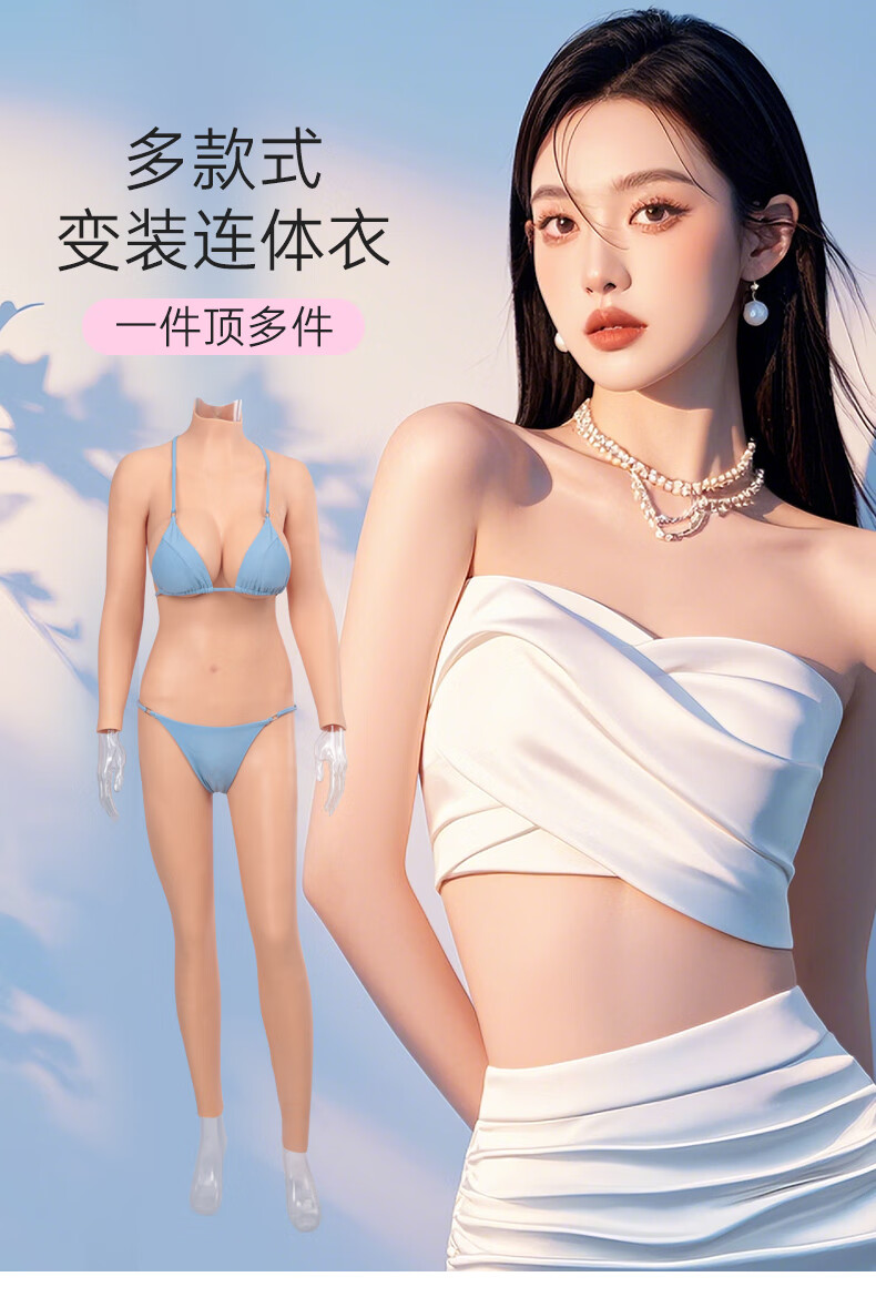 Yirong fake girl supplies prosthetic breast jumpsuit for men, silicone can be put into COS to change into women's clothing, men can dress up as women, full set of silicone jumpsuit, C cup, nine-point one-piece with arm hair transplantation