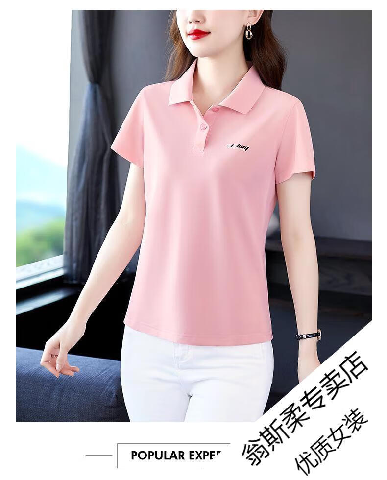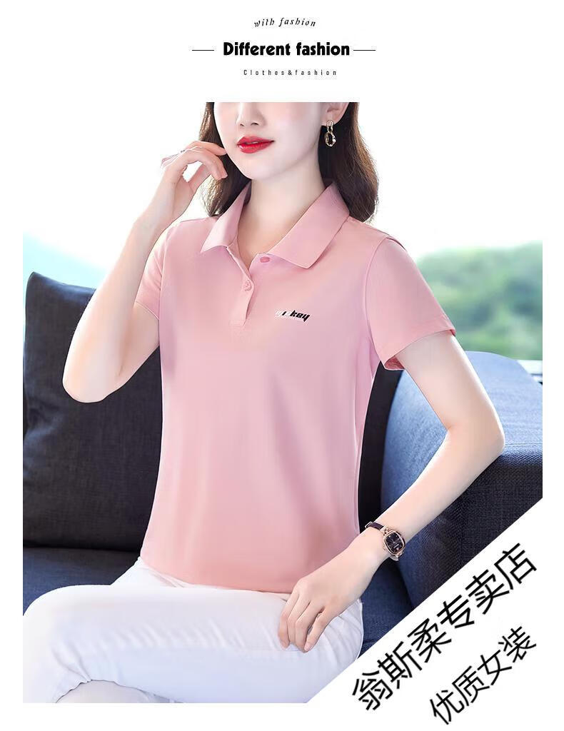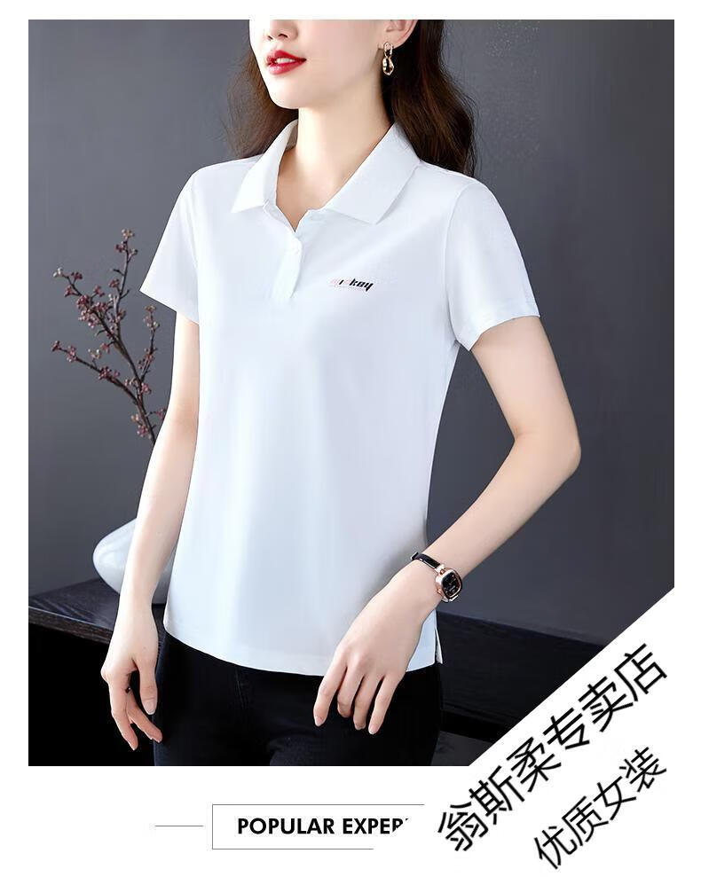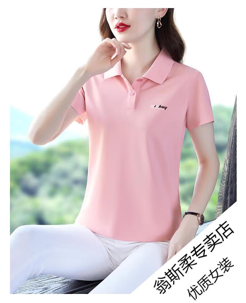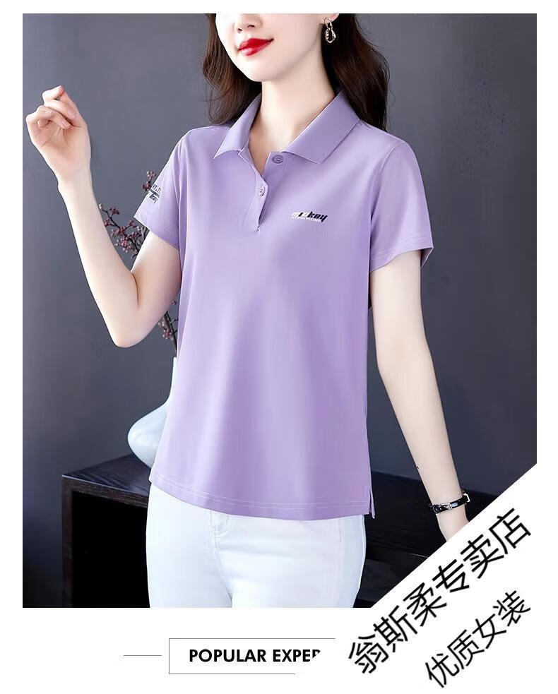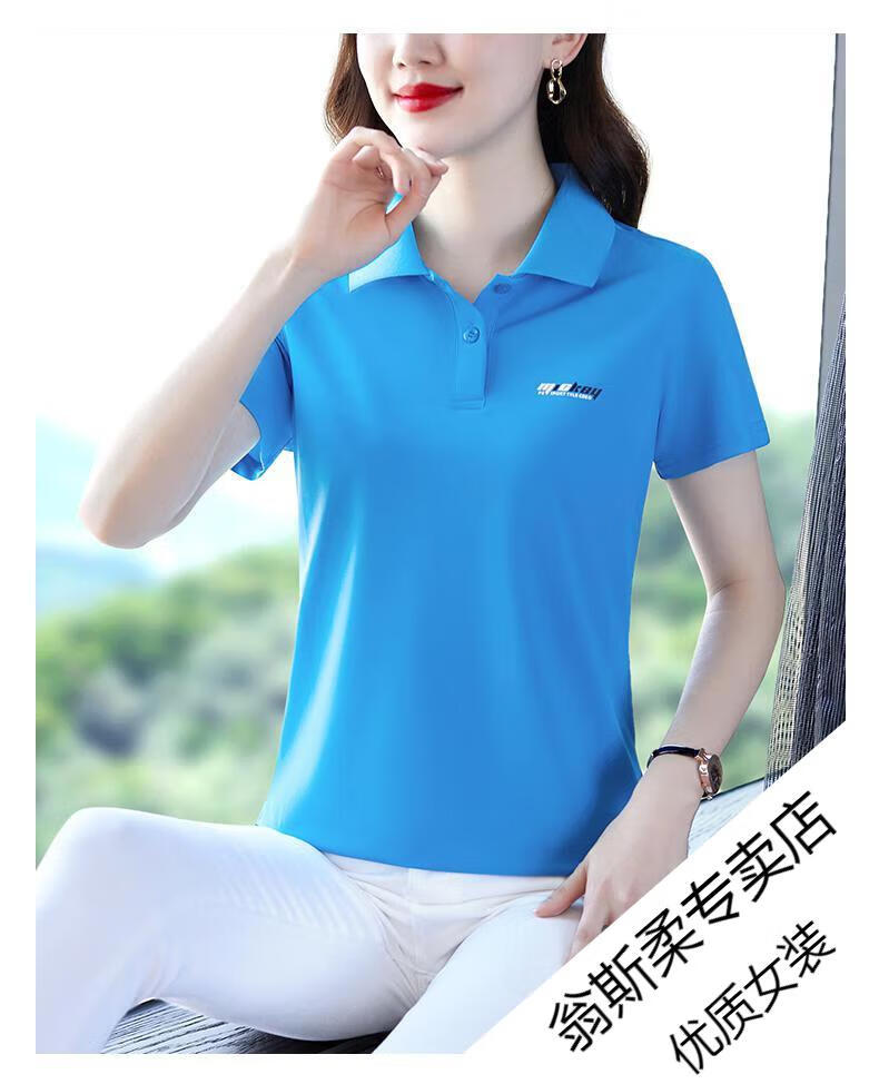 Woodpecker Ice Silk Lapel Casual Short Sleeve T-shirt Women Summer 2025 New Printed Polo Shirt Middle-aged Mom Slim Top Big Red Short/Sleeve XL 110-120Jin Jin equals 0.5 kg