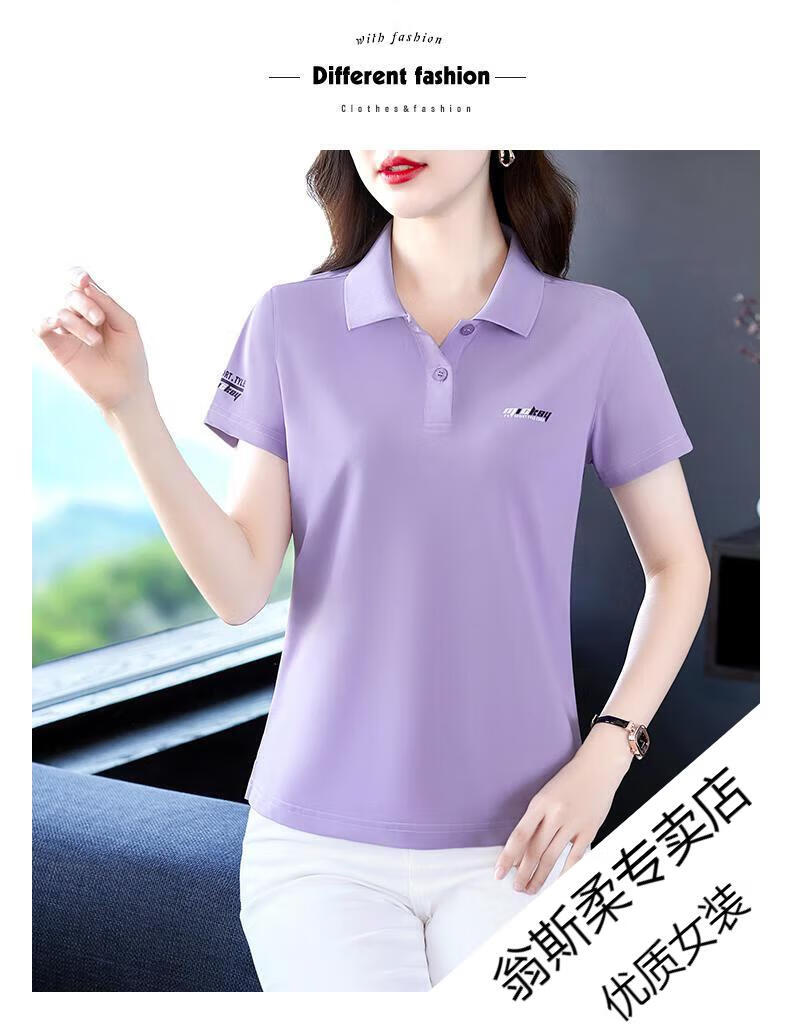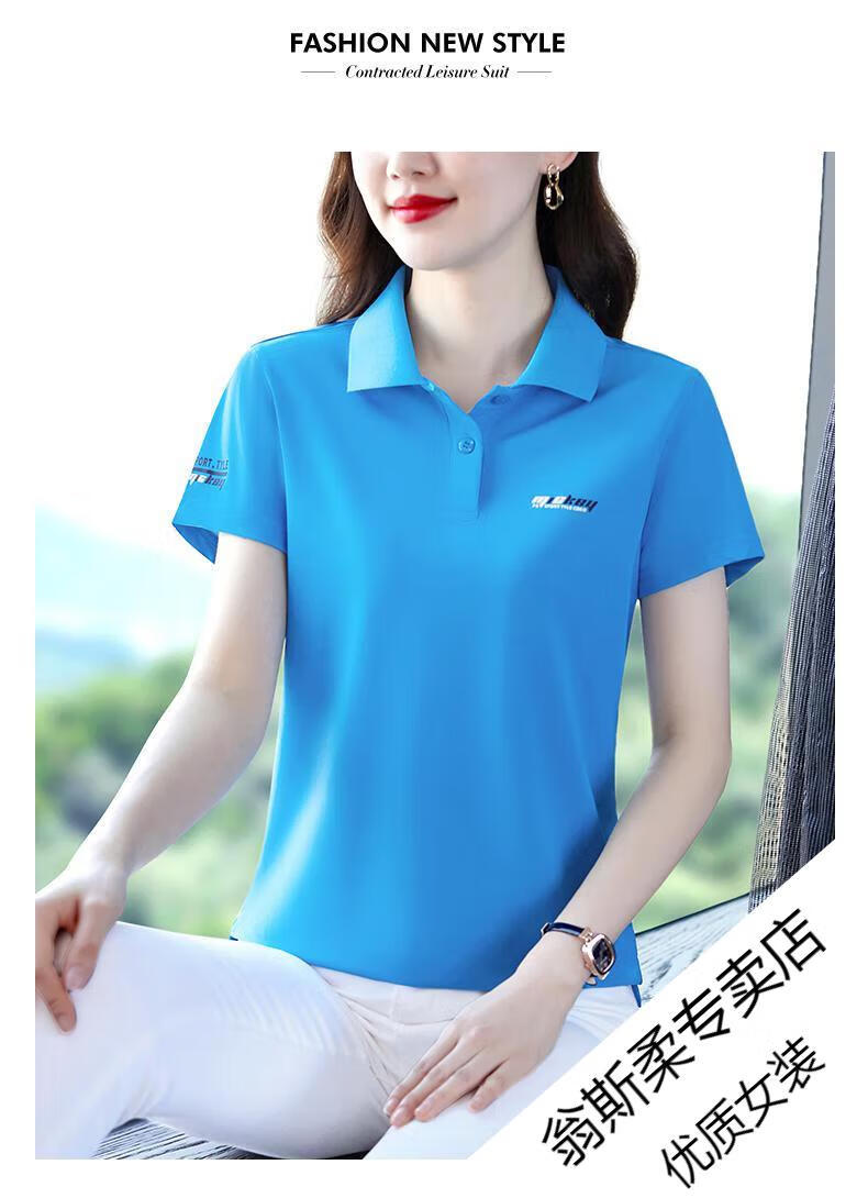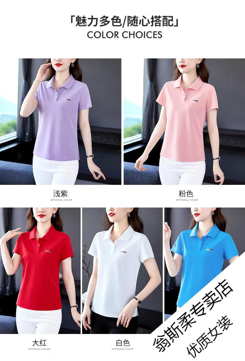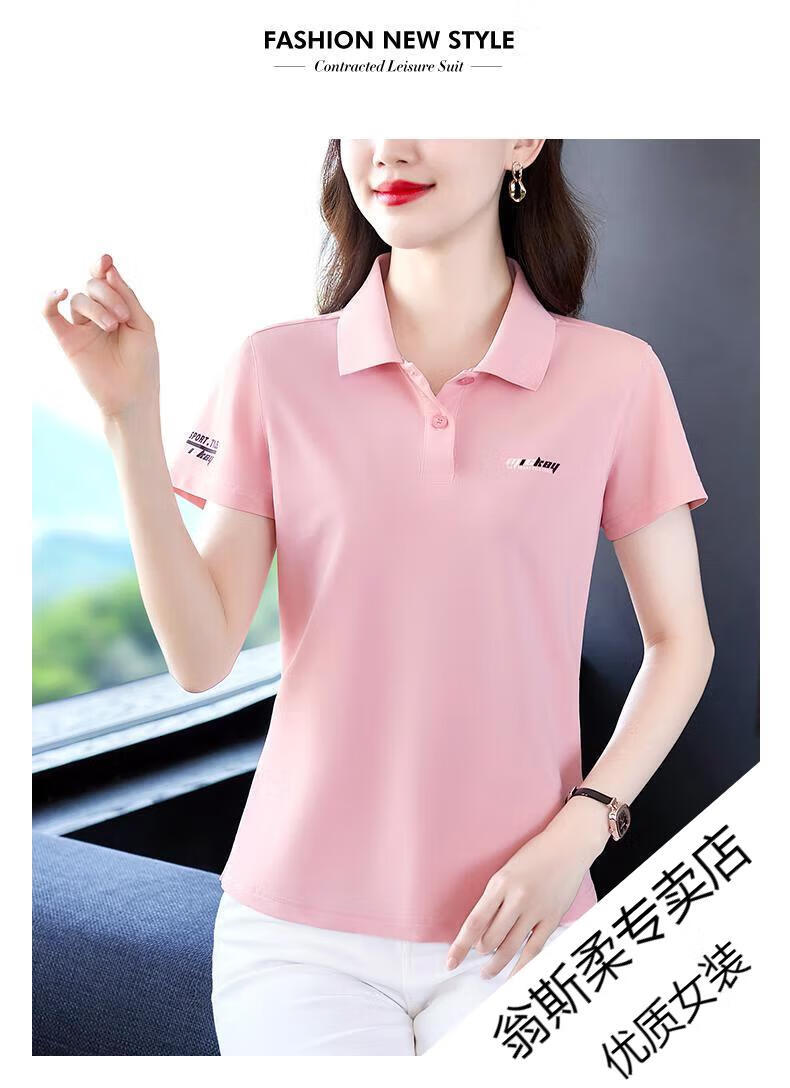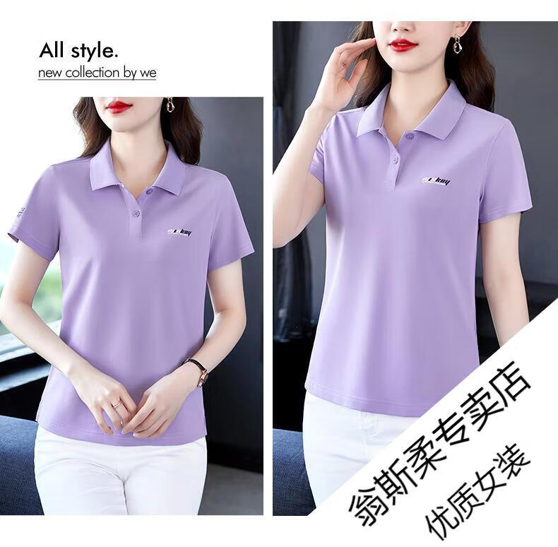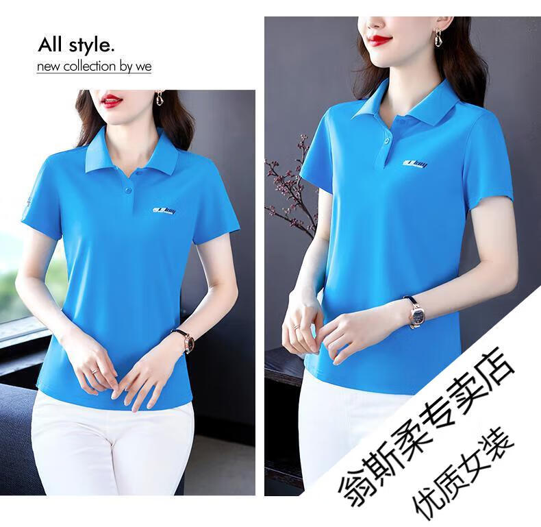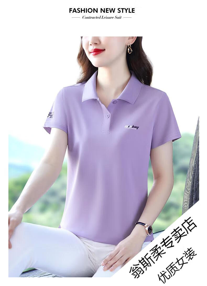 Woodpecker Ice Silk Lapel Casual Short Sleeve T-shirt Women Summer 2025 New Printed Polo Shirt Middle-aged Mom Slim Top Big Red Short/Sleeve XL 110-120Jin Jin equals 0.5 kg