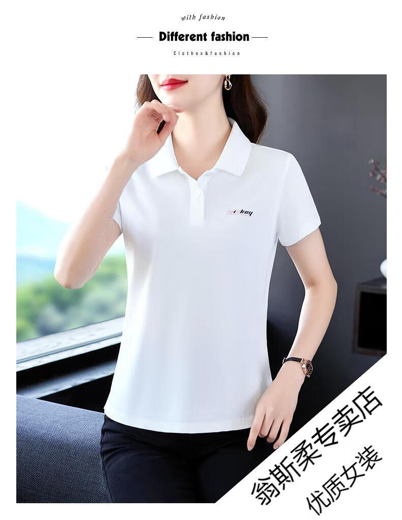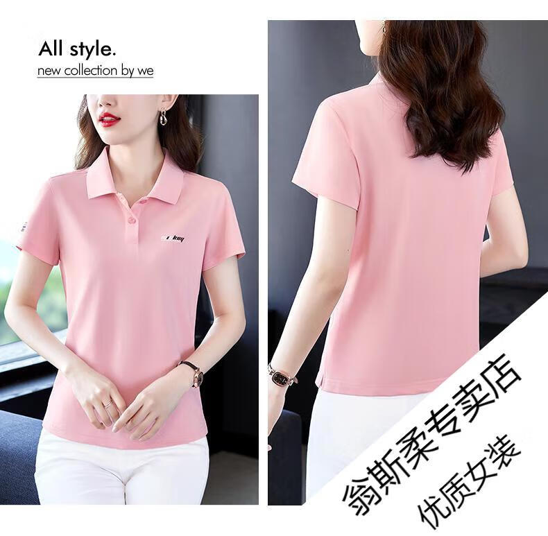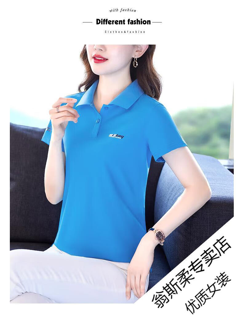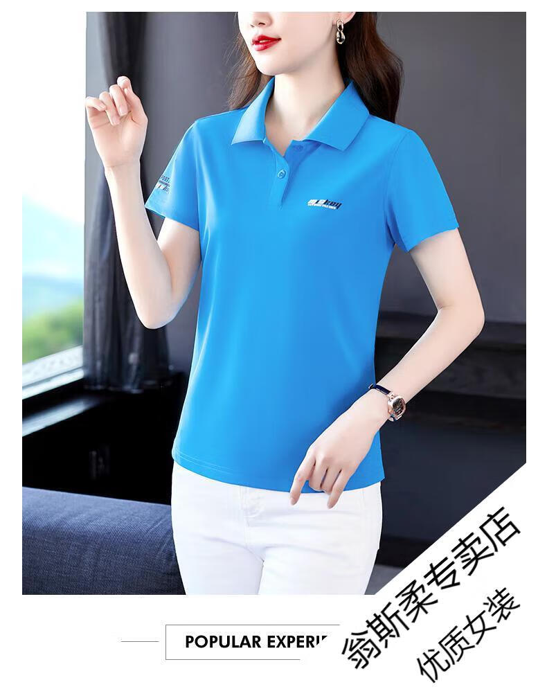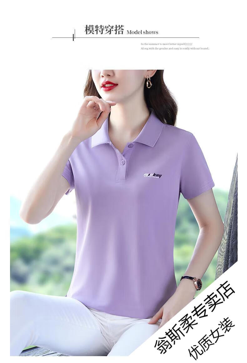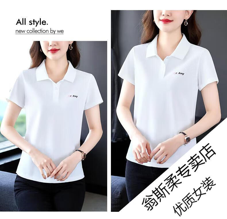 Woodpecker Ice Silk Lapel Casual Short Sleeve T-shirt Women Summer 2025 New Printed Polo Shirt Middle-aged Mom Slim Top Big Red Short/Sleeve XL 110-120Jin Jin equals 0.5 kg