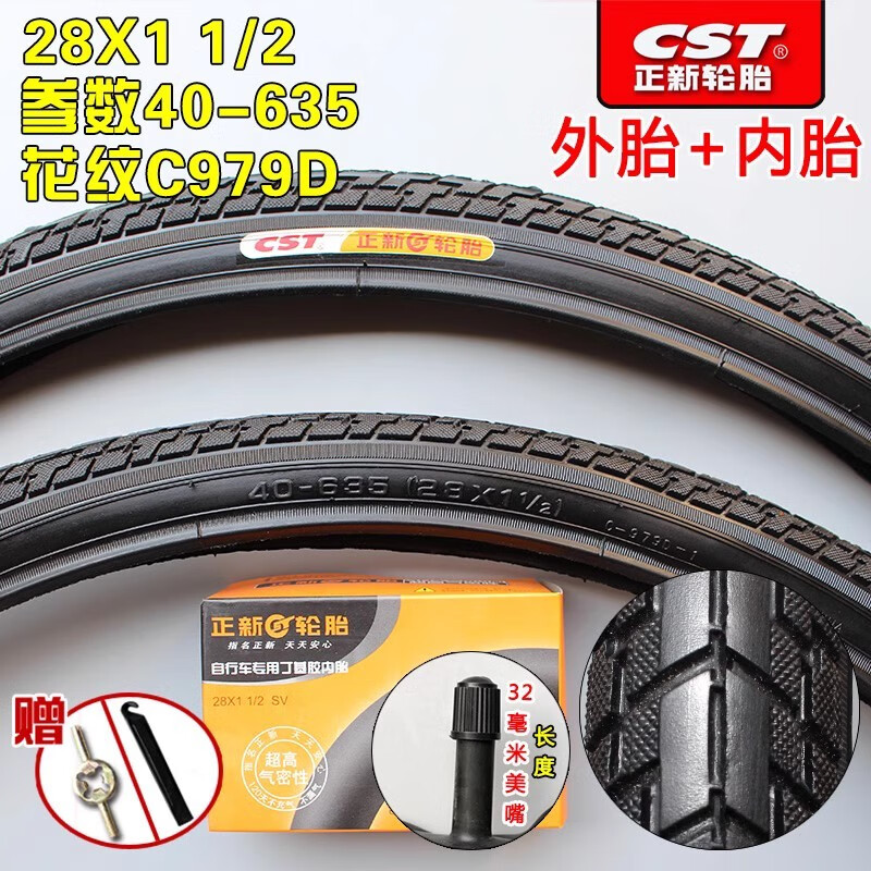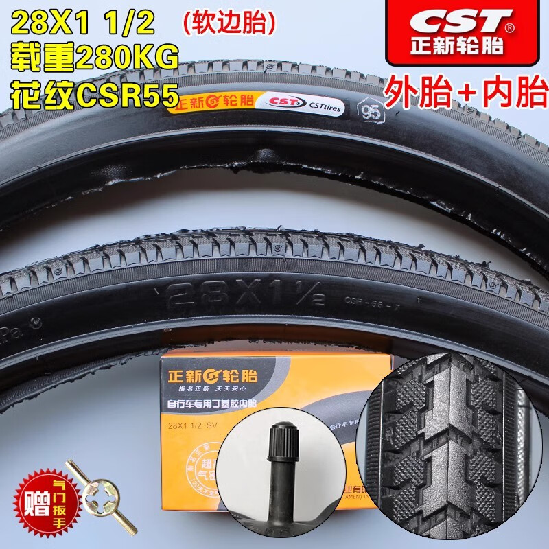 Chaoyang/Zhengxin Tire 28X1 1/2 old-fashioned 28-inch bicycle tire 28 big bar tire 28*1 1/2 outer tire 28X1 1/2 Zhengxin inner tube (British mouth)