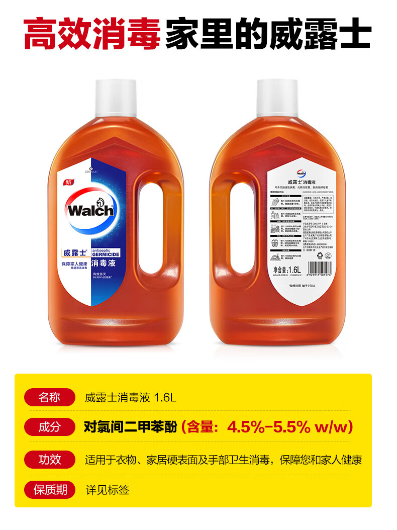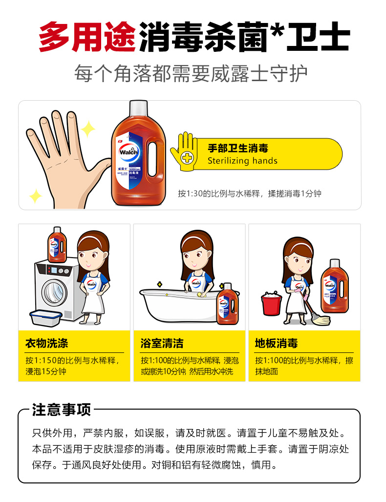 Walch Disinfectant Effectively Sterilizes 99.999% Household Clothing, Home Floor Toys High Concentration Disinfectant Water for General Purpose 630ml