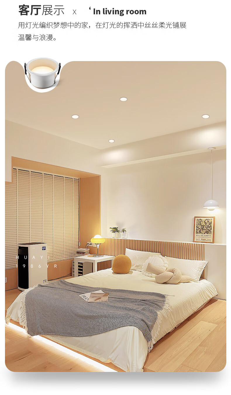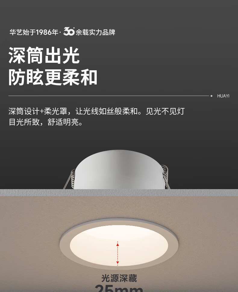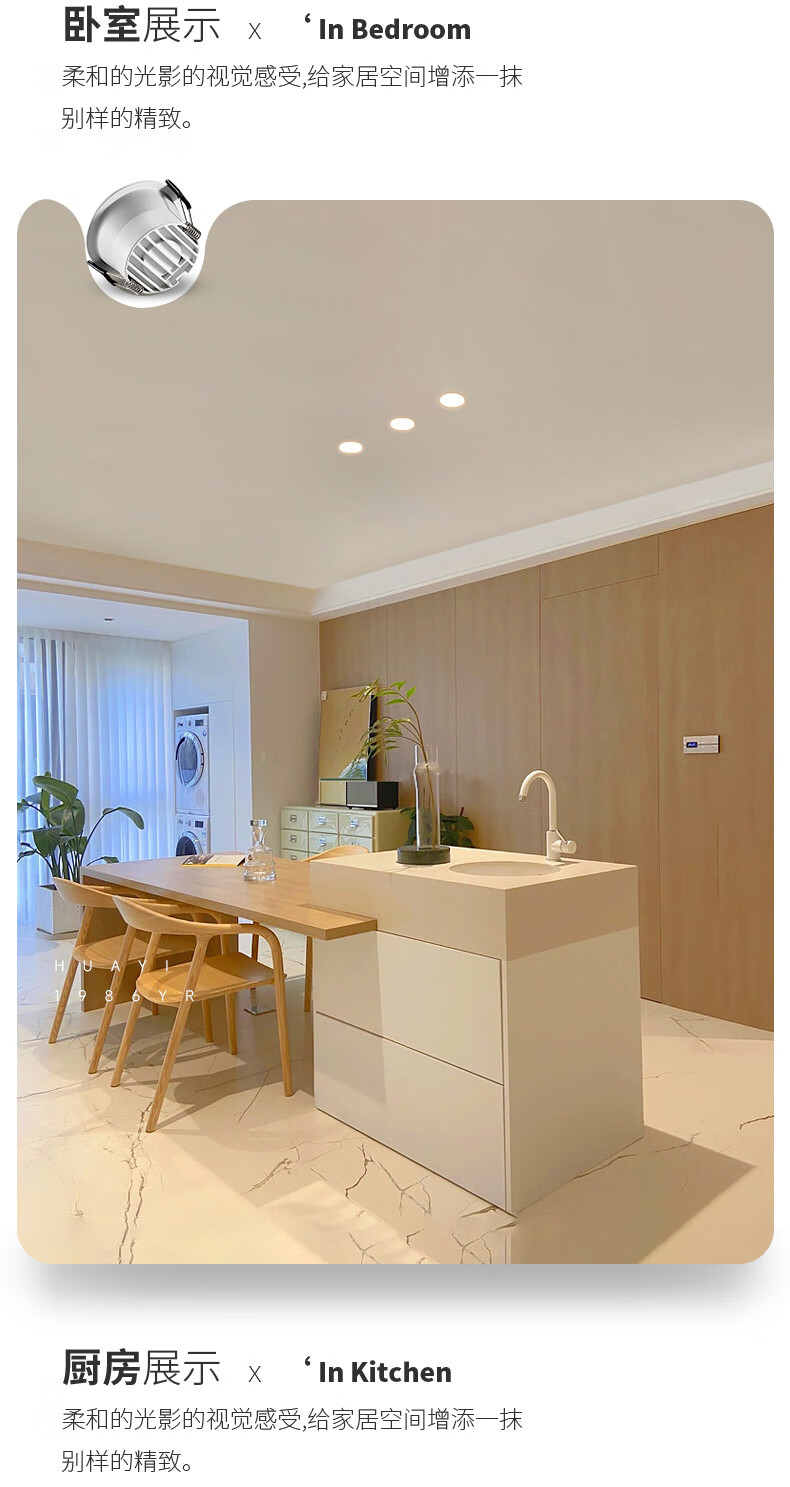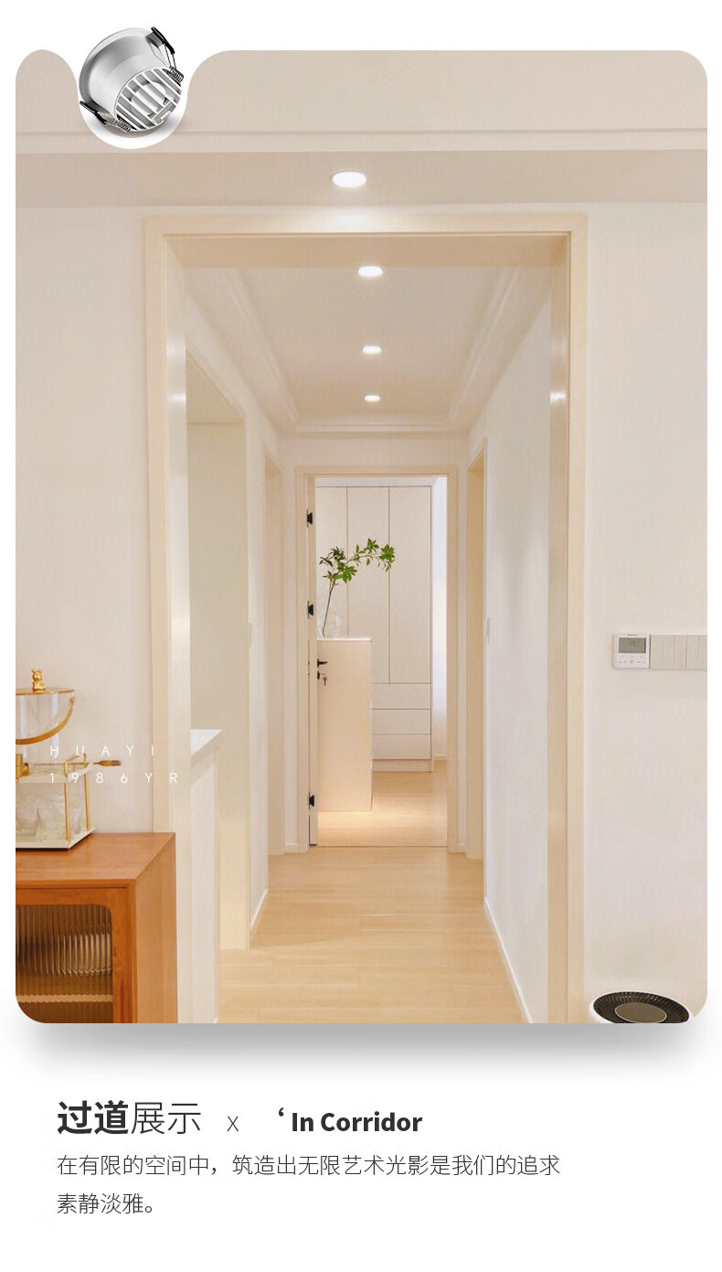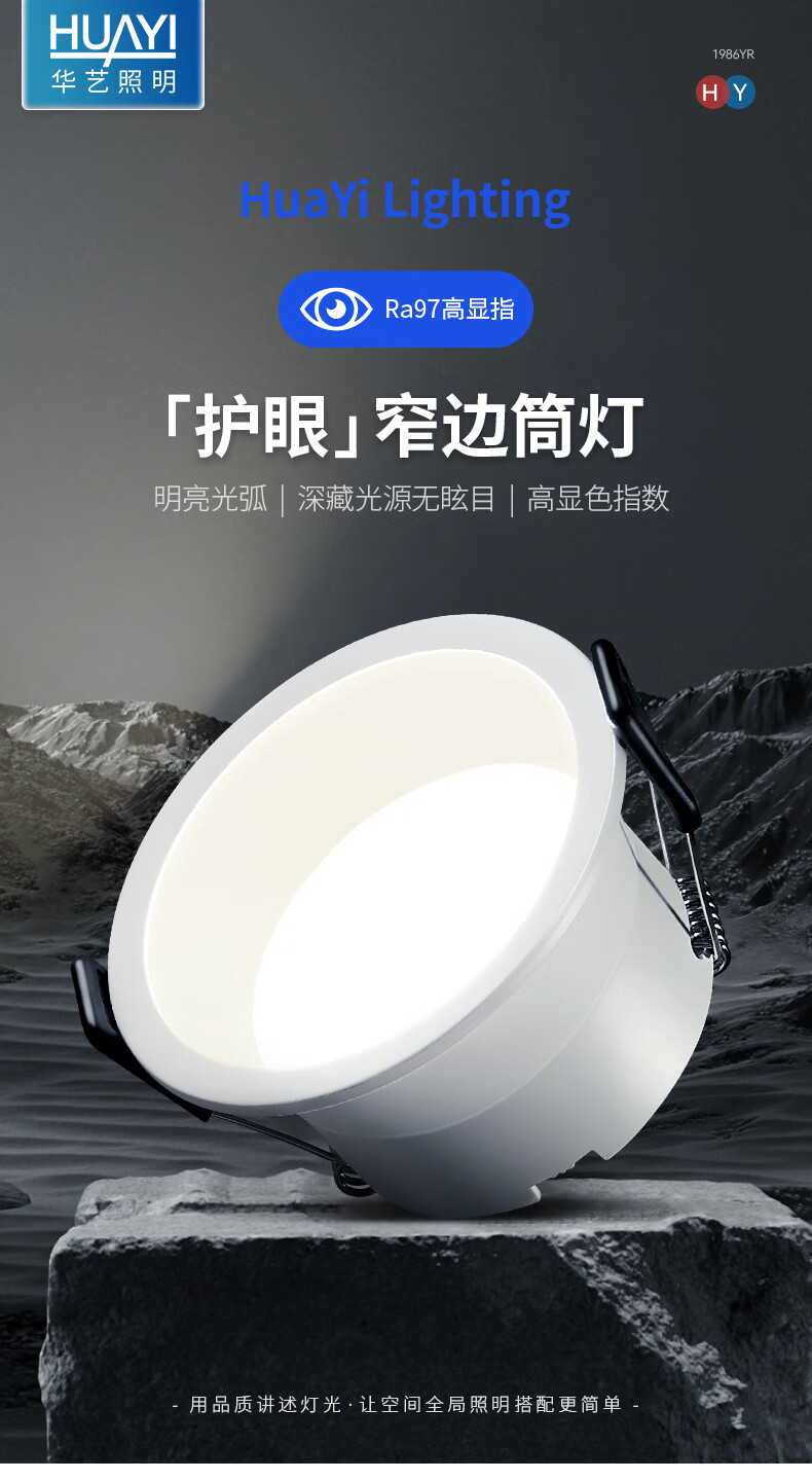 Huayi Lighting downlight empotrado hogar antideslumbrante sin luz principal borde extremadamente estrecho led downlight luz de pasillo luz de techo 97 colores RG0 sin luz azul 7w4000K downlight blanco