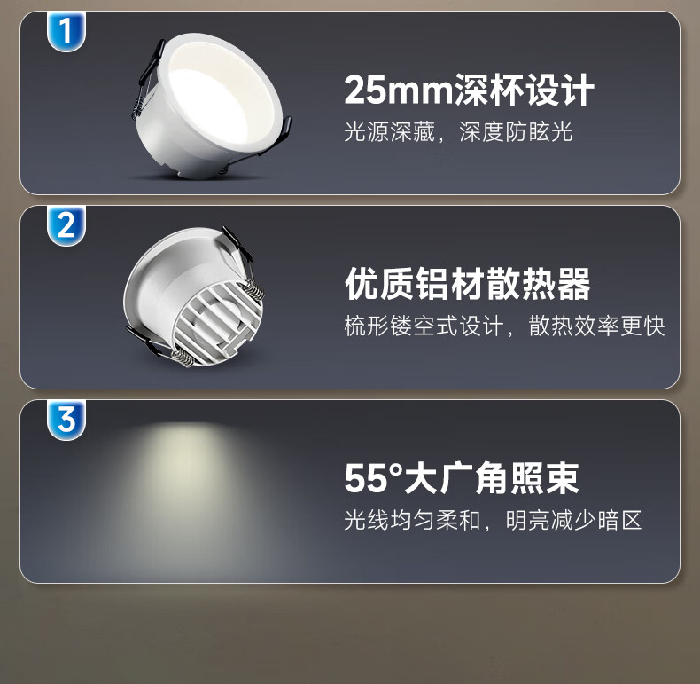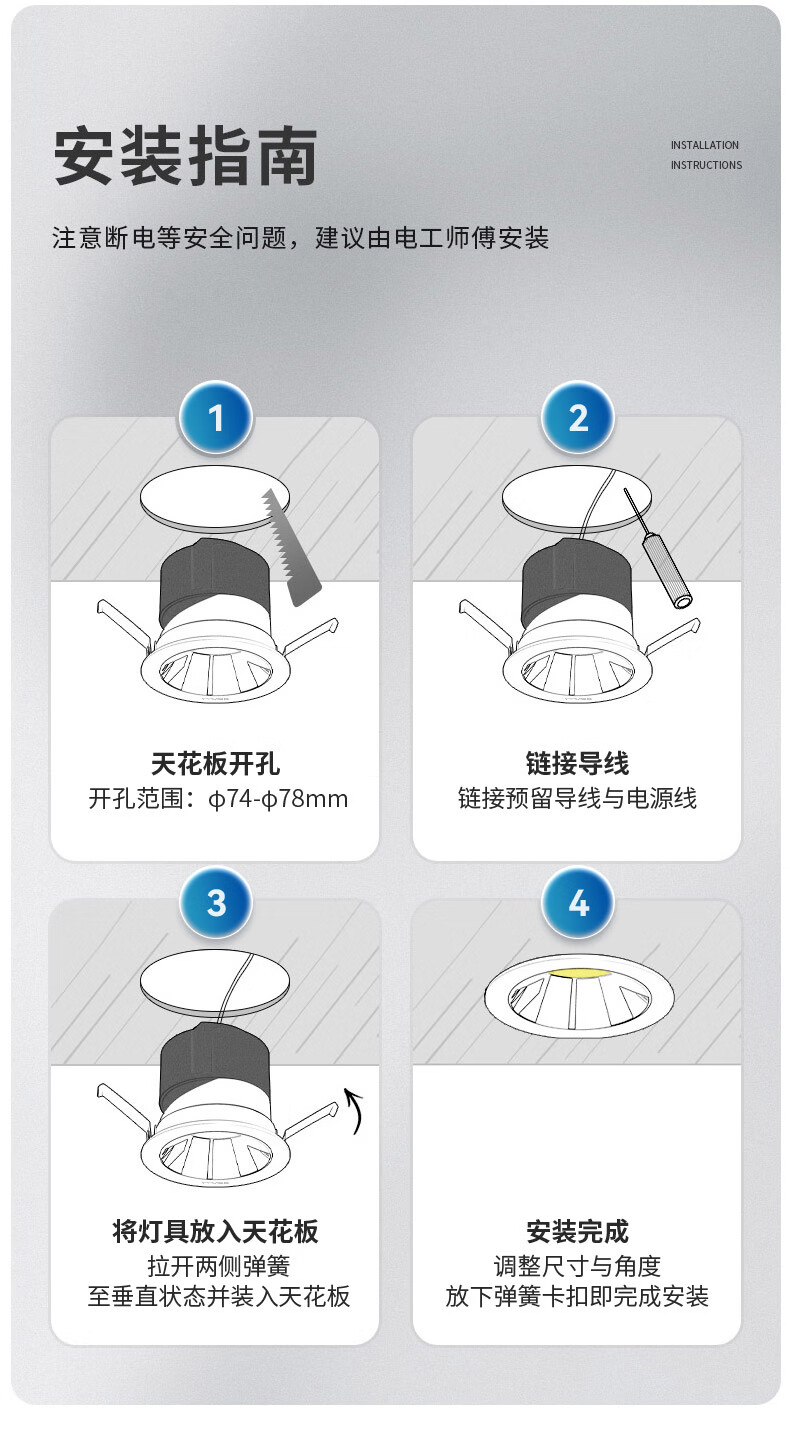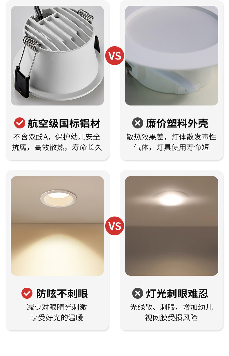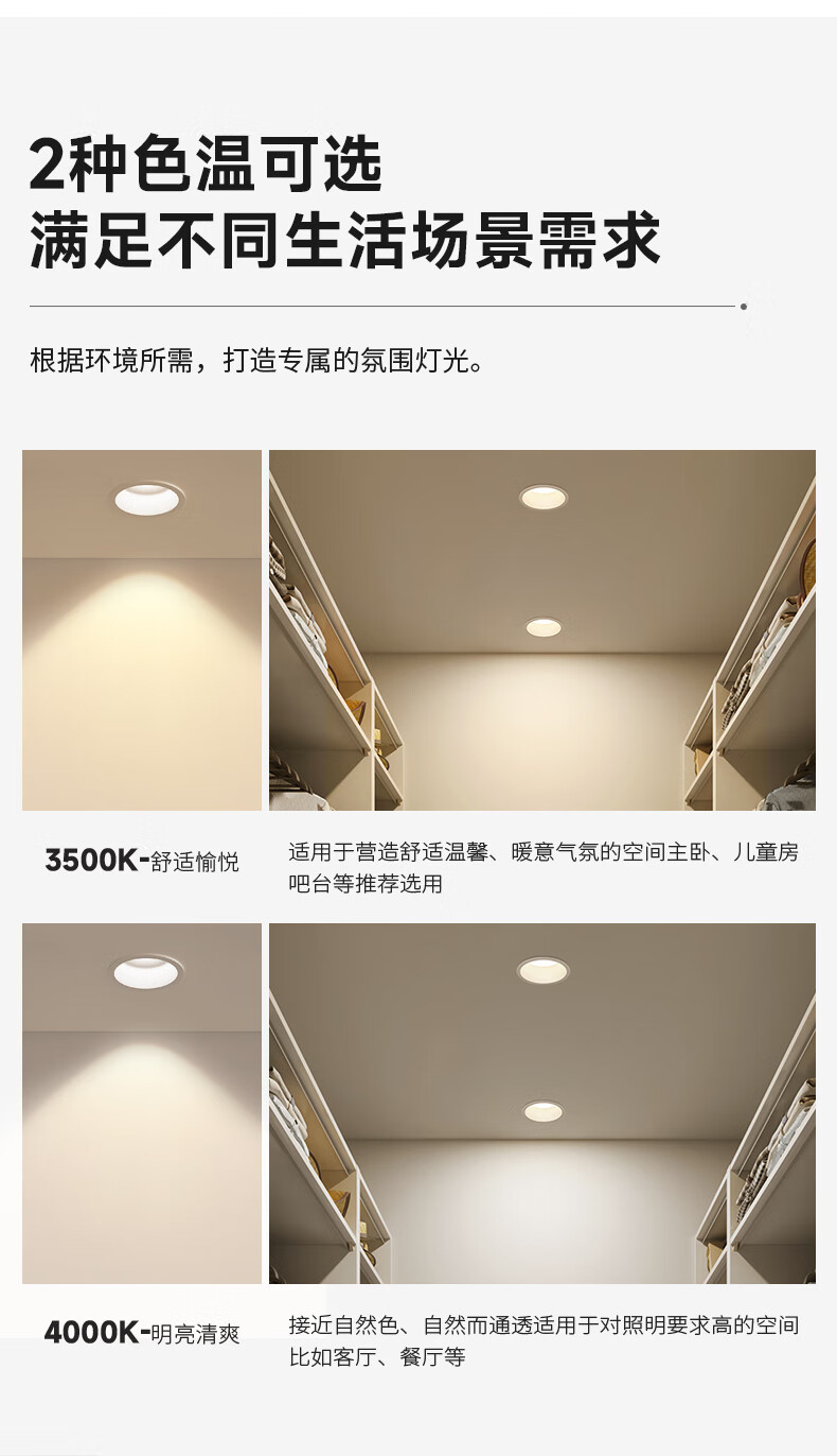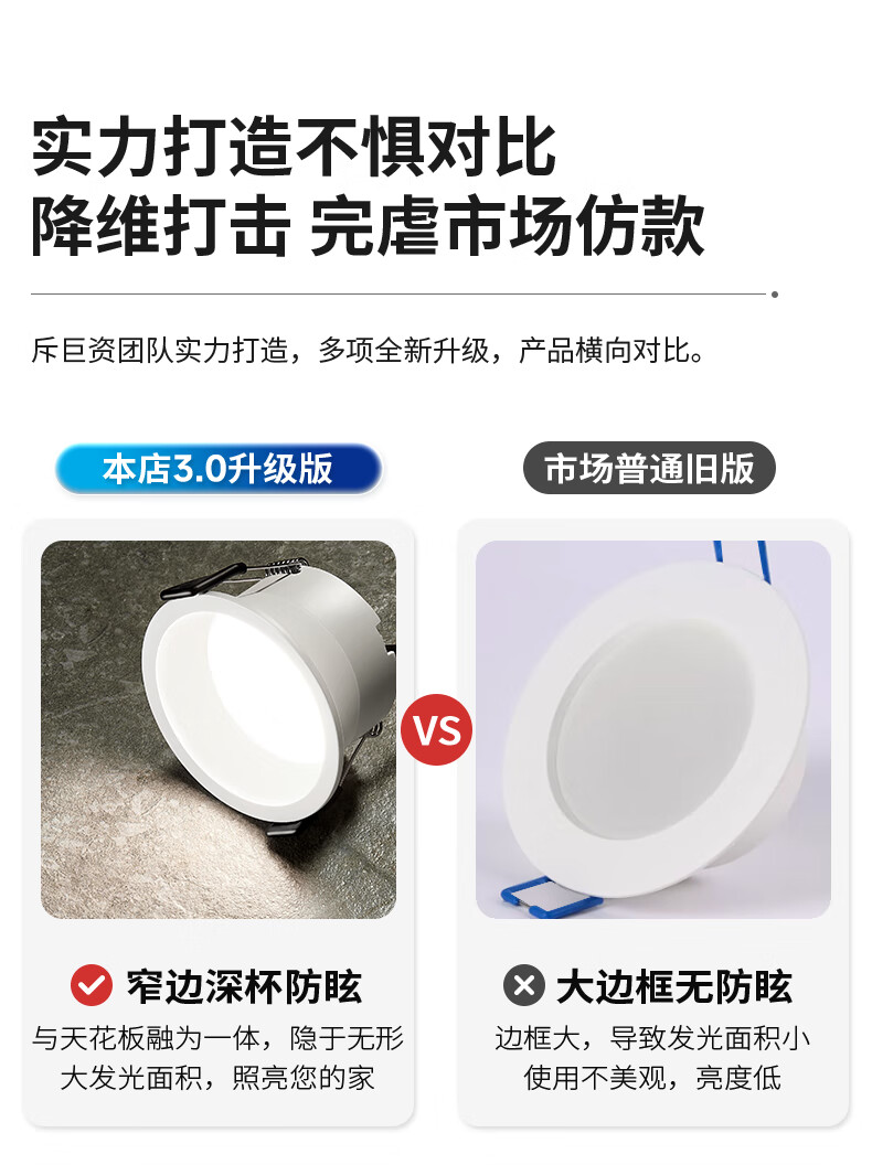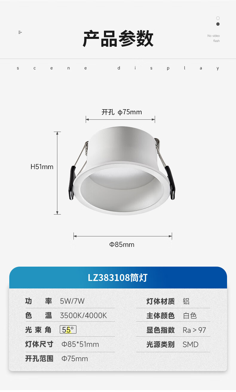 Huayi Lighting downlight empotrado hogar antideslumbrante sin luz principal borde extremadamente estrecho led downlight luz de pasillo luz de techo 97 colores RG0 sin luz azul 7w4000K downlight blanco