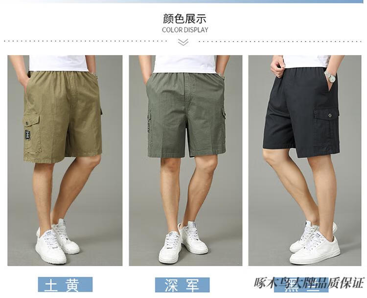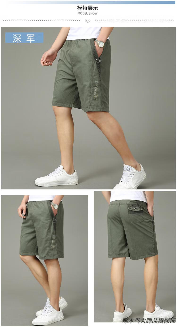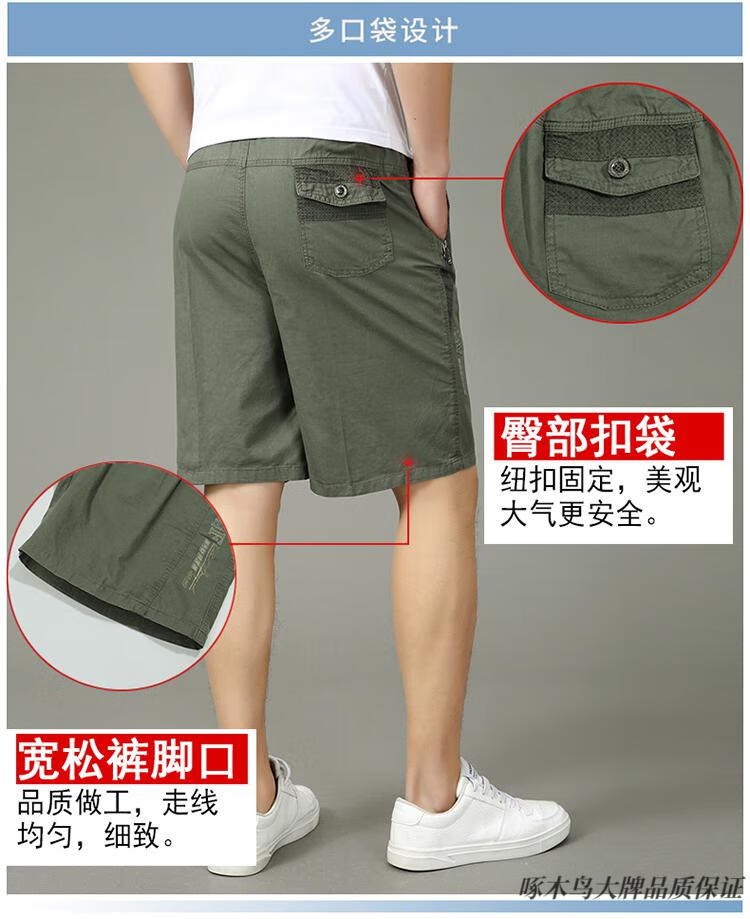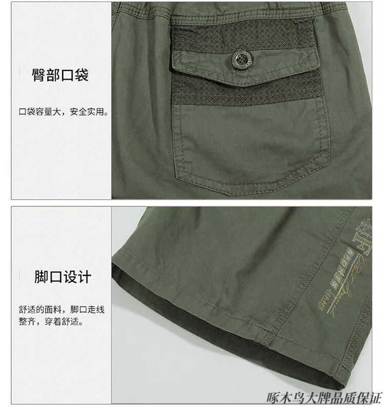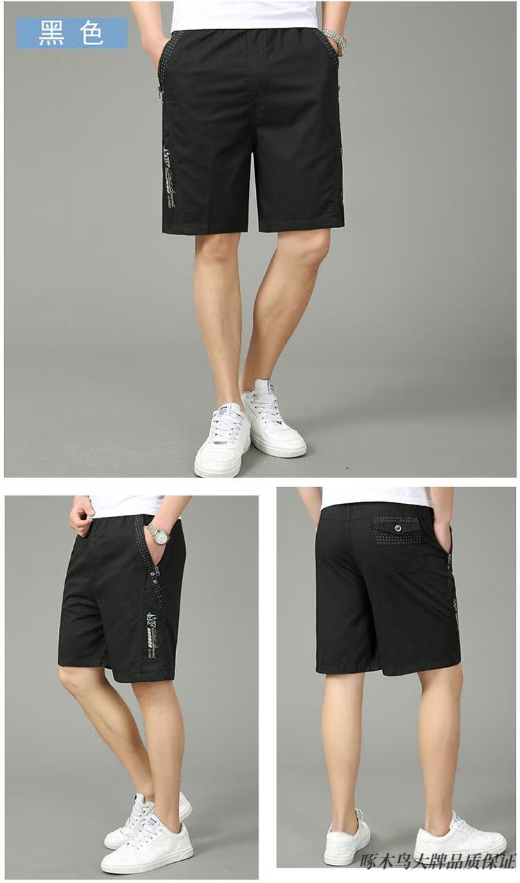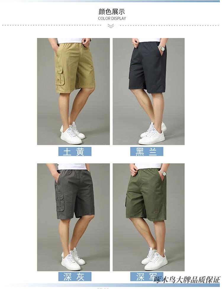 Woodpecker (TUCANO) pure cotton five-point pants men's summer loose casual work shorts men's large pants beach pants thin breeches WD806 black blue 2XL
